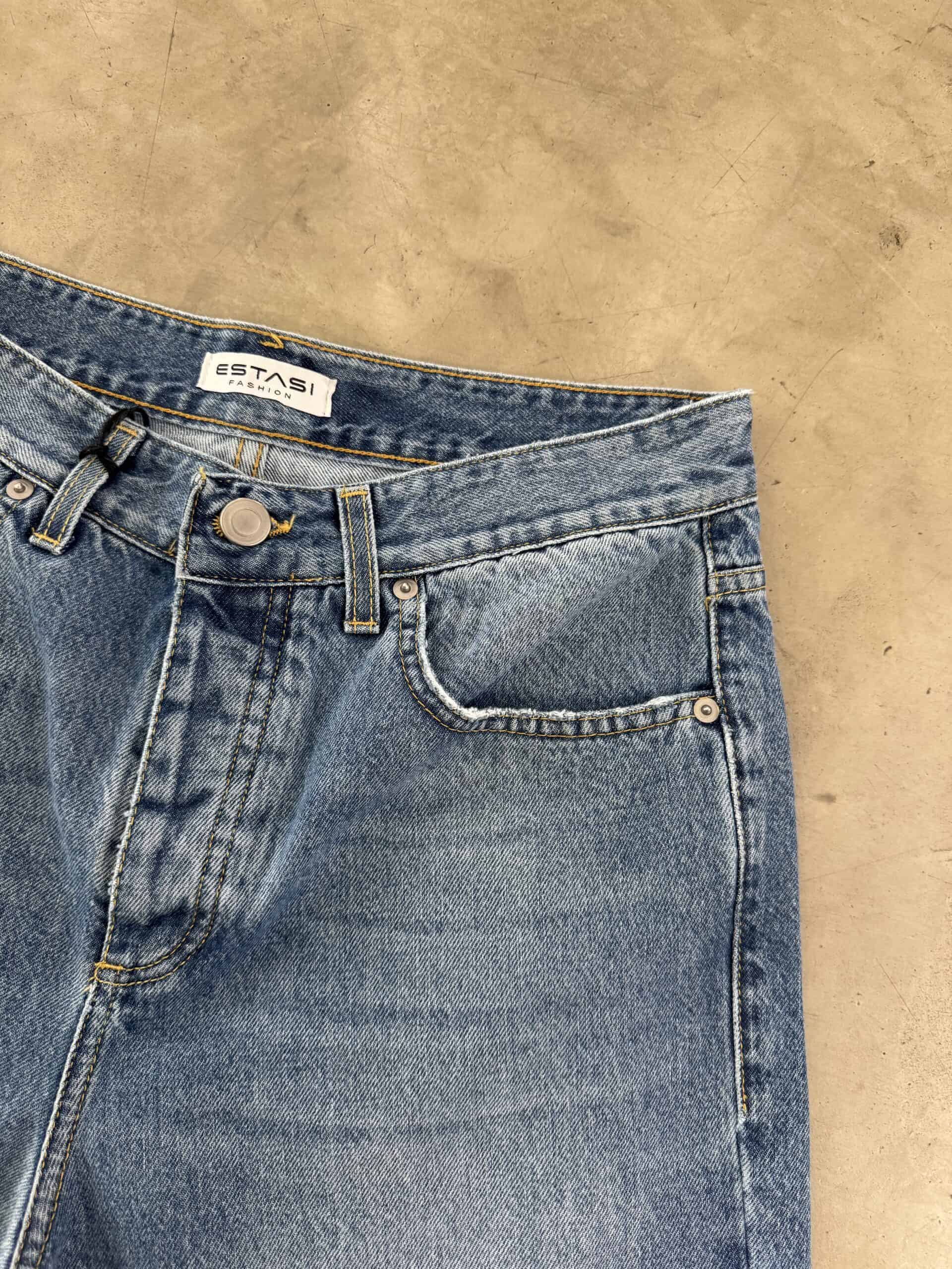 ESTASI Bermuda in jeans con bottoni e senza rotture POGBA Azzurro