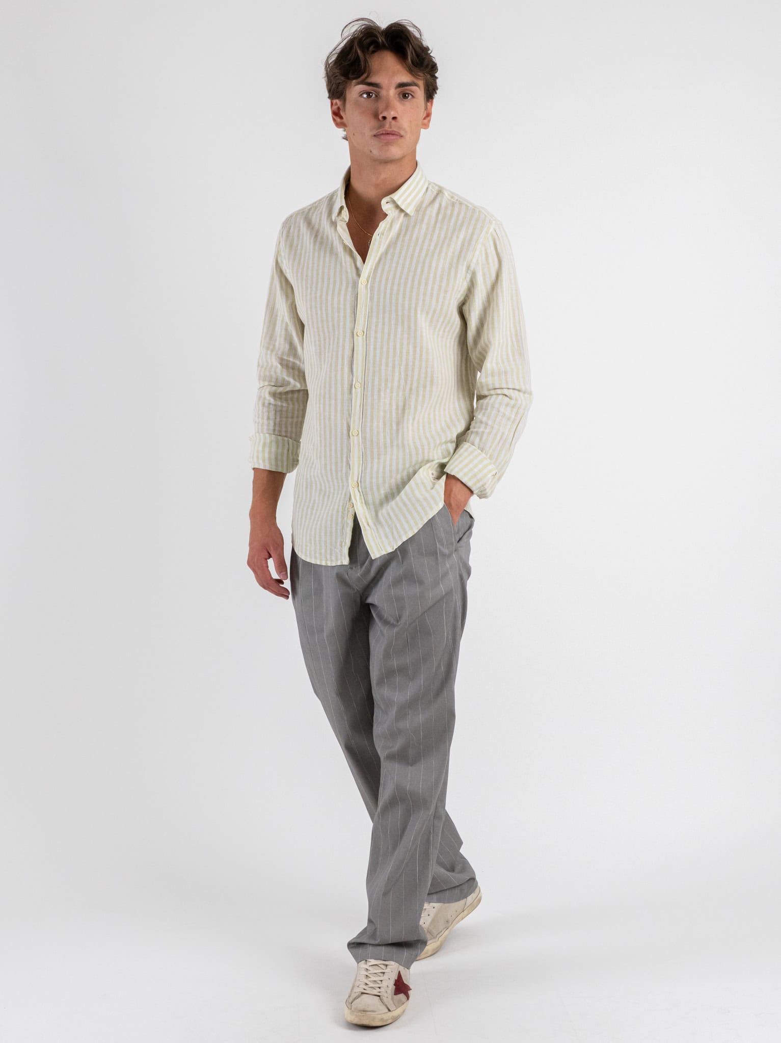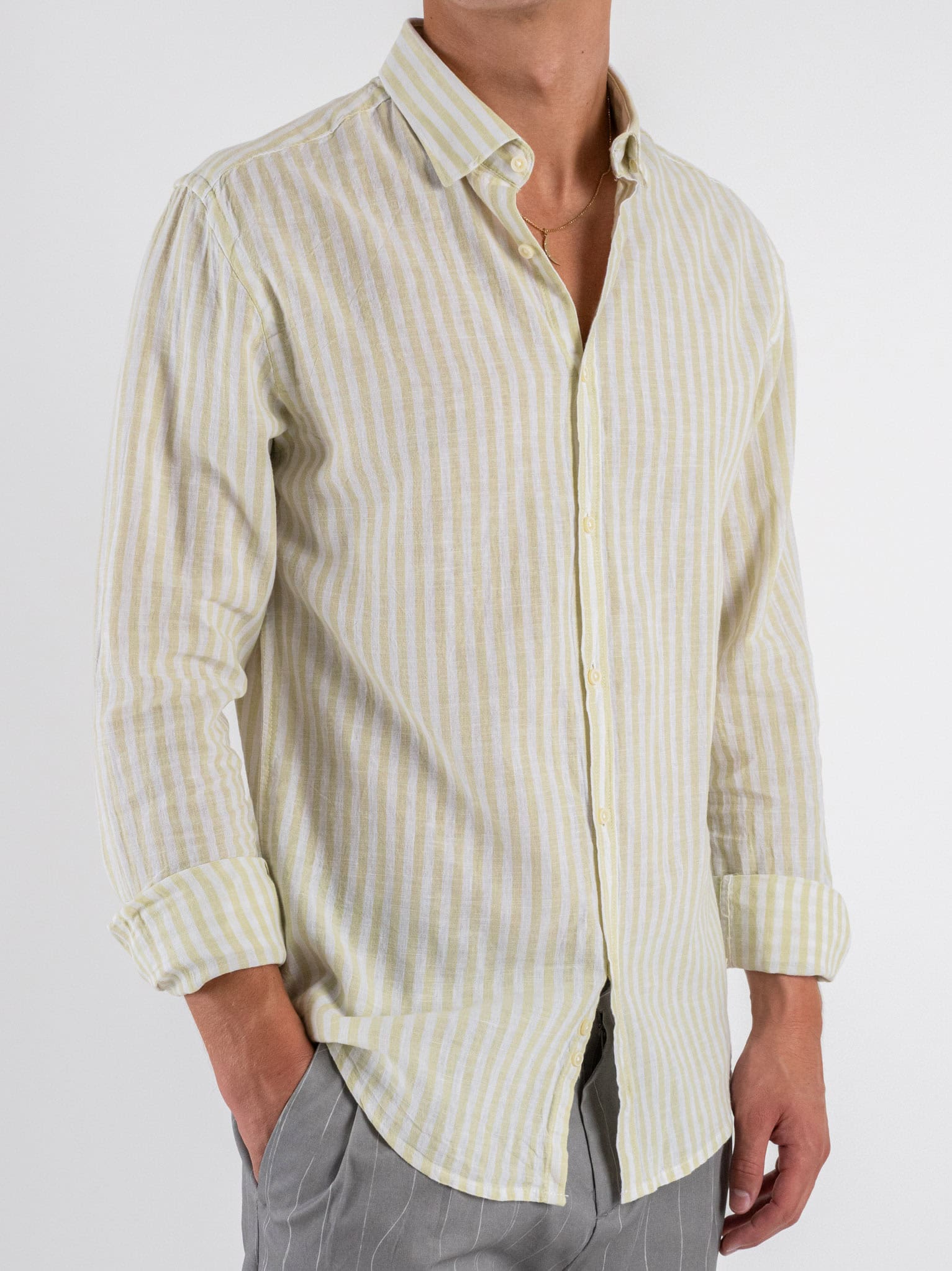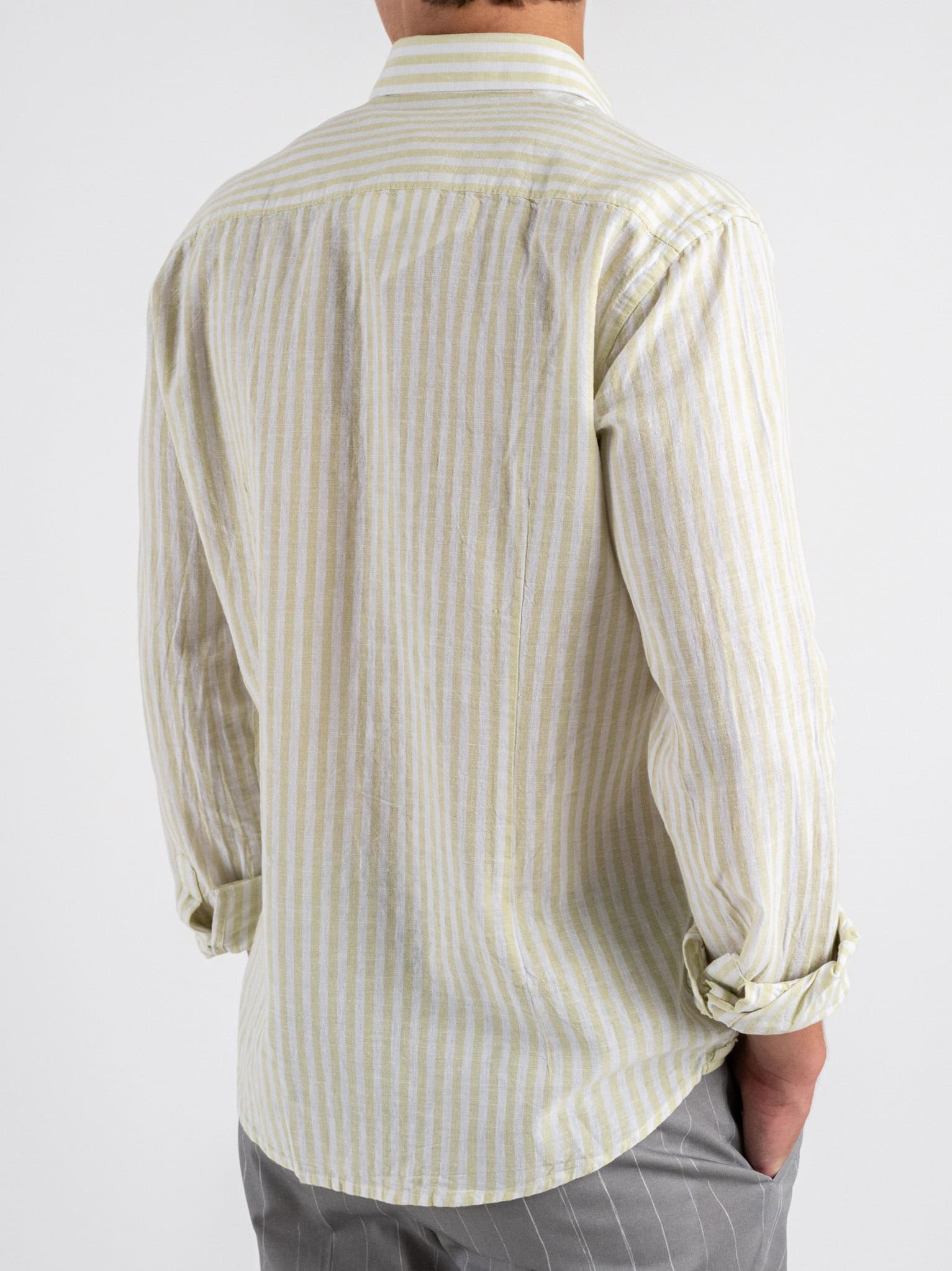 OVER-D Camicia a righe larghe in misto lino con collo alla francese OC1S2S5C11 Bamboo