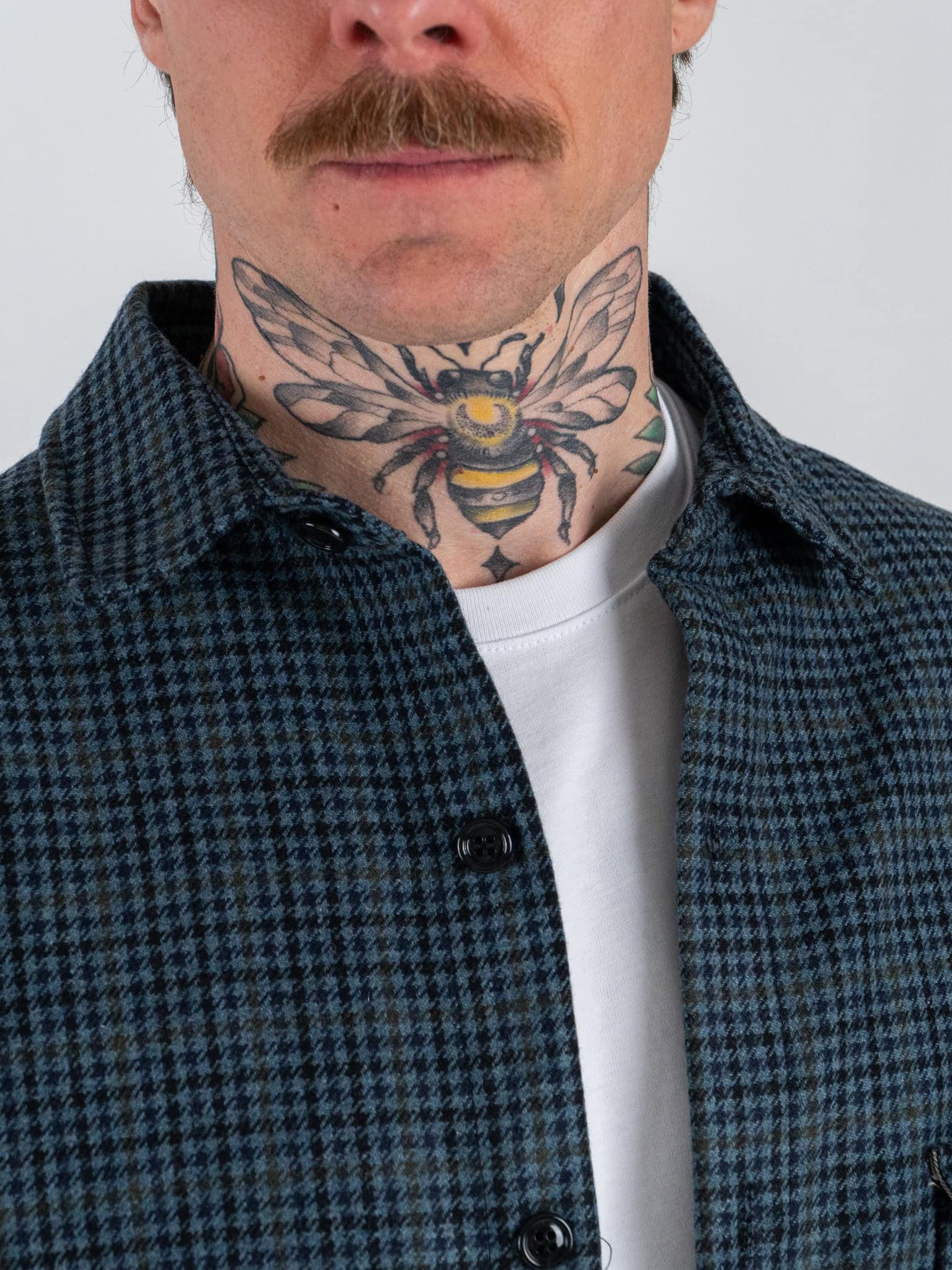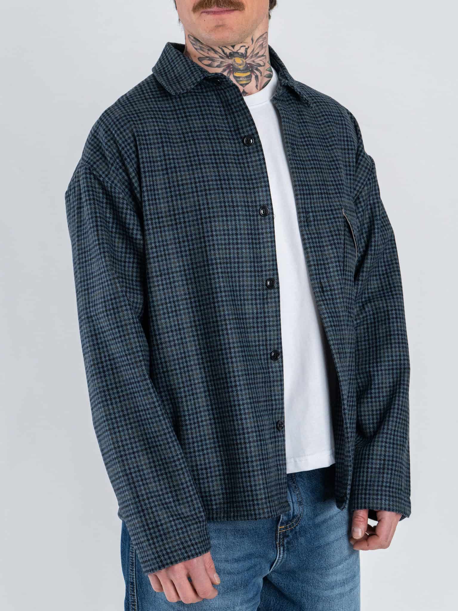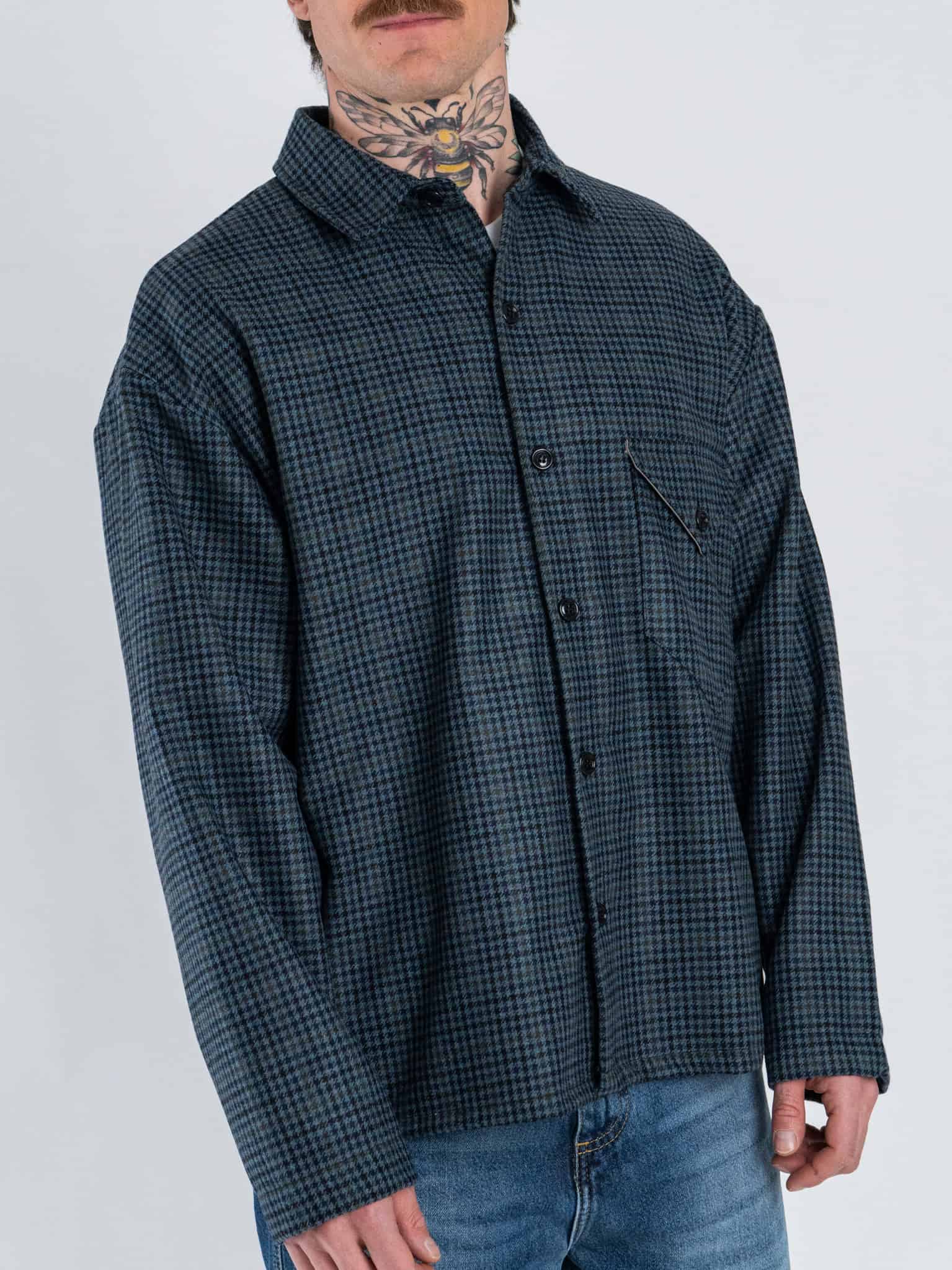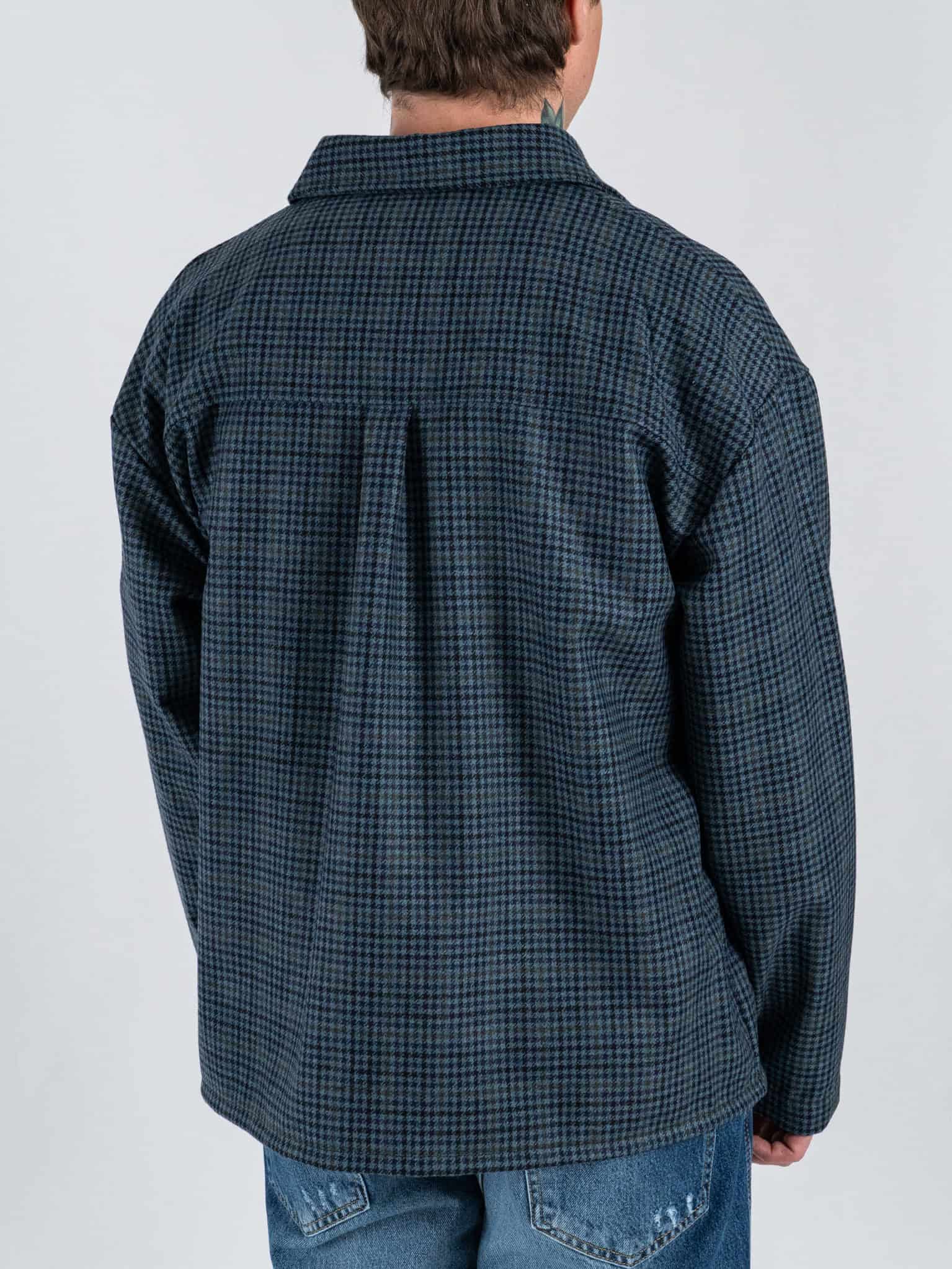 Camicia crop over in misto lana fantasia pied de poule 002 Blu