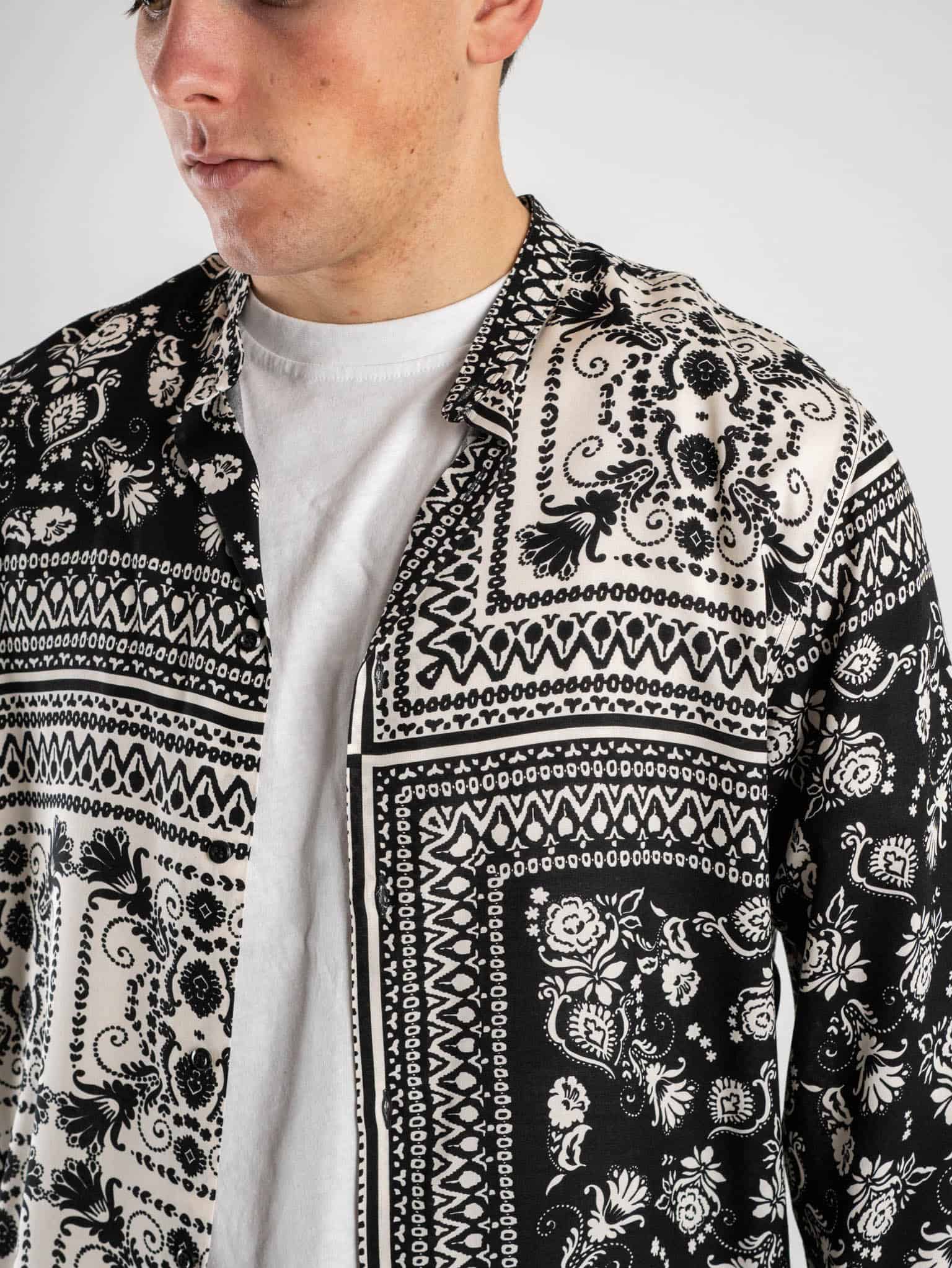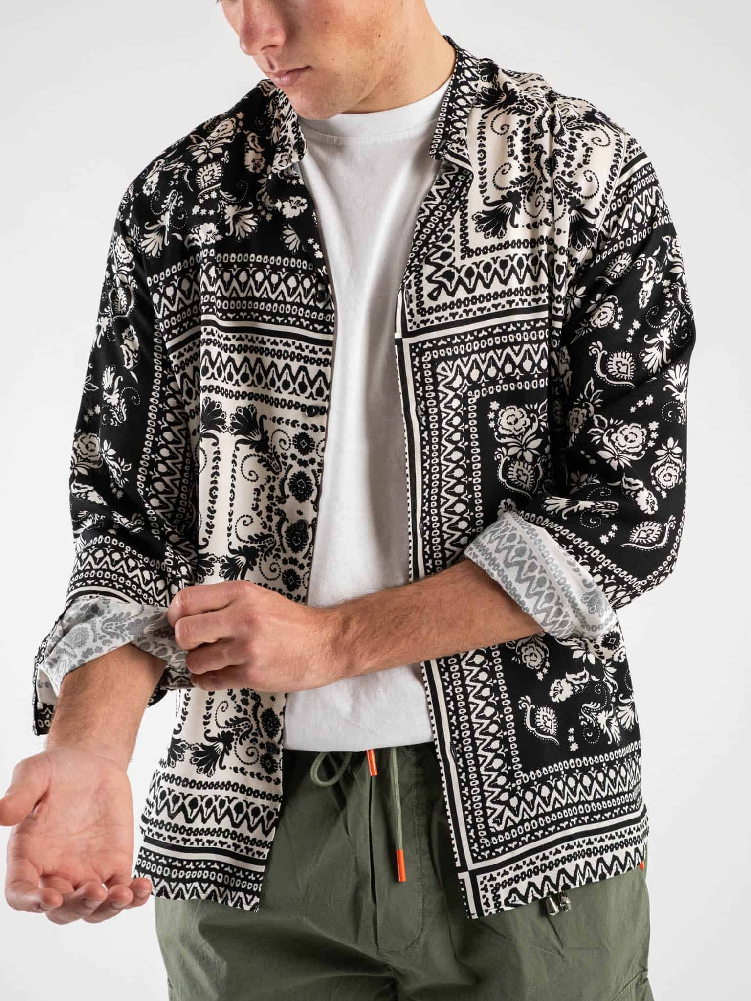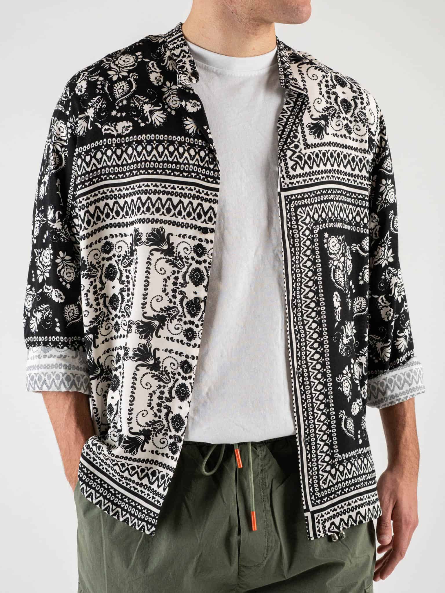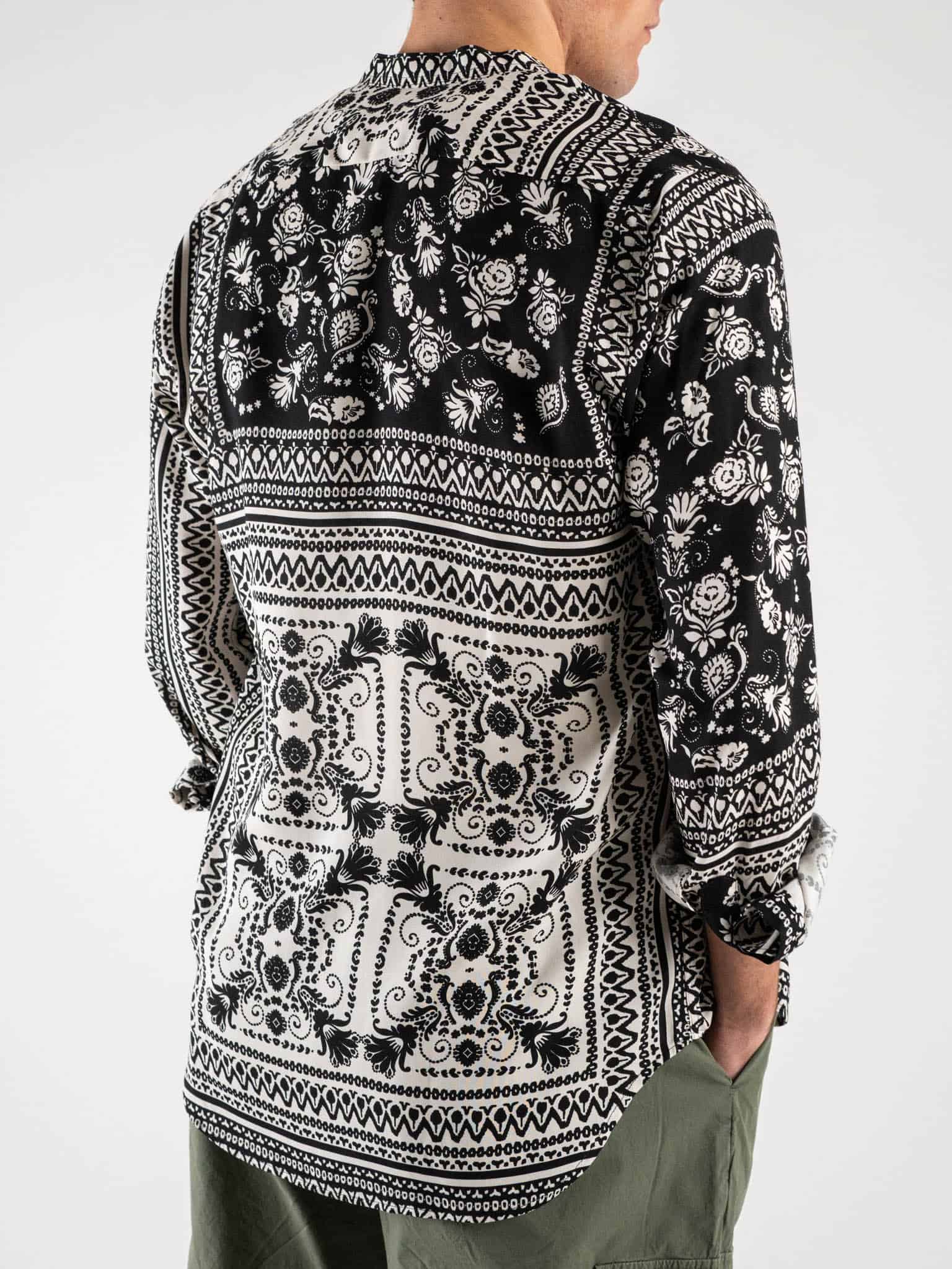 ESTASI Camicia coreana viscosa in fantasia CESENA Panna/Nera