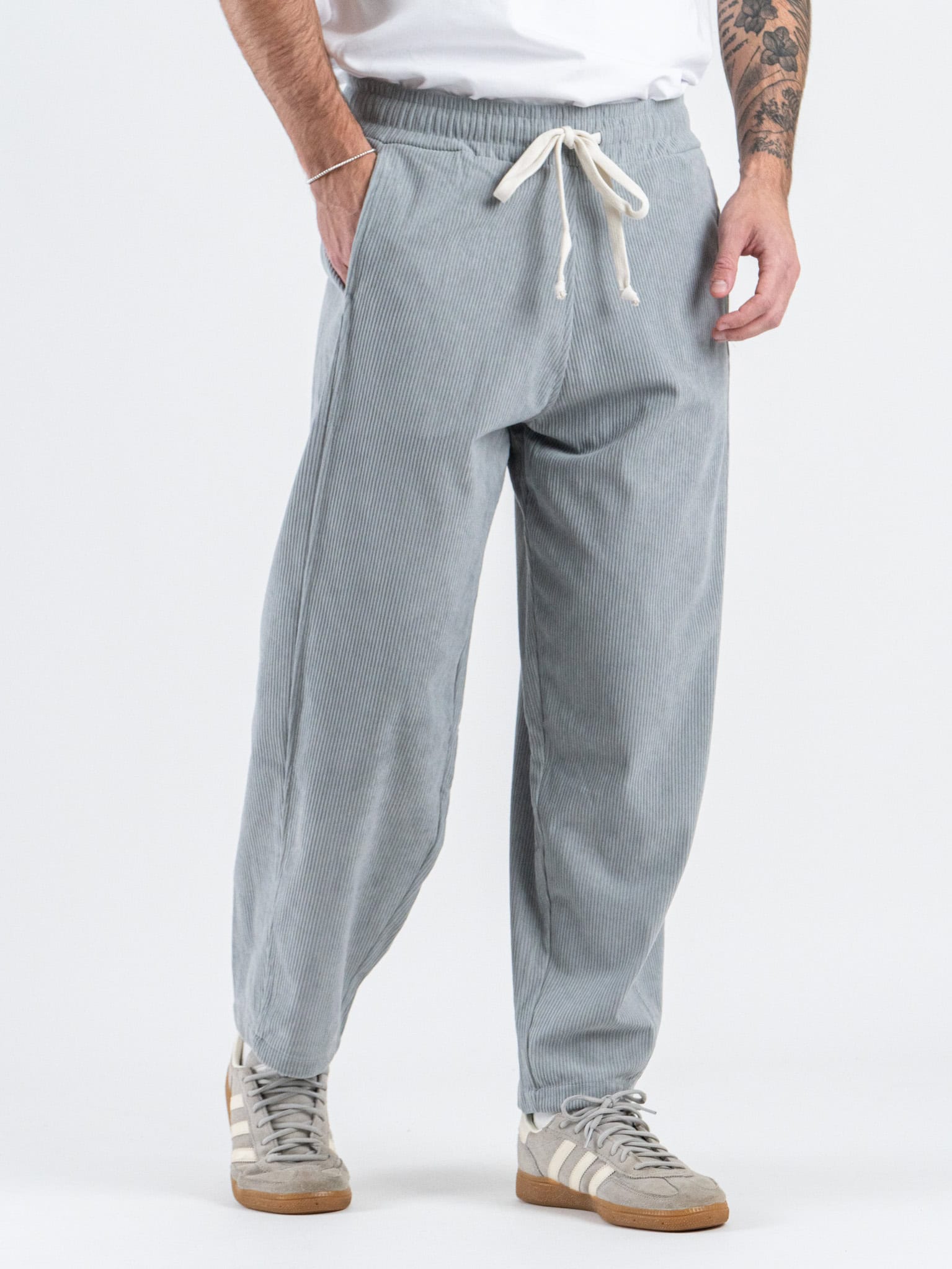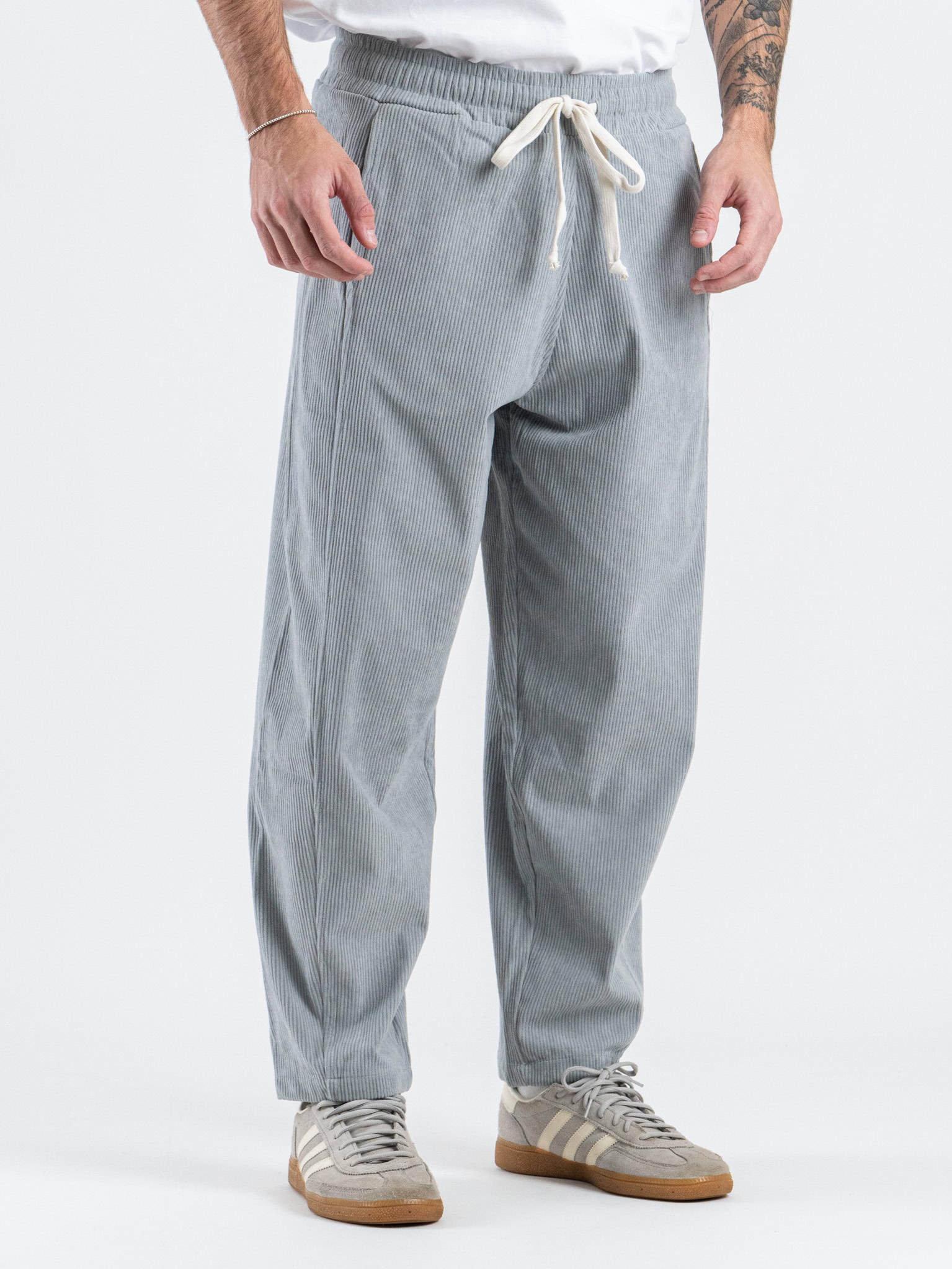 Coordinato in velluto a costine con camicia a manica lunga + pantalone over con coulisse 626 Grigio