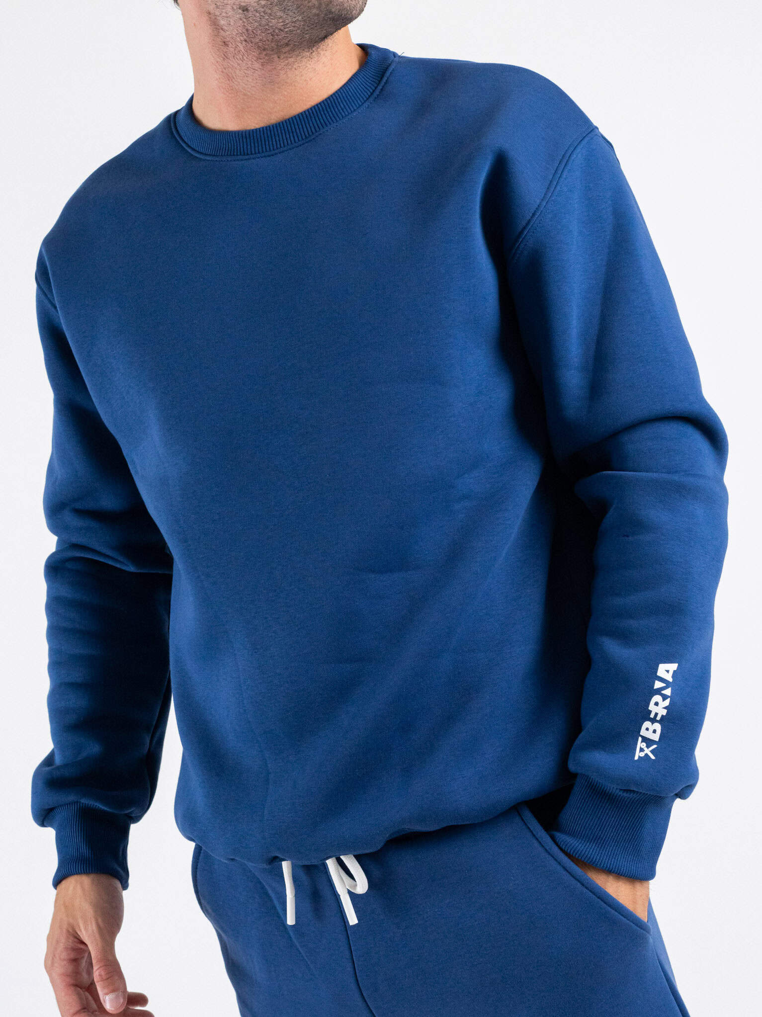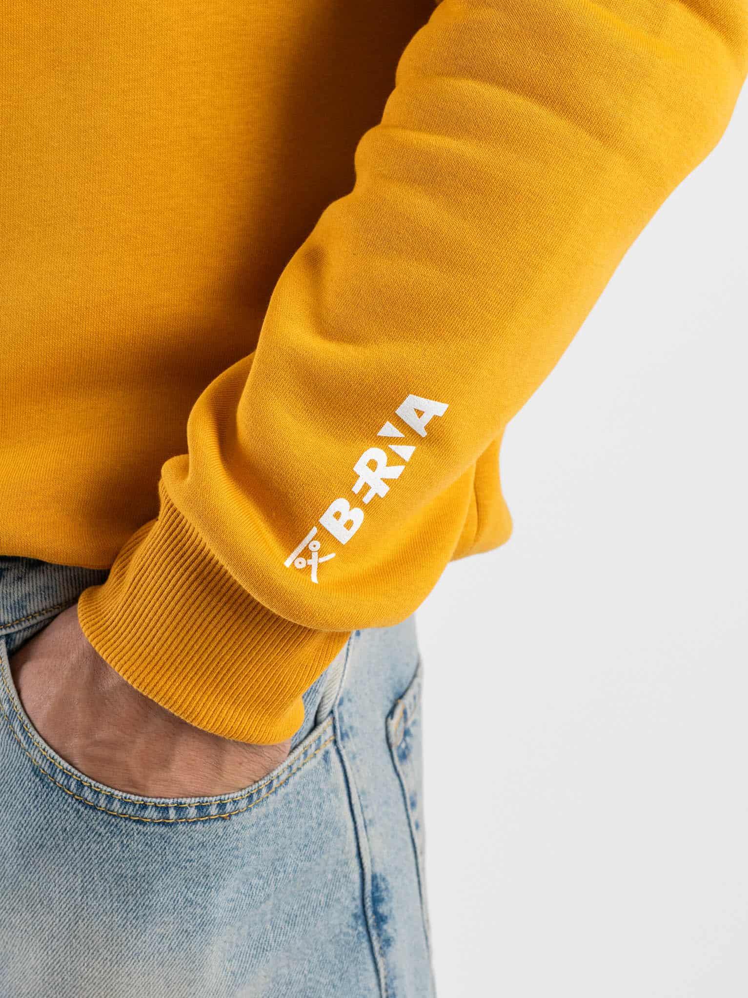BERNA Felpa girocollo felpata con logo sulla manica 252020 Senape