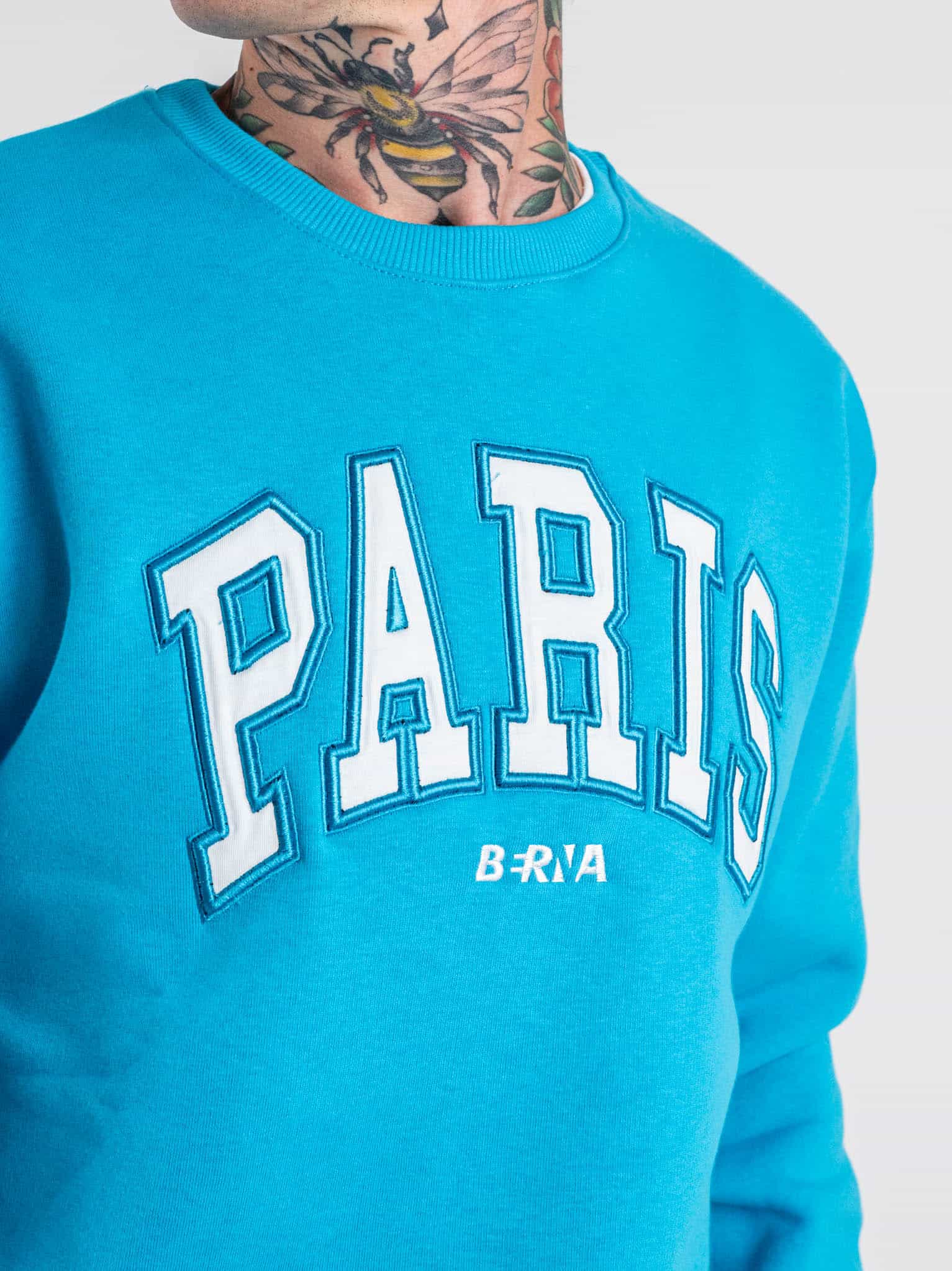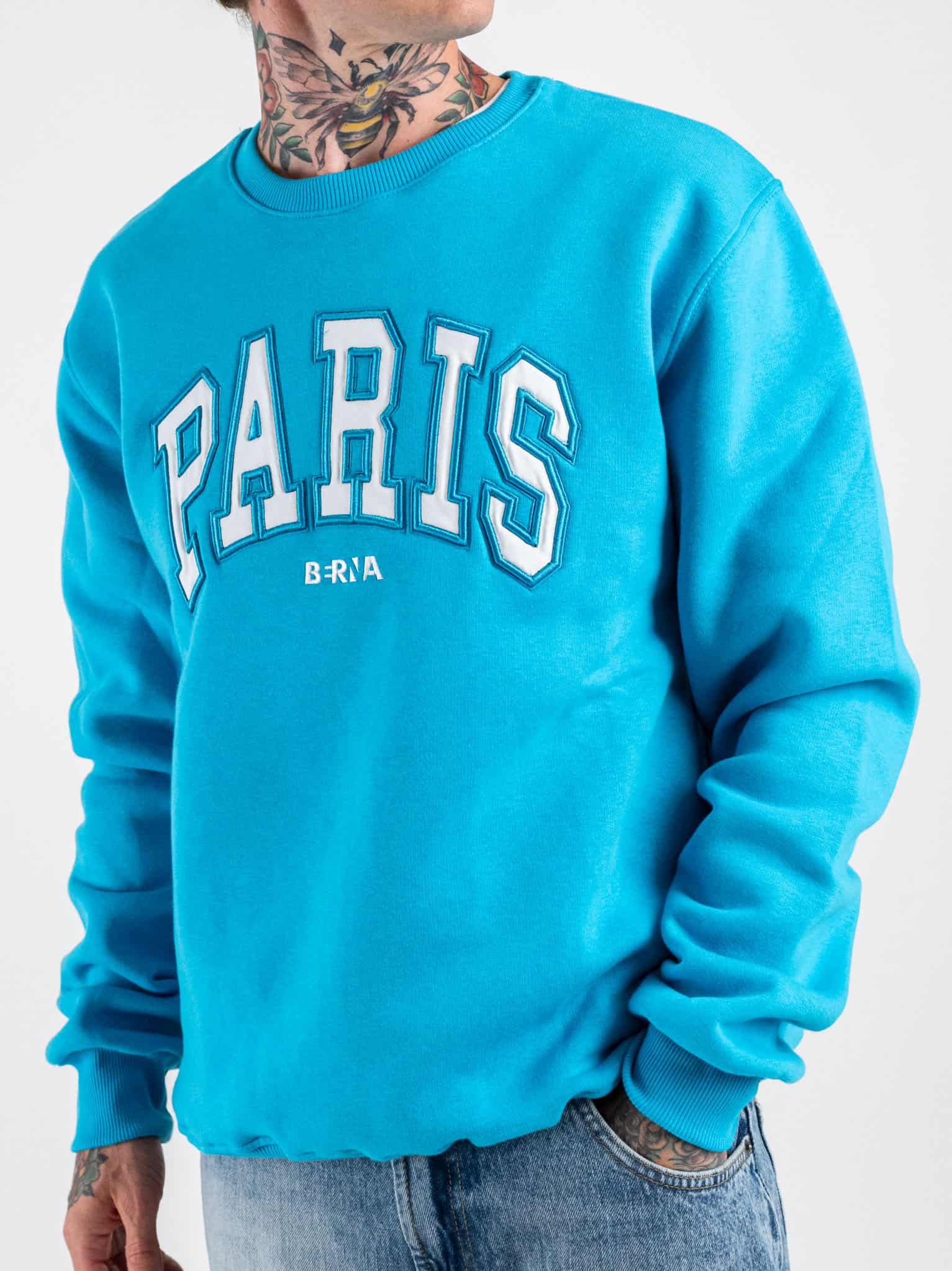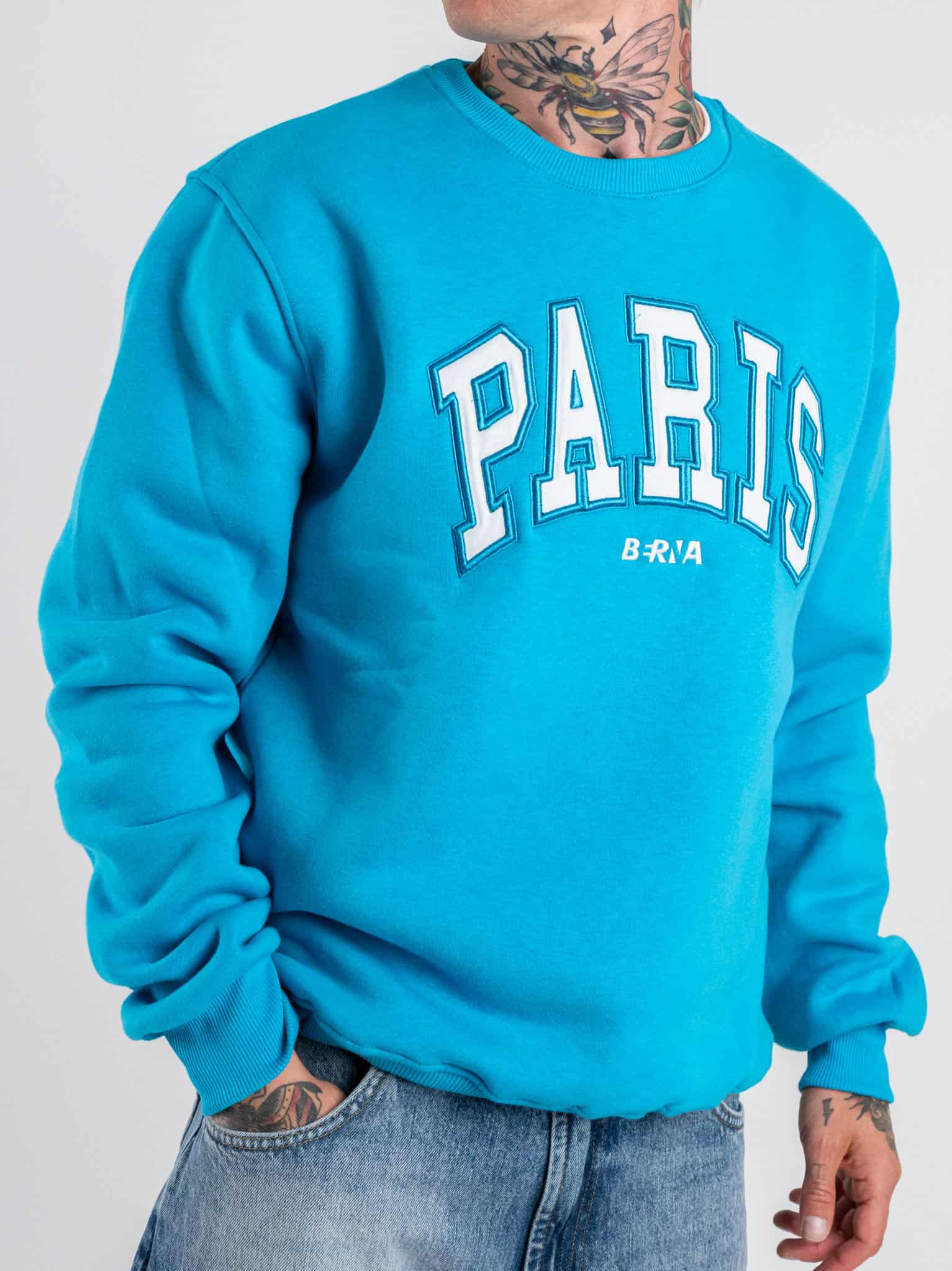 BERNA Felpa girocollo garzata con ricamo PARIS 233122 Poseidon
