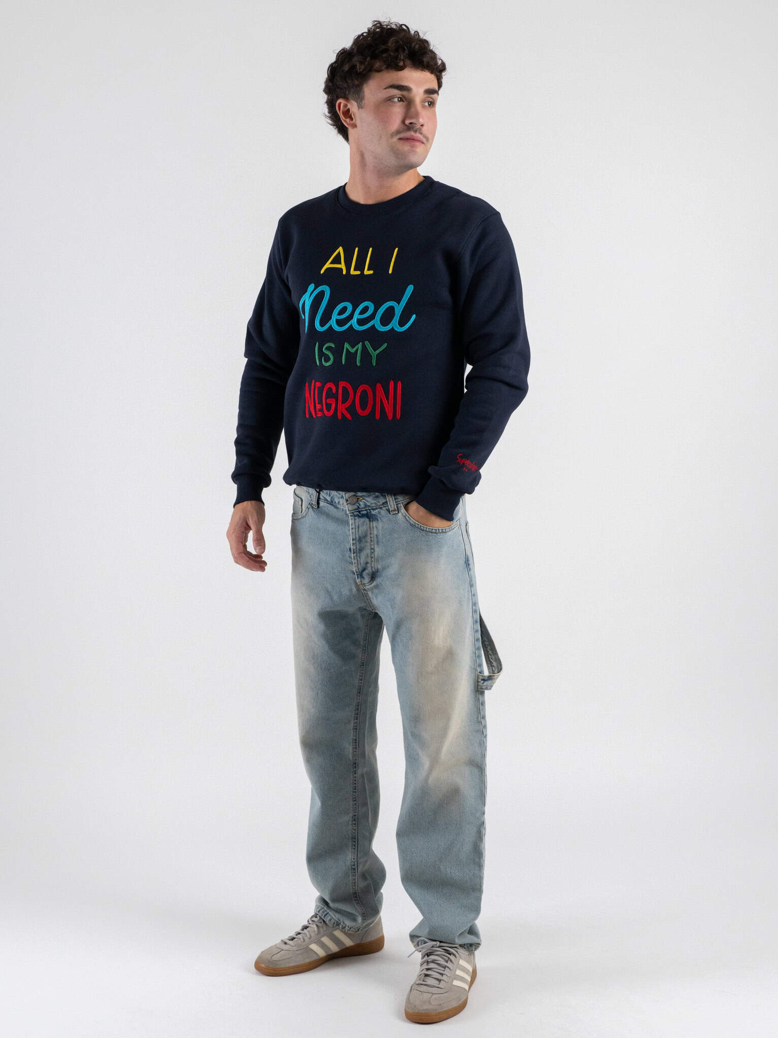 SUPERCULTURE Felpa girocollo felpata con ricamo “All i Need is my Negroni” A1359 Blu