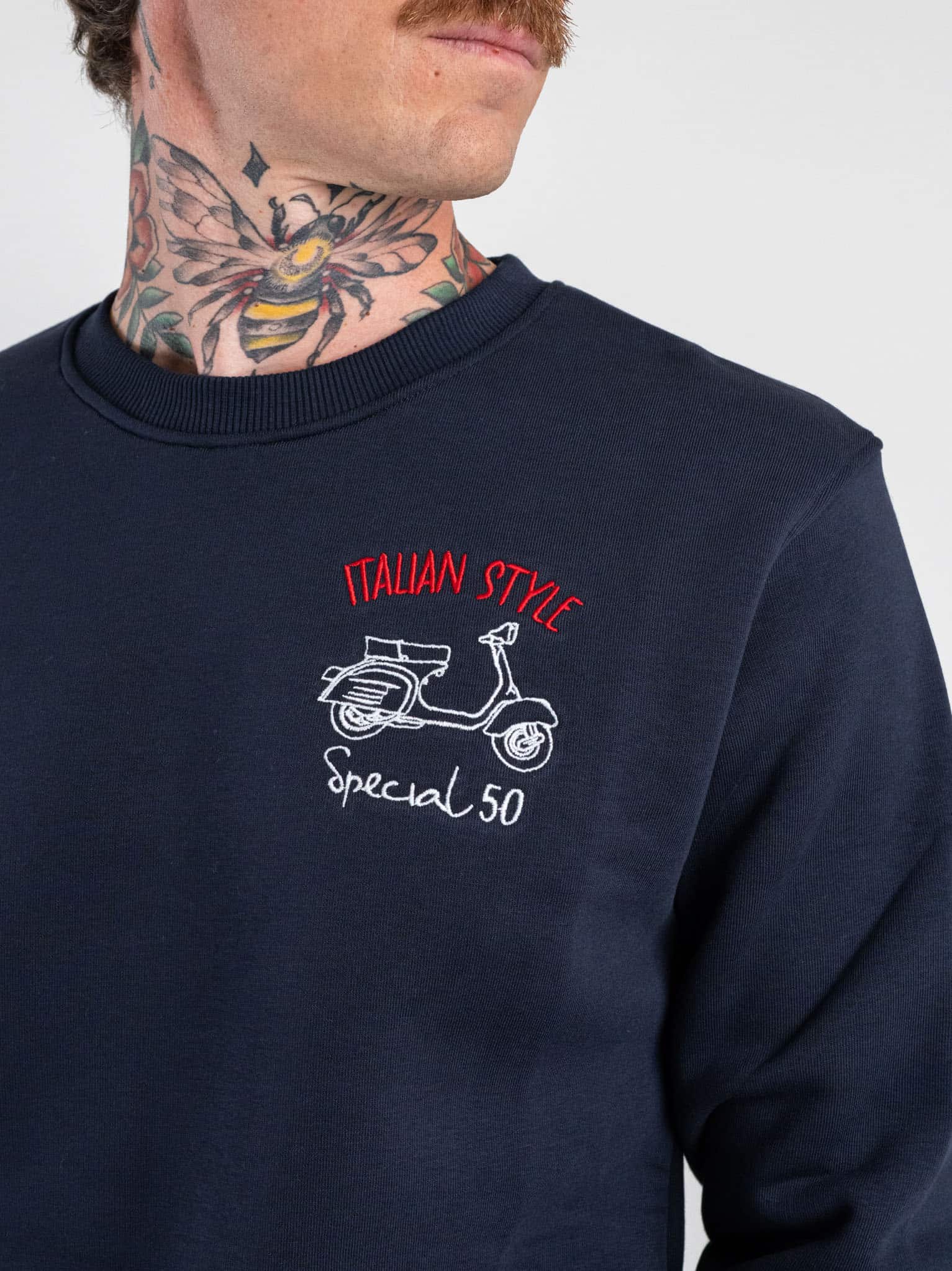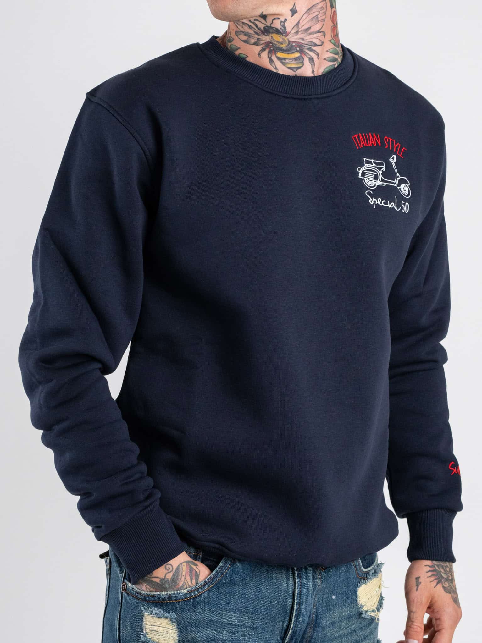 SUPERCULTURE Felpa girocollo felpata con ricamo lato cuore “Italian Style” A1363 Blu