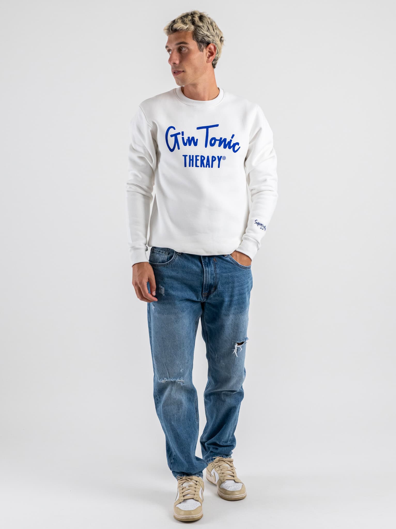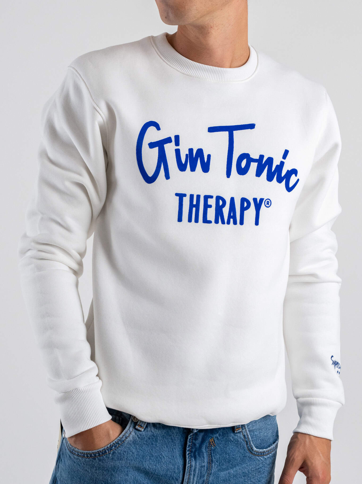 SUPERCULTURE Felpa girocollo felpata con stampa floccata Gin Tonic therapy A1379 White