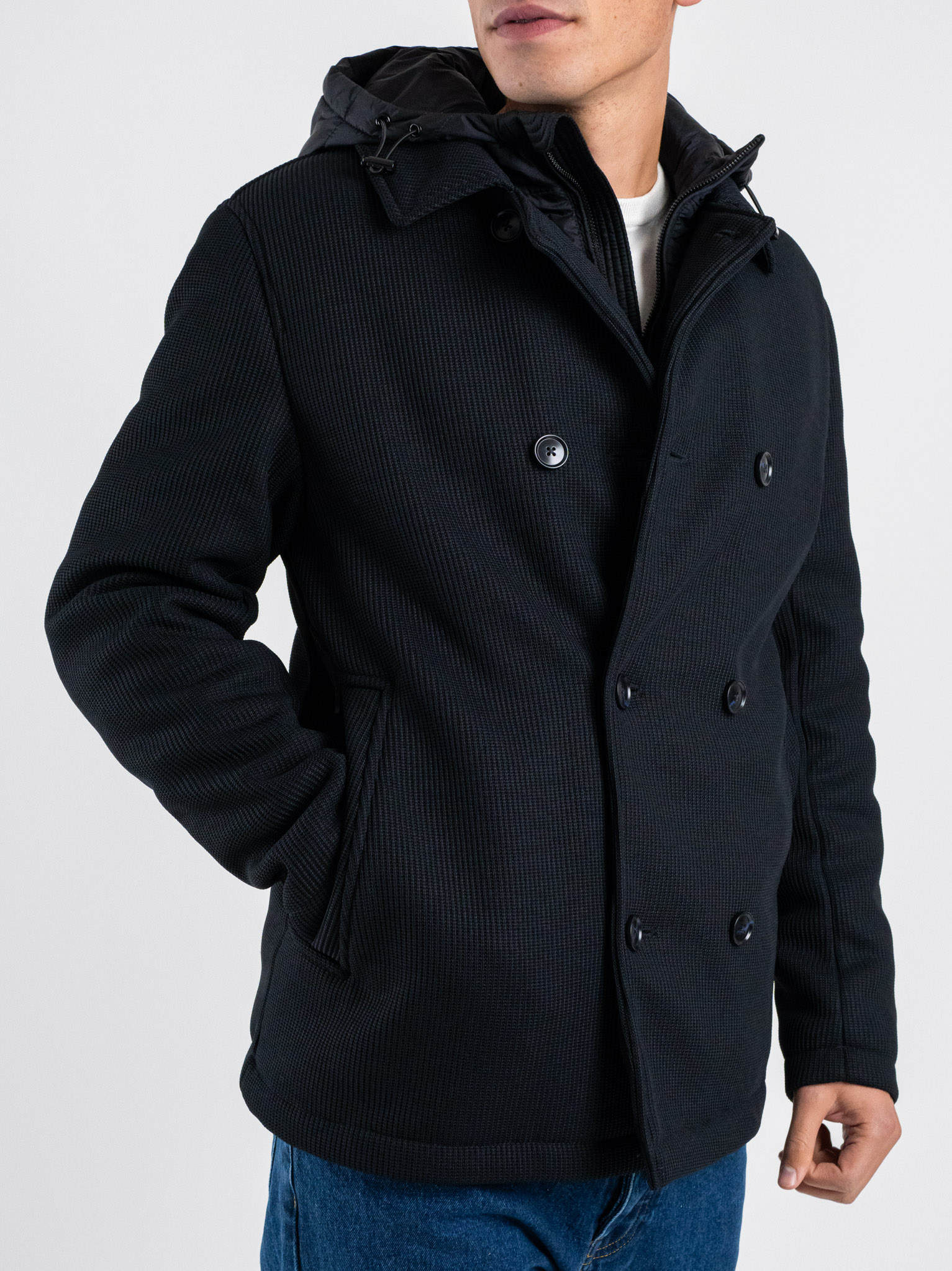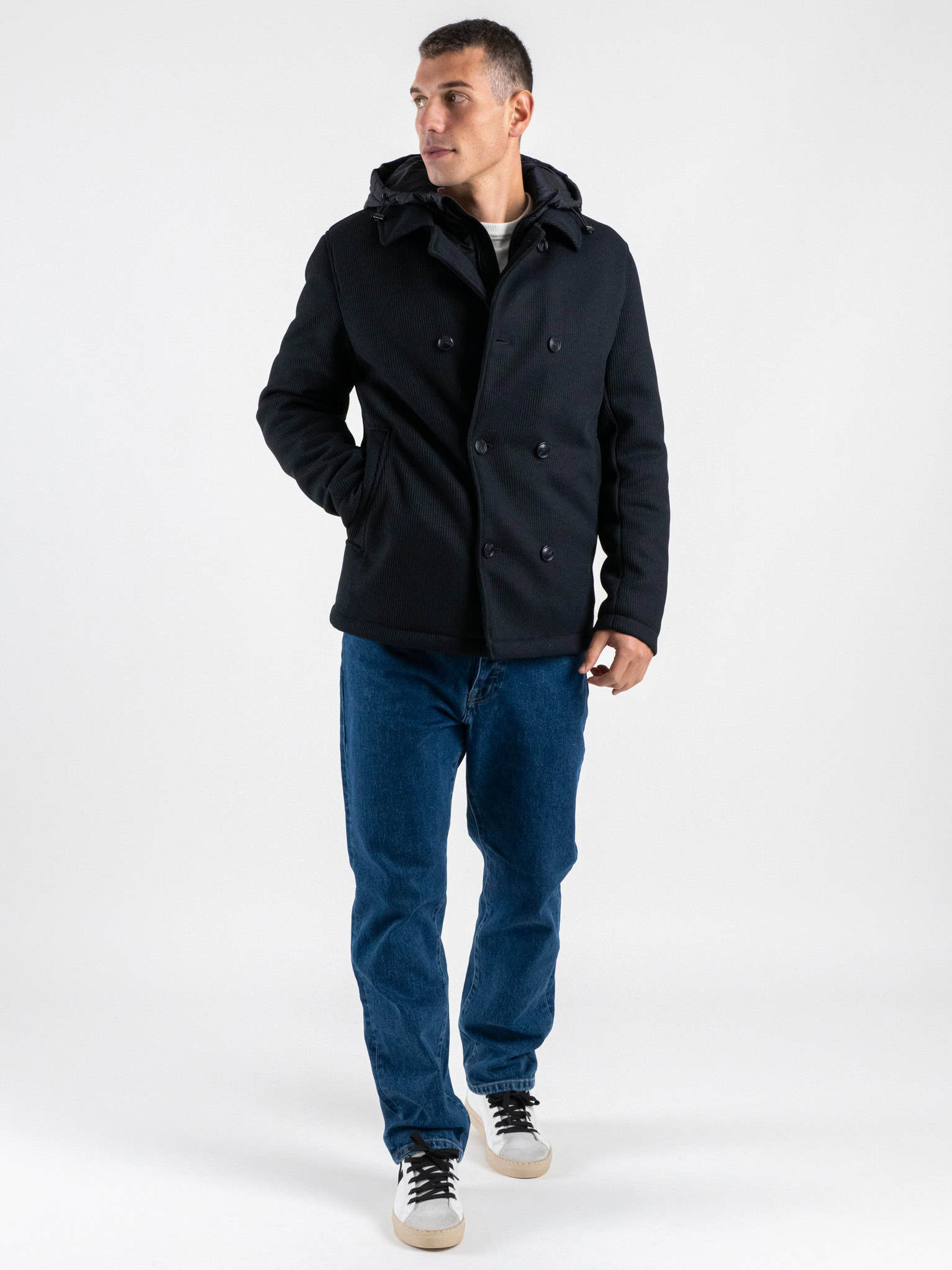 SEINSE Giubbino doppio petto imbottito con cappuccio removibile GBI1090SS Blu