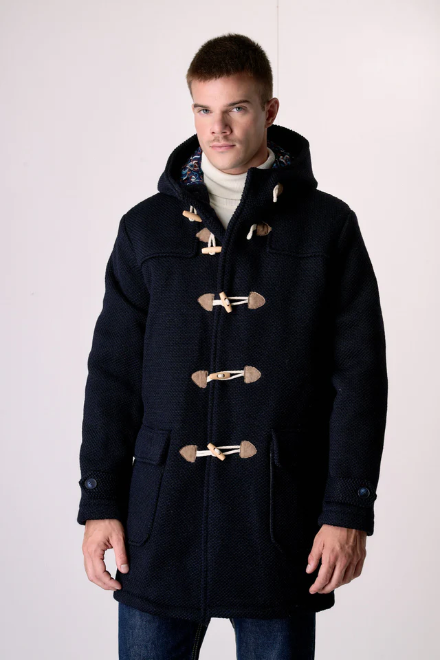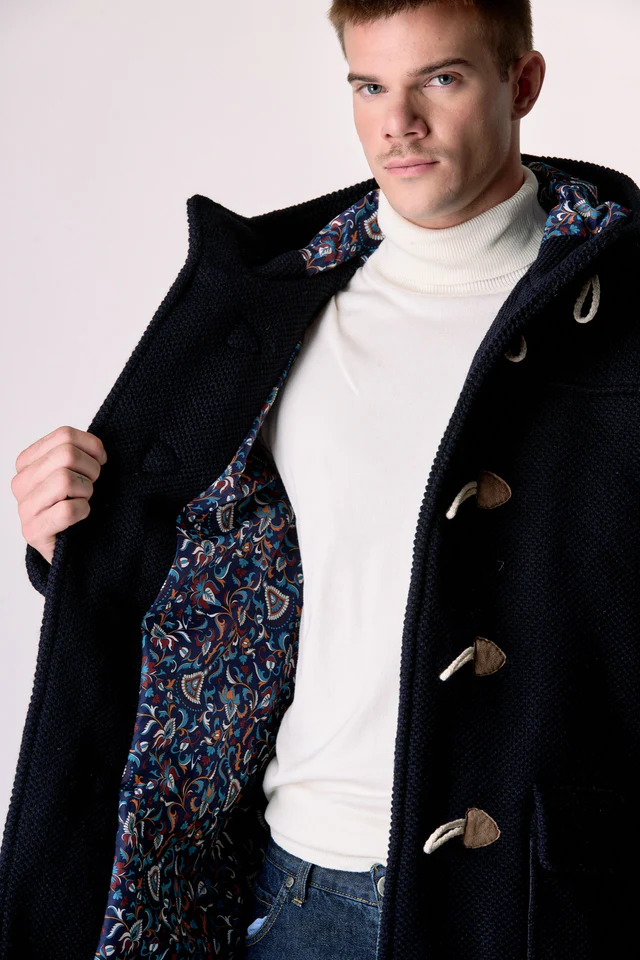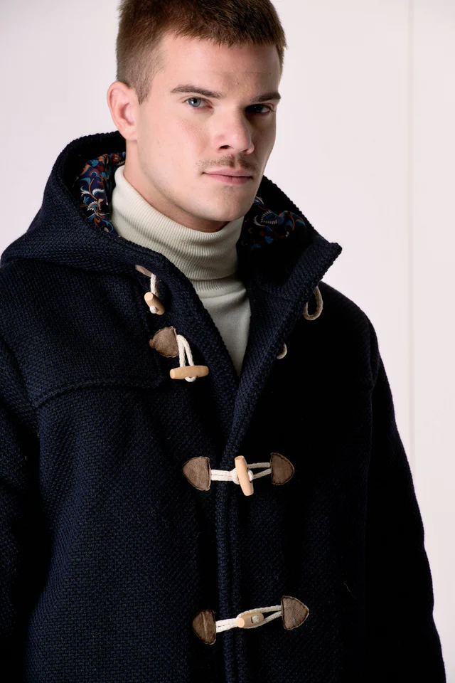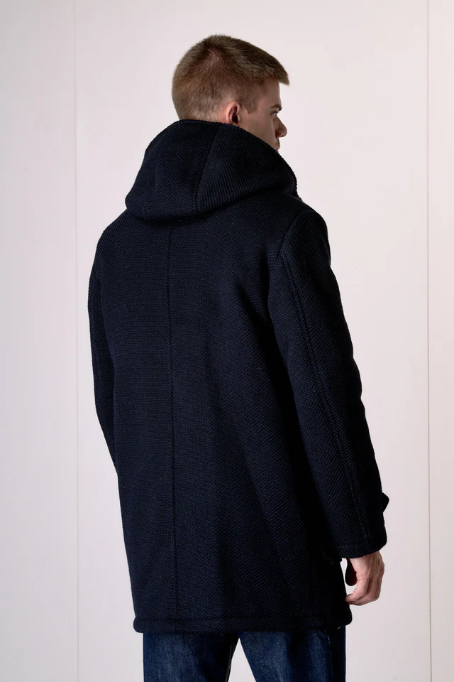 V2 Montgomery punto riso regular in misto lana con cappuccio e bottoni MONTRISBL Blu