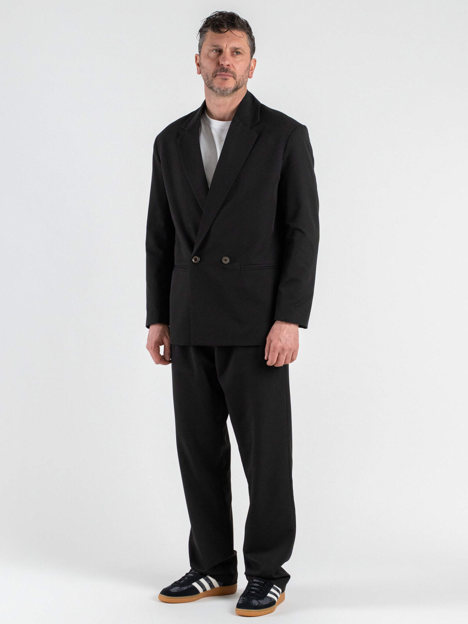 La giacca IMPERIAL over a un petto e mezzo è un capo dallo stile moderno e di forte personalità. La vestibilità over crea una silhouette attuale e di tendenza, perfetta per chi ama distinguersi con un look contemporaneo. Il design a un petto e mezzo dona struttura e carattere, mantenendo un’estetica elegante e pulita. Il colore nero rende la giacca estremamente versatile e facile da abbinare, sia con outfit casual chic che con look più ricercati. Ideale per occasioni urbane, serate o contesti fashion-forward, è un capo iconico che unisce stile sartoriale e spirito moderno.