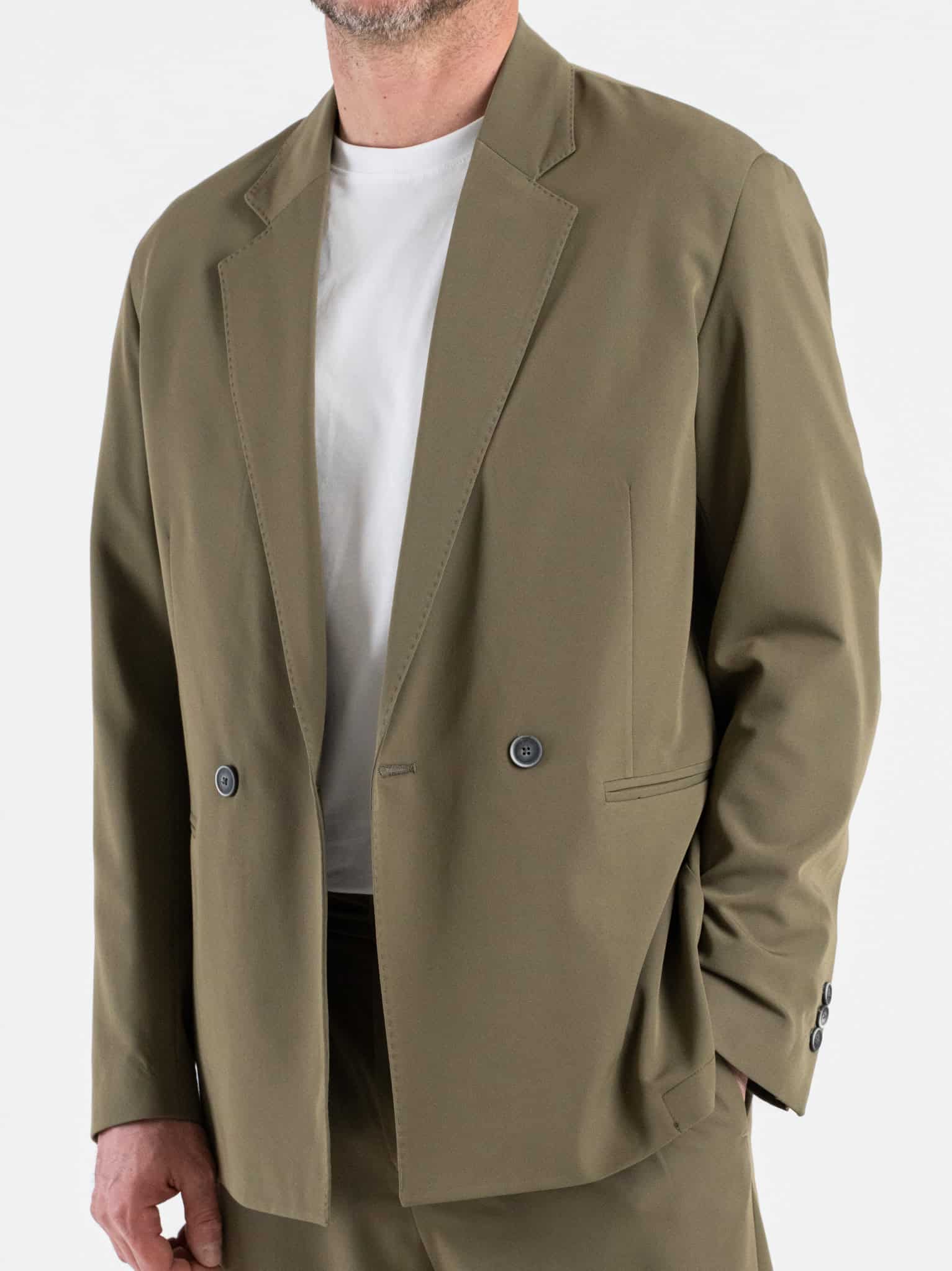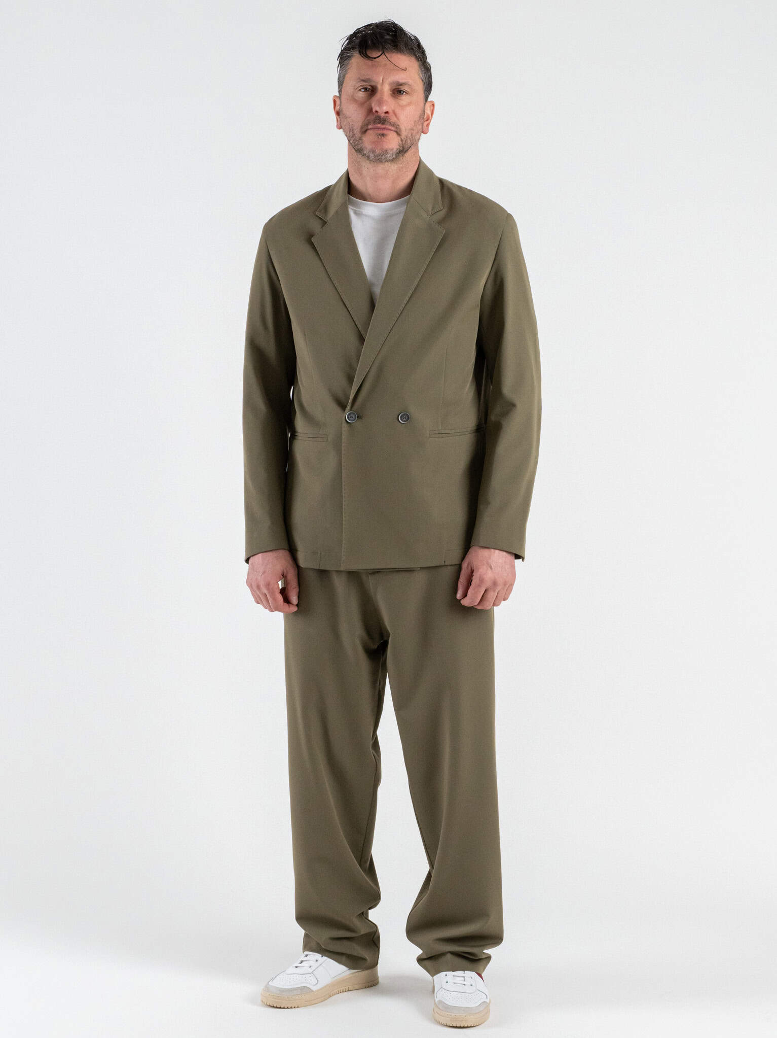 L’abito coordinato OVER-D combina una giacca a un petto e mezzo con un pantalone loose dotato di elastico in vita, per uno stile rilassato e contemporaneo. Il fit relaxed assicura una vestibilità ampia e confortevole, ideale per accompagnare i movimenti con naturalezza. La giacca presenta una struttura morbida che mantiene un aspetto curato ma disinvolto. Il pantalone ampio garantisce praticità e comfort durante tutta la giornata. Il colore militare dona personalità e un tocco deciso al look. Perfetto per outfit urban chic, eventi informali o casual sofisticati. Indossarlo trasmette una sensazione di libertà, comfort e stile moderno.