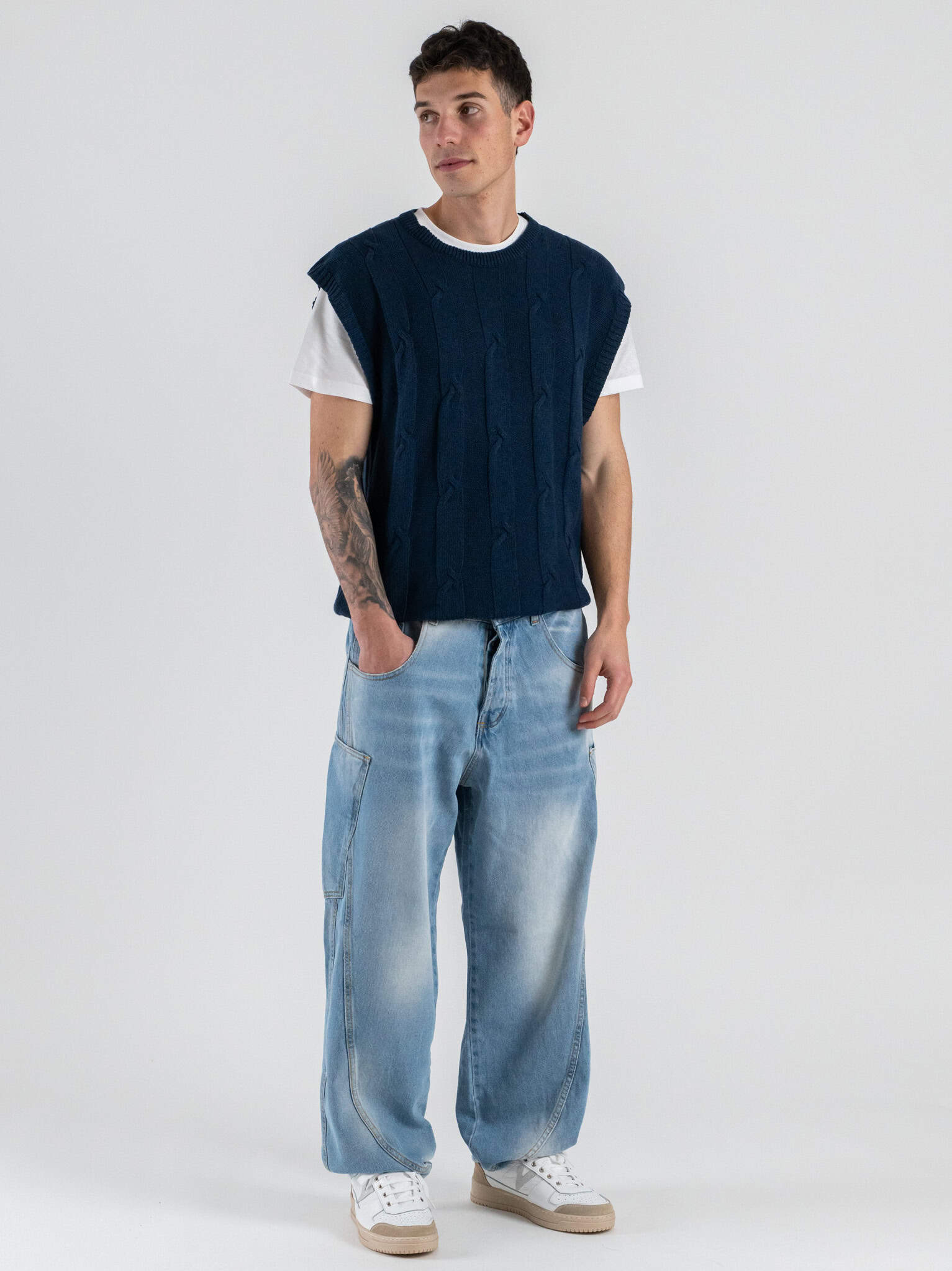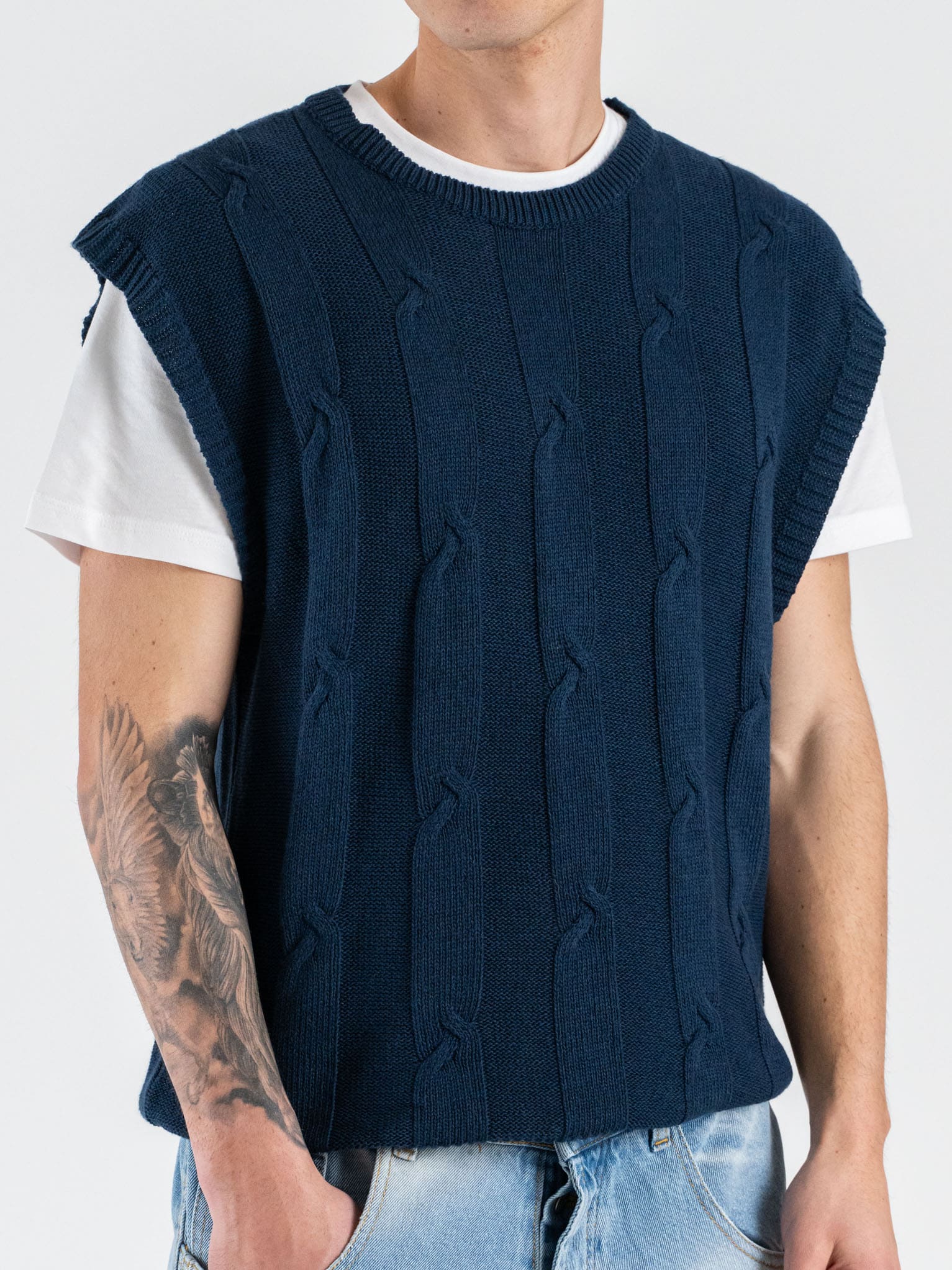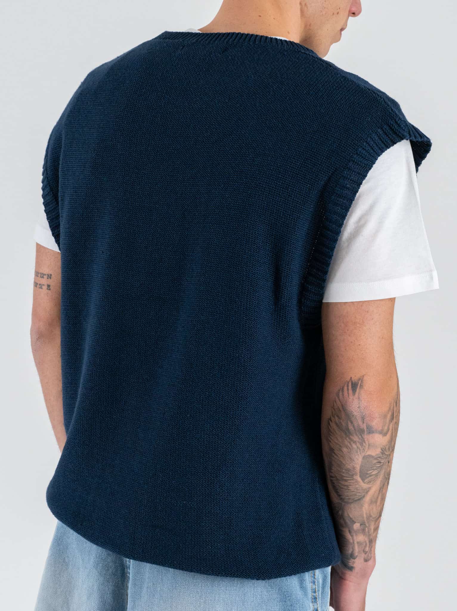 Lo scollo a V valorizza la silhouette e permette di abbinarlo facilmente a camicie, T-shirt o bluse, mentre la vestibilità regular garantisce comfort e proporzioni equilibrate. Il colore blu dona freschezza e profondità al look, rendendo il gilet adatto sia a outfit casual chic sia a combinazioni smart contemporanee.