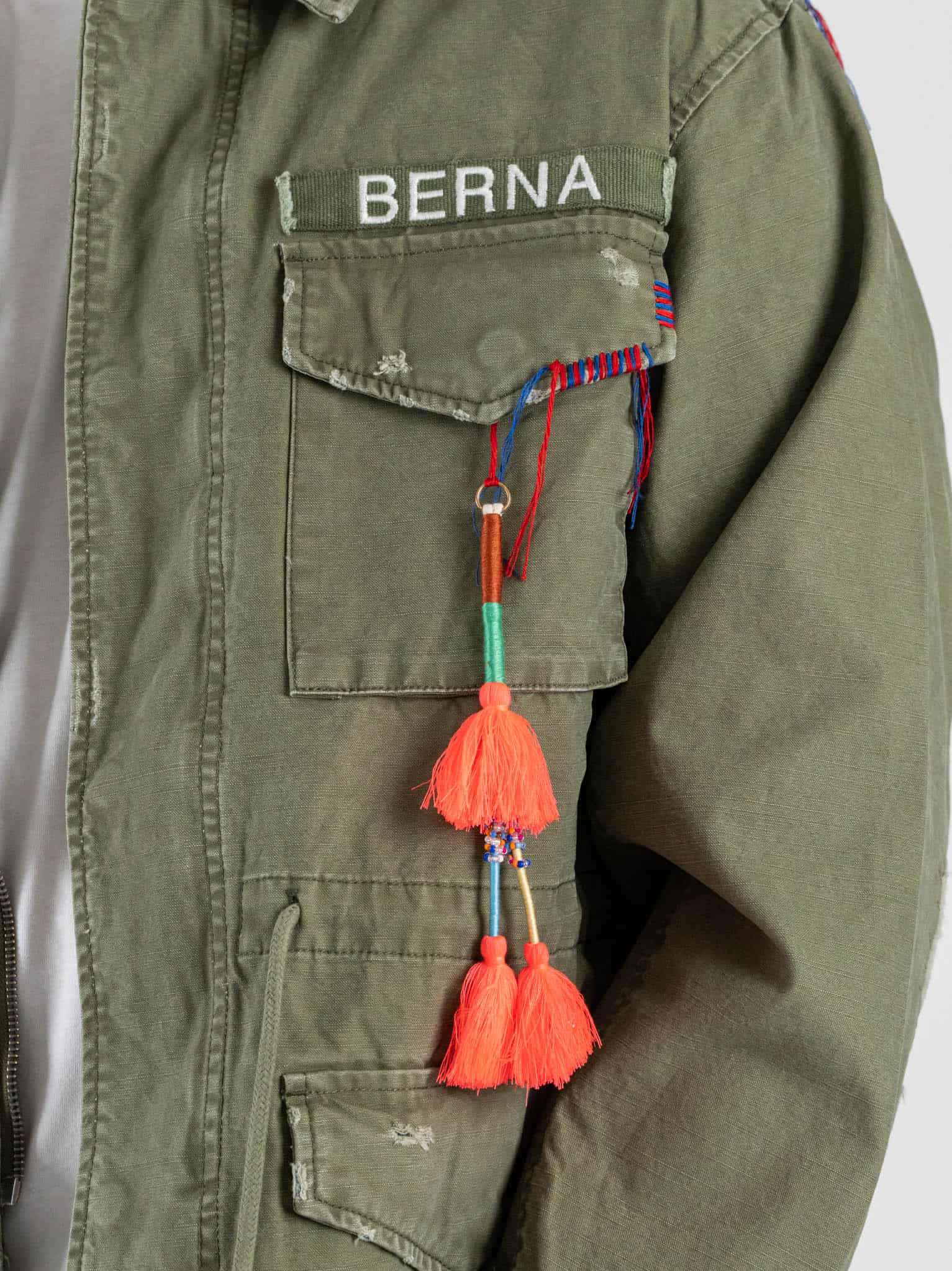 La sahariana regular con rotture e ricami colorati firmata BERNA è un capo dallo stile contemporaneo e distintivo. Realizzata in tessuto resistente, garantisce comfort e vestibilità regolare per un look equilibrato e versatile.