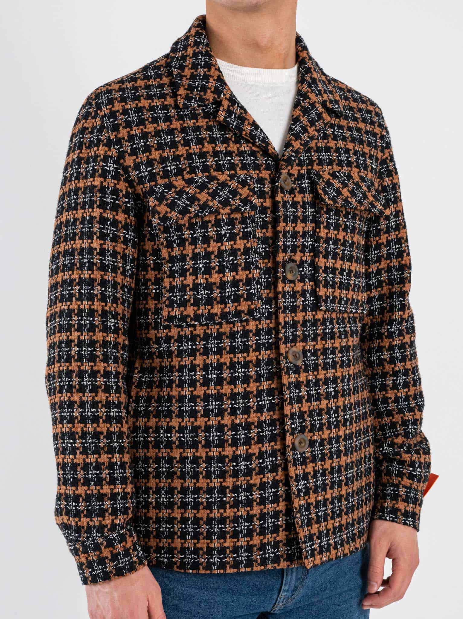 BLACKSUNDAY Giacchetta fantasia pied de poule con bottoni e tasche frontali RENNES Coccio