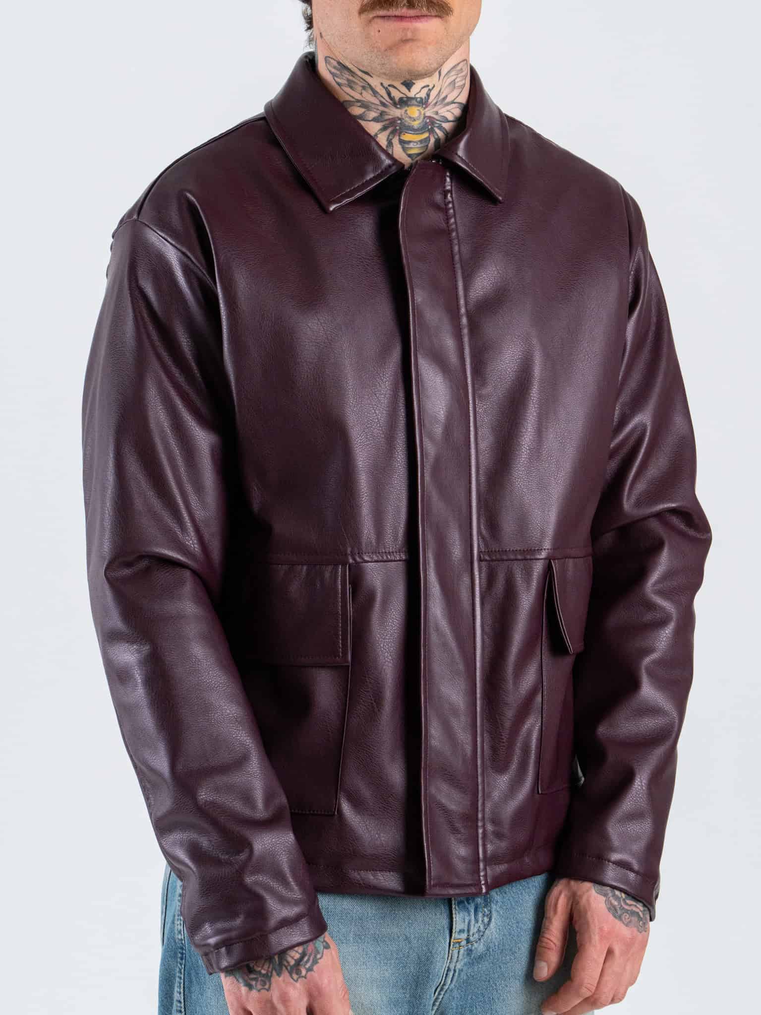 Giubbino regular in ecopelle foderato con colletto, zip e tasche frontali ZG126 Bordeaux
