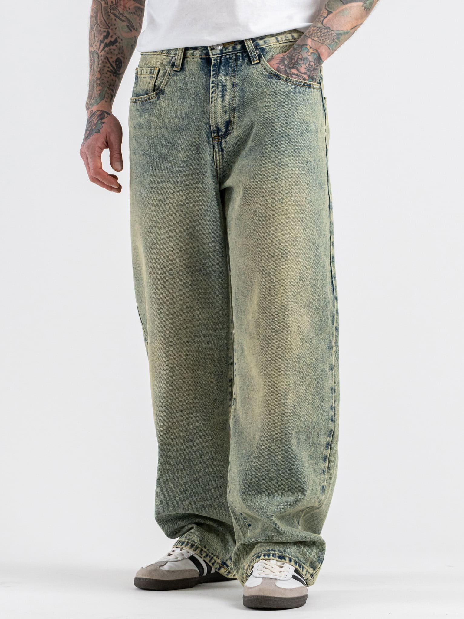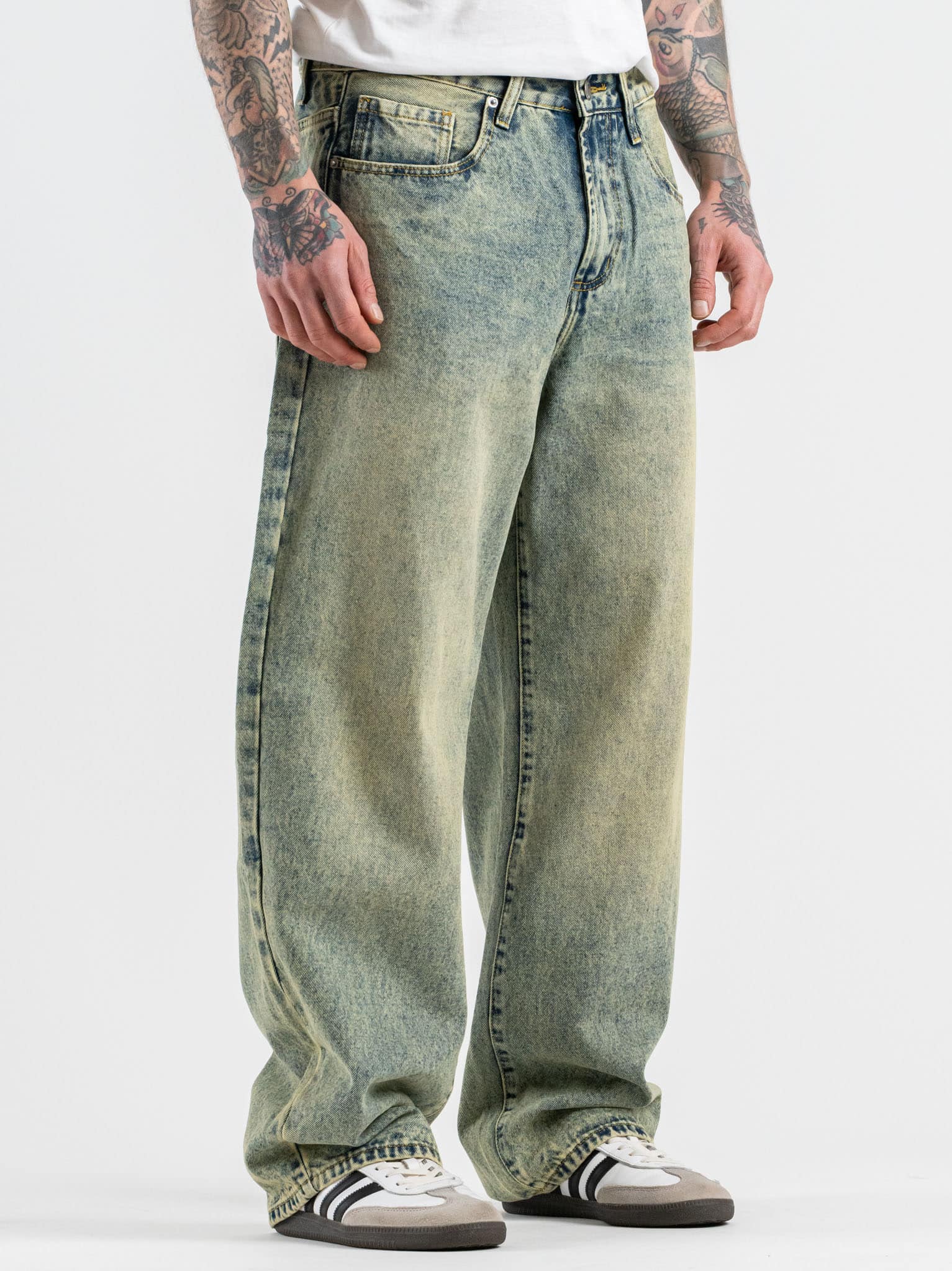 Jeans balloon fit con slavatura sabbiata 3159
