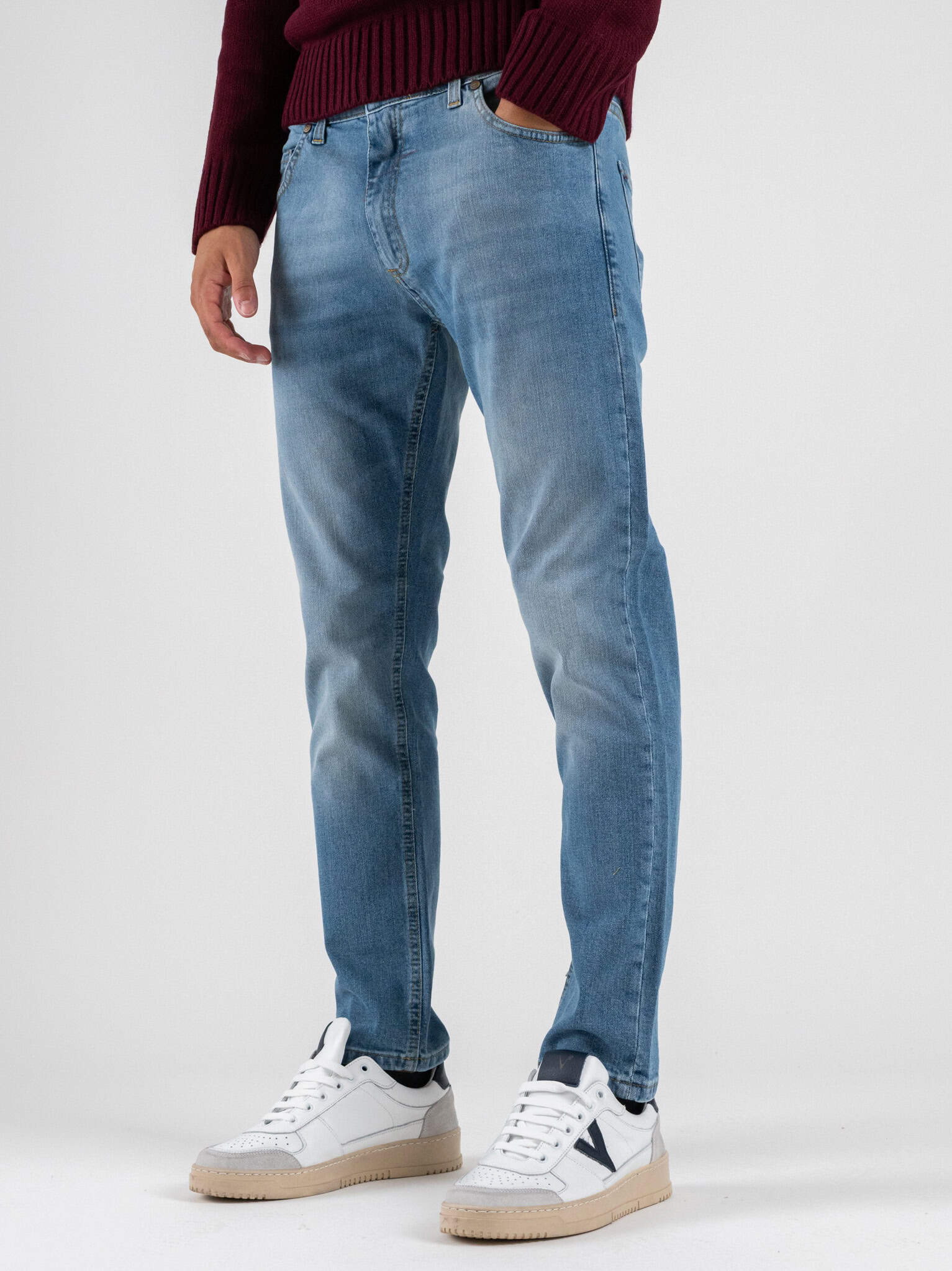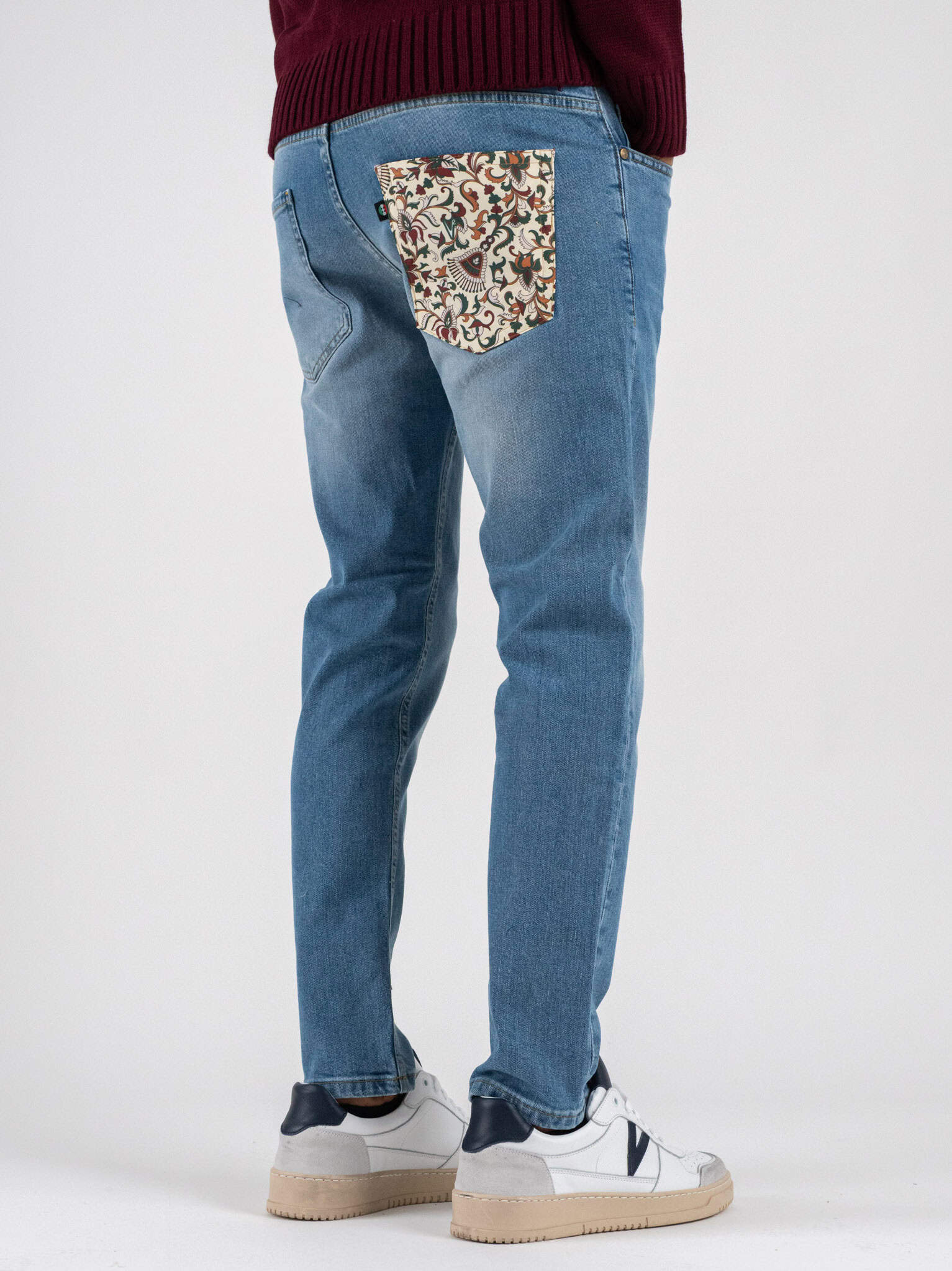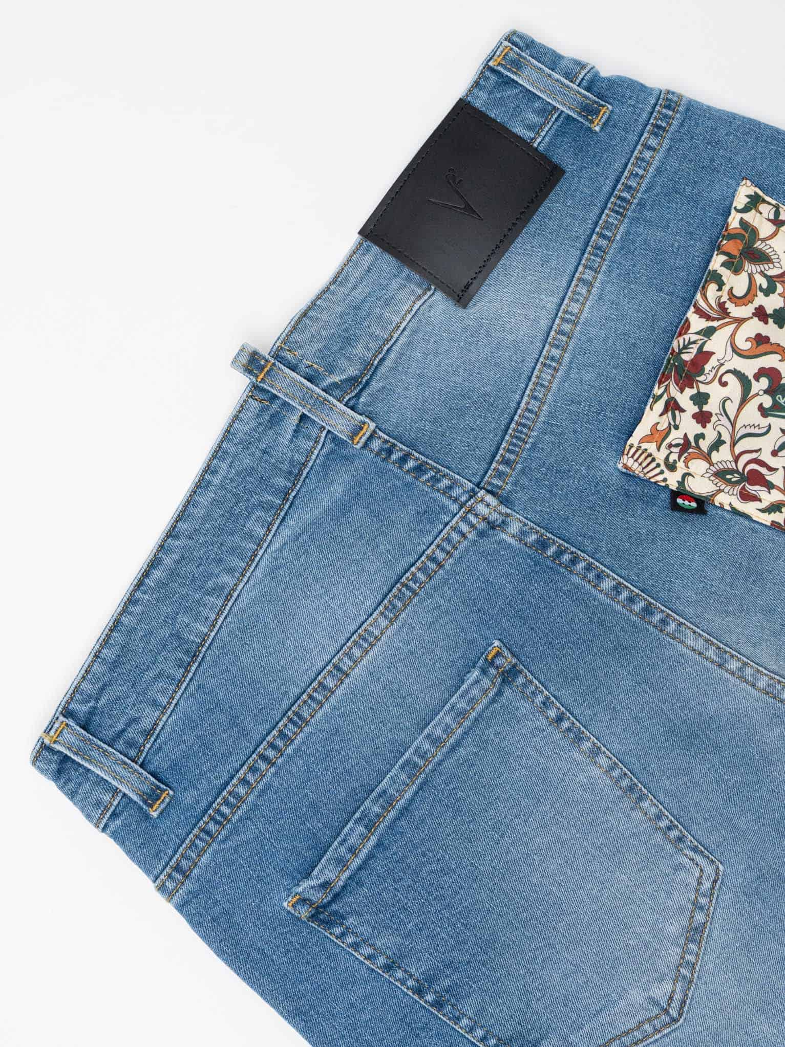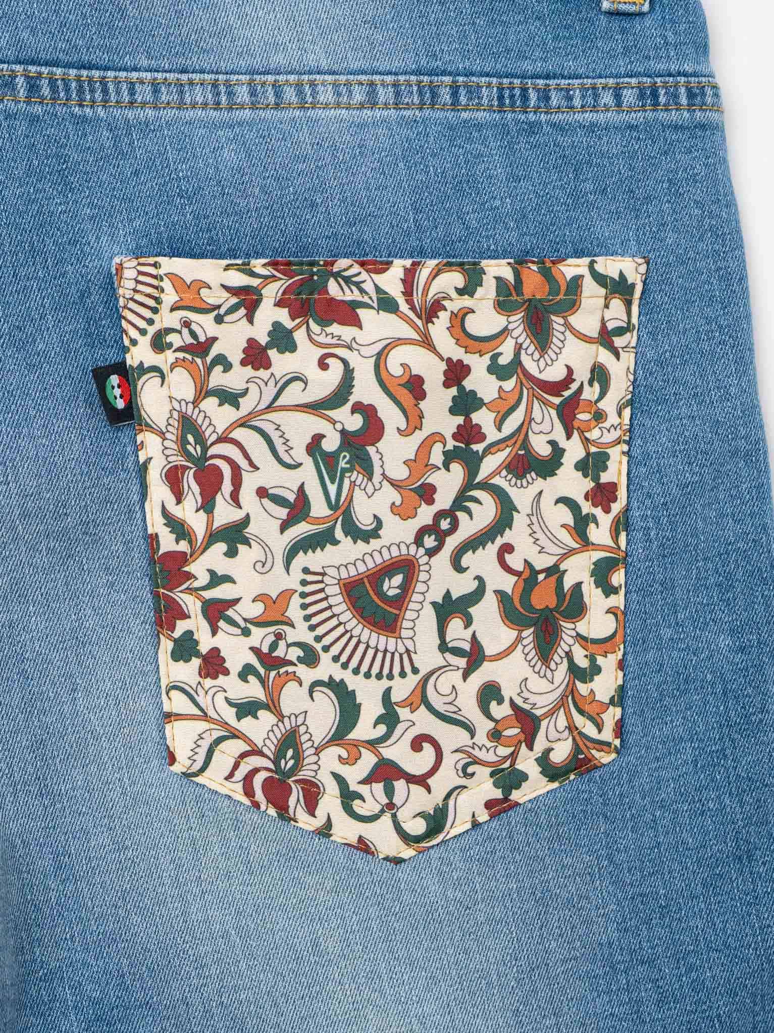 V2 Jeans azzurro slim con patch fiorata sulla tasca posteriore NEW YORK Blu Denim