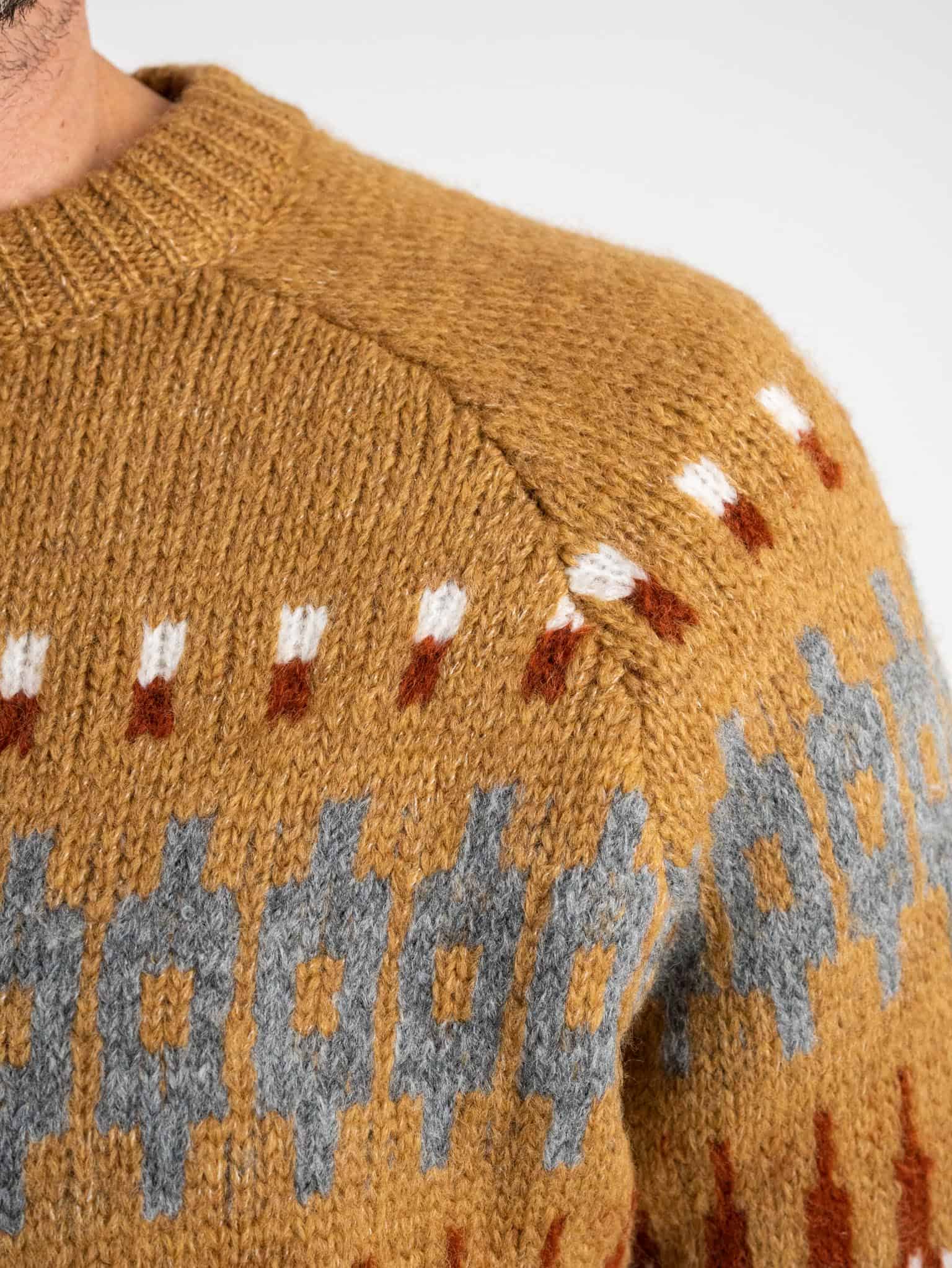 BERNA Maglione girocollo bicolore con greche misto lana 215288 Panna