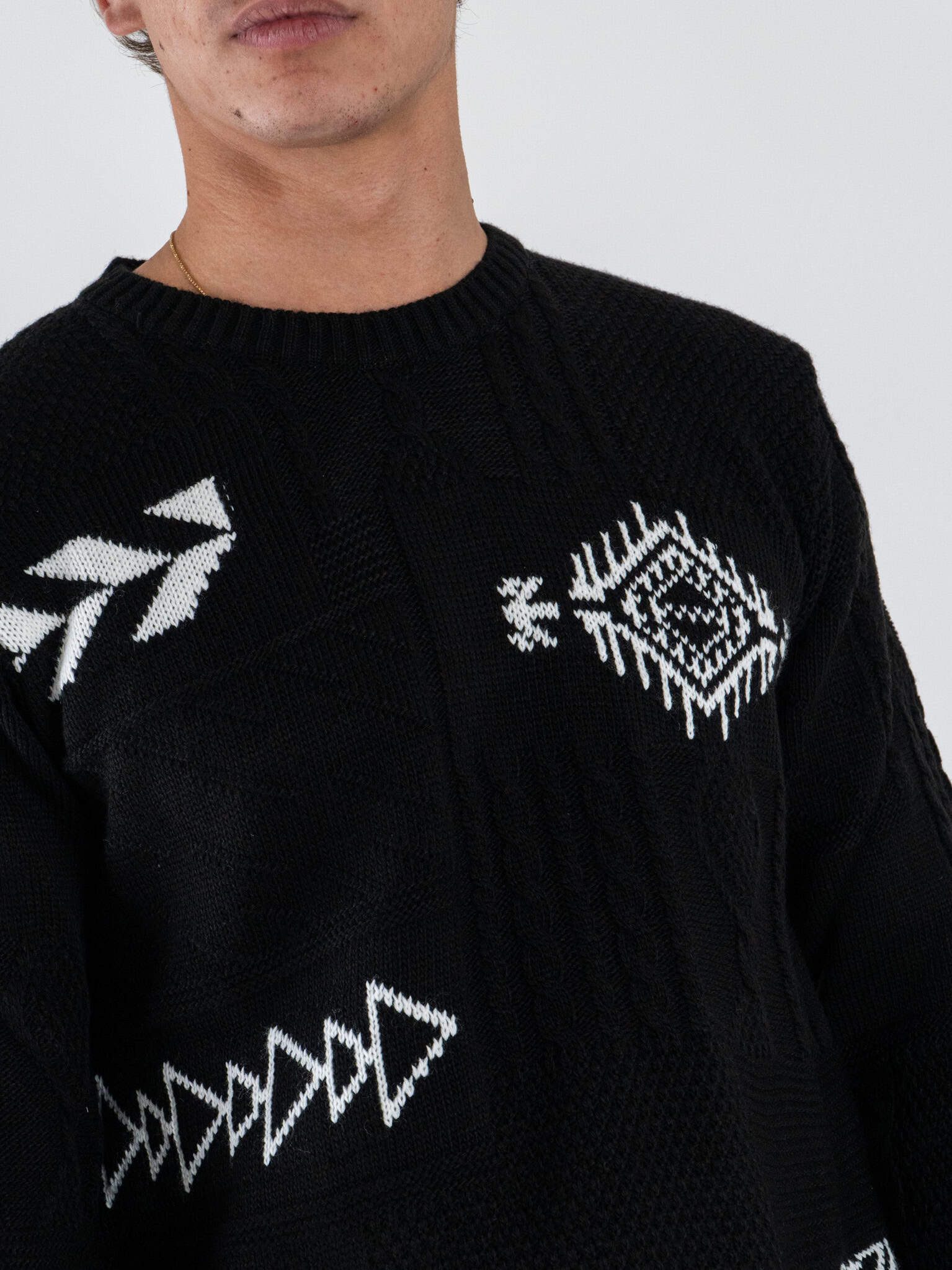 BL11 Maglione regular girocollo intarsio disegni NOICATTARO Nero