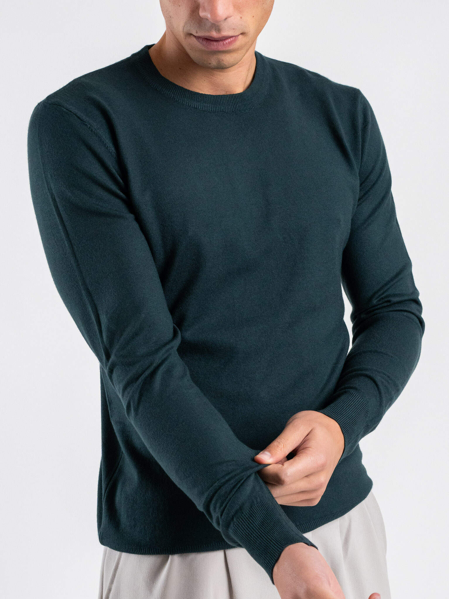 ESTASI Maglione girocollo slim in poliviscosa SINNER Verde Bosco