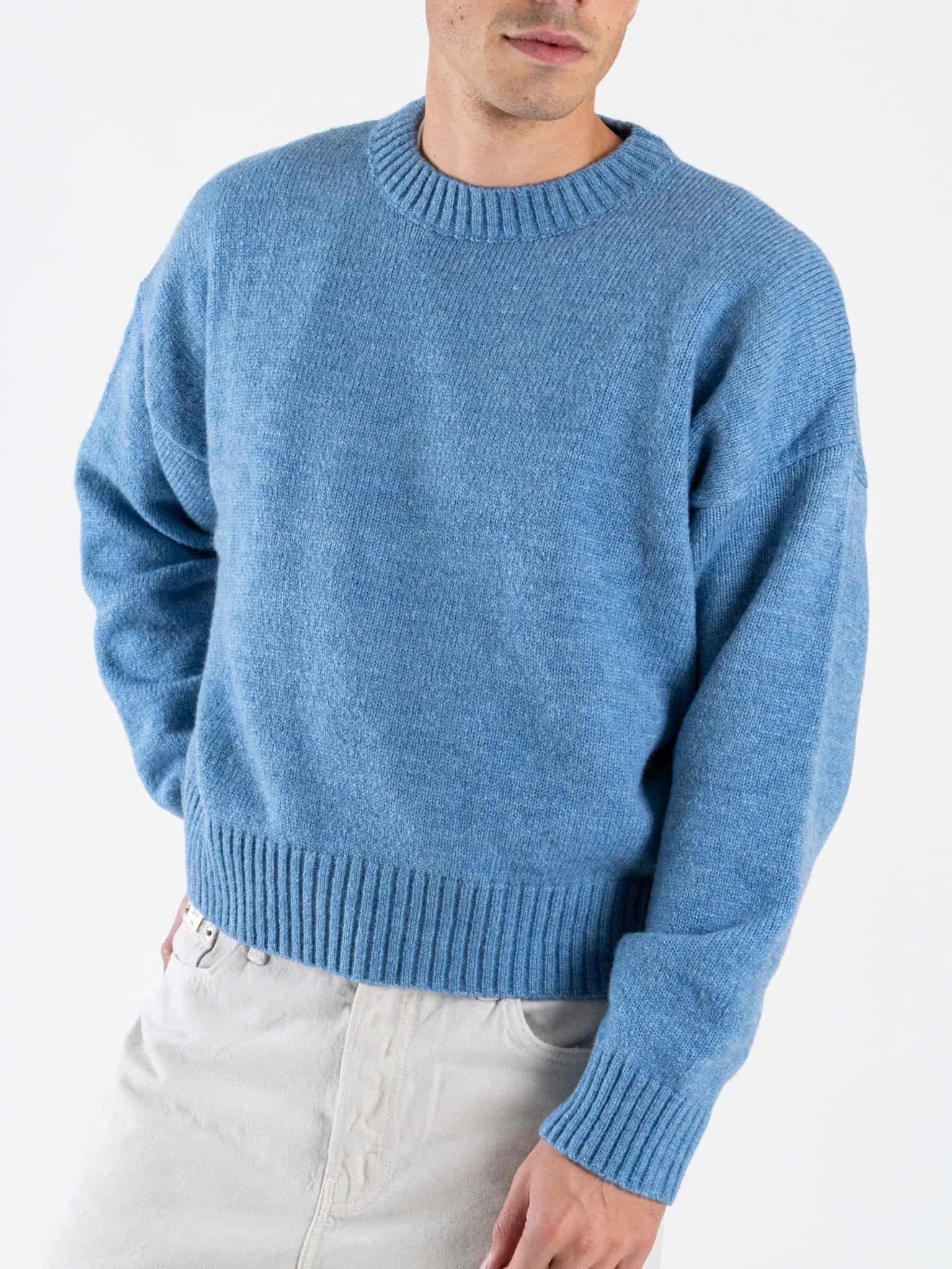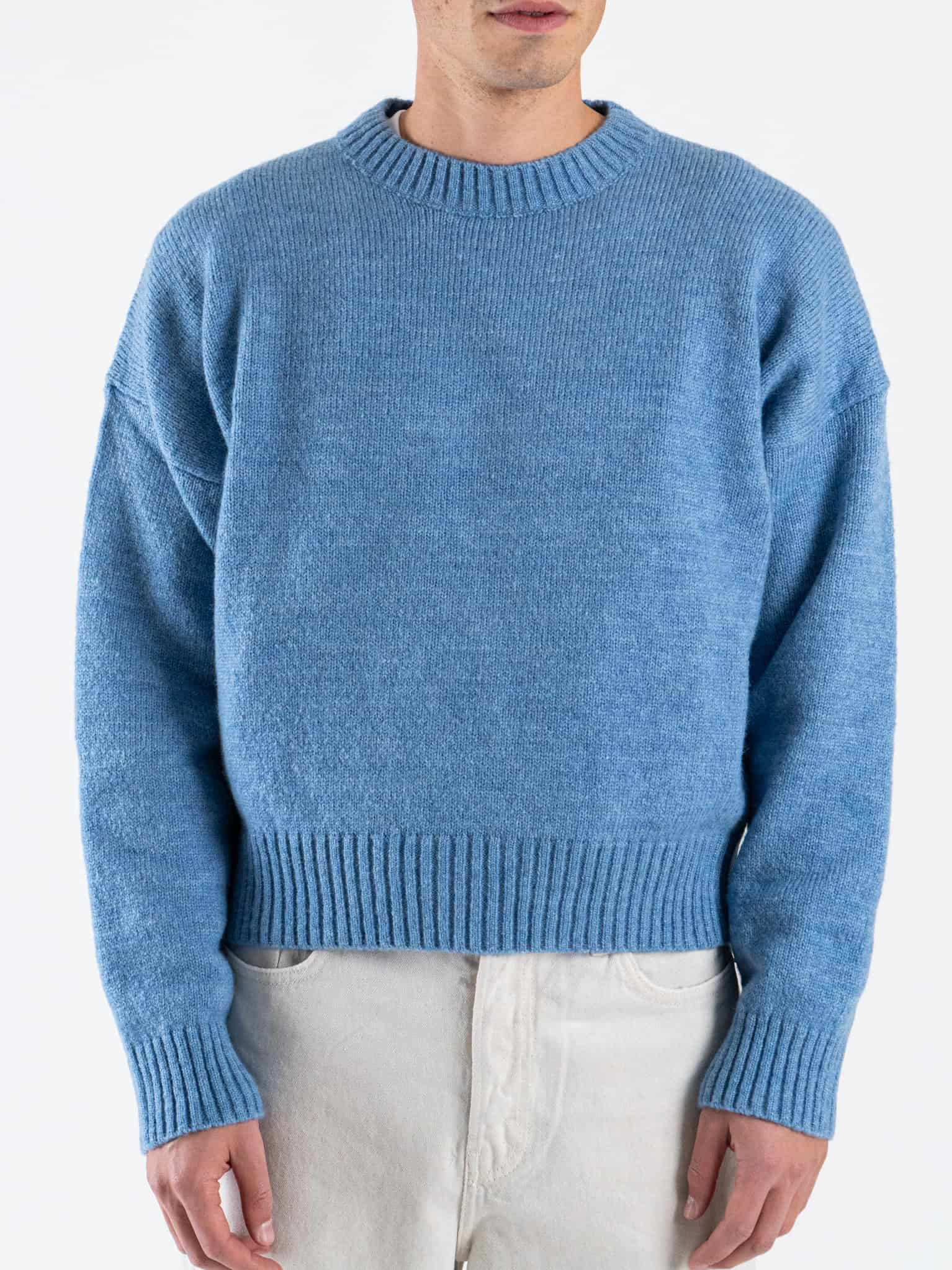 ESTASI Maglione girocollo crop misto lana FEDERER Cielo