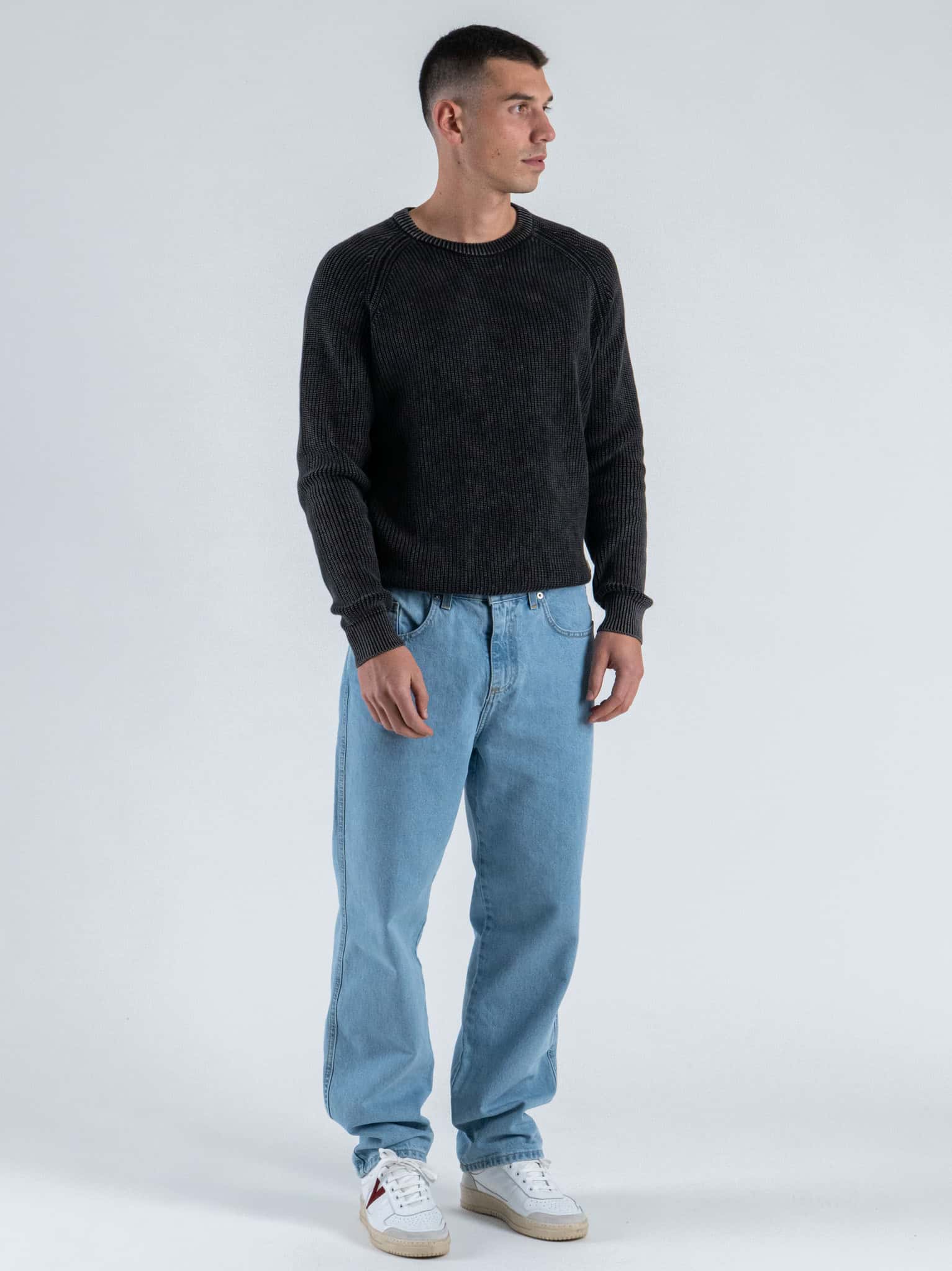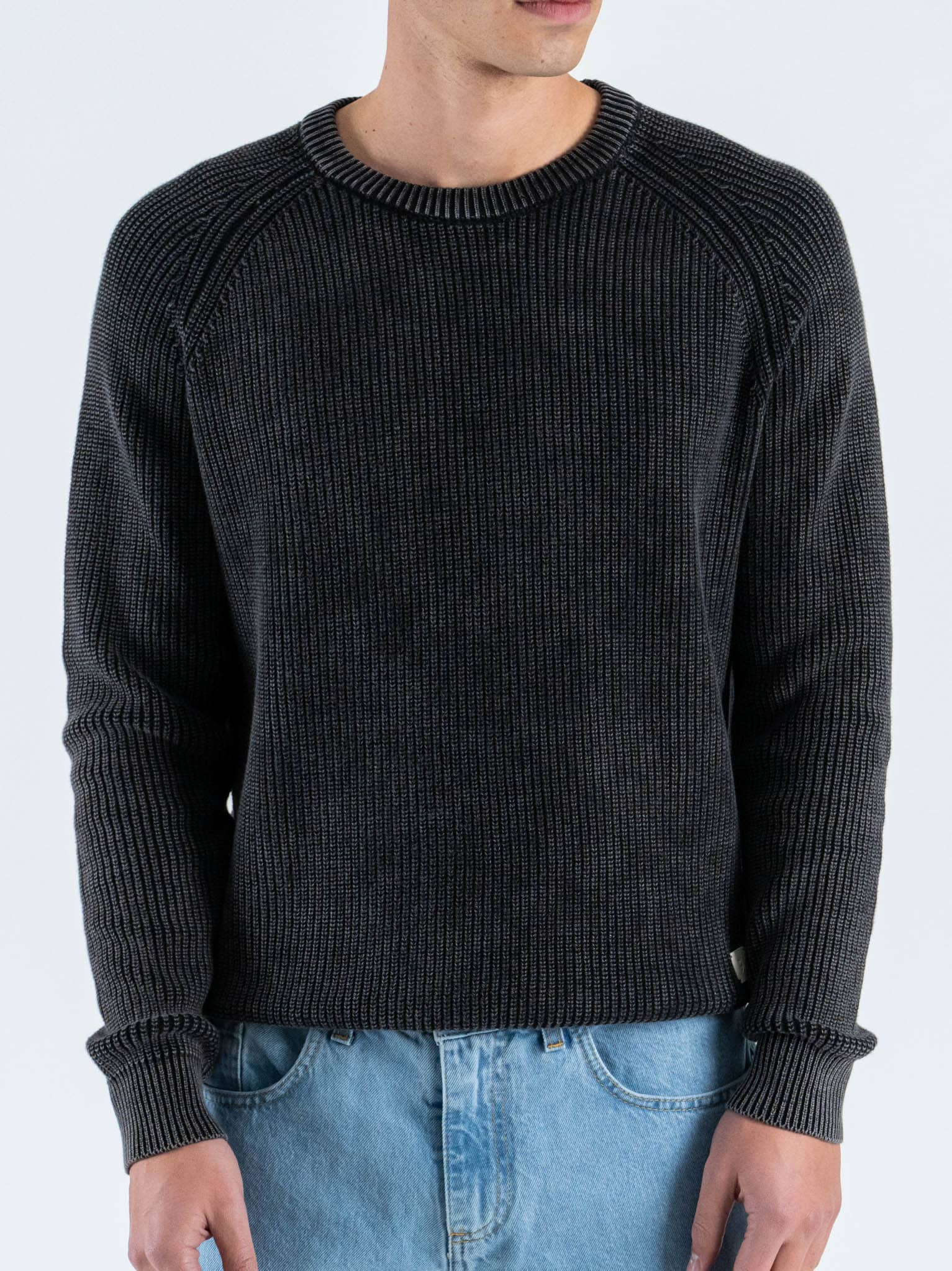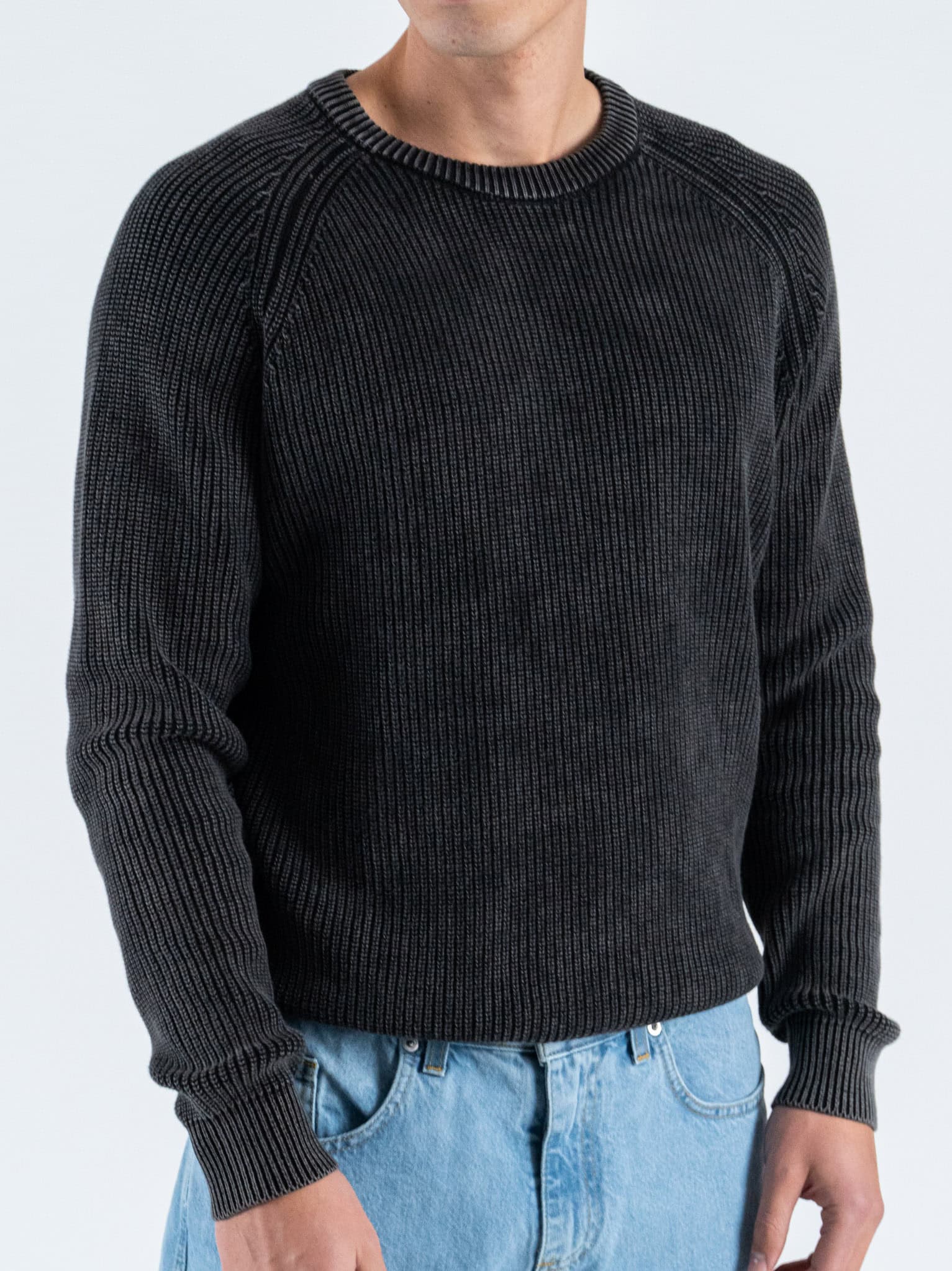 GIANNI LUPO Maglione girocollo oversize in cotone a costa inglese GL35262 Black