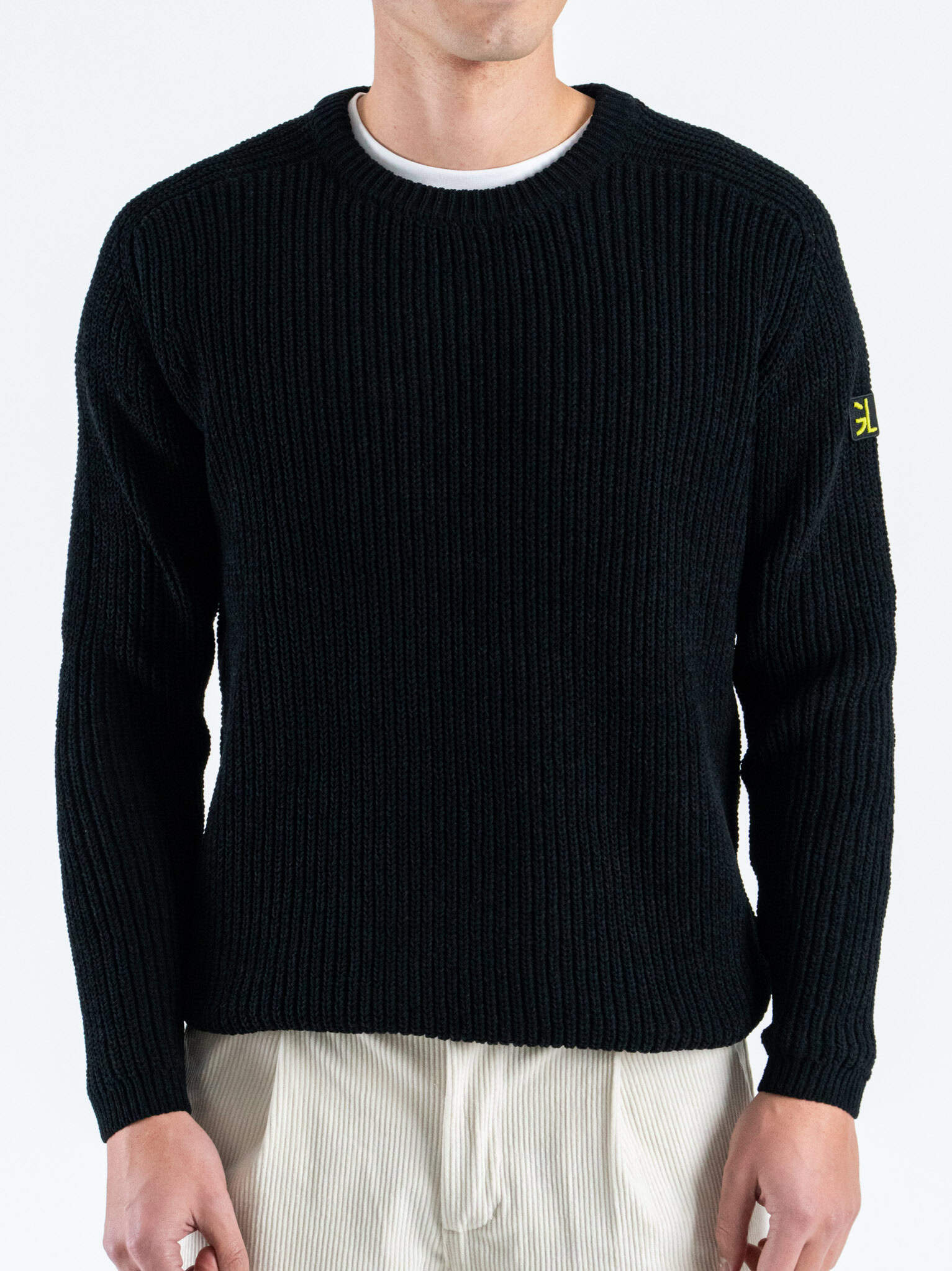 GIANNI LUPO Maglione regular girocollo con toppe sulle maniche GL35240 Black