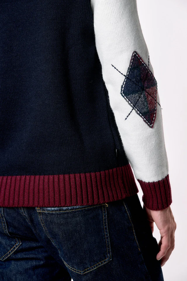 V2 Maglione regular misto lana College con V e Toppe ricamate in tessuto MACOLVBL