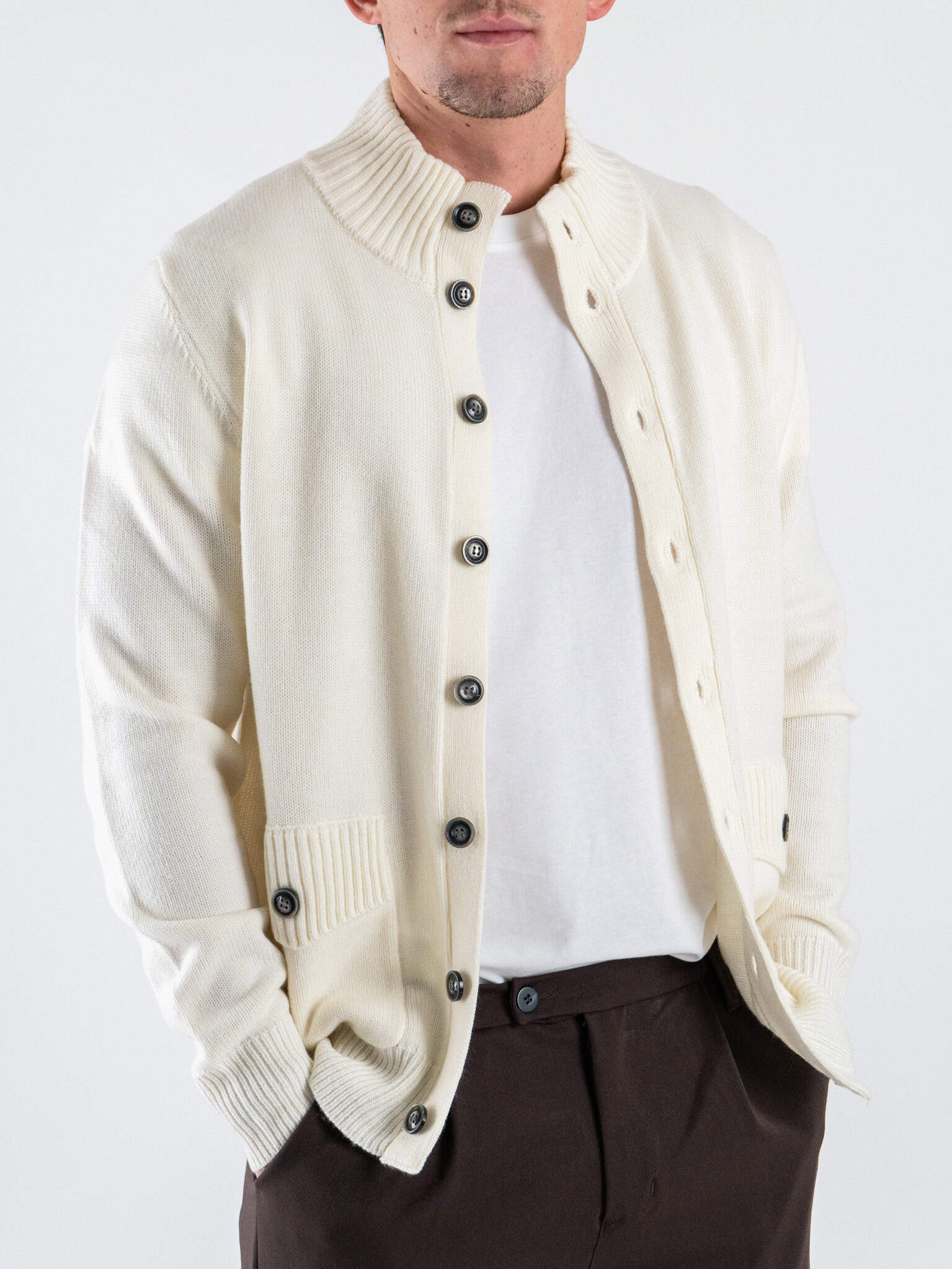 Questo cardigan GIANNI LUPO in misto lana propone un fit regular equilibrato che garantisce comfort e una portabilità quotidiana. Il colore panna dona luminosità e si abbina con facilità a palette neutre o toni più intensi. La composizione in misto lana assicura calore e morbidezza, rendendo il capo adatto alle giornate fresche. I bottoni frontali aggiungono praticità e permettono di modulare l’apertura in base allo stile desiderato. Le tasche frontali offrono funzionalità senza appesantire il design, mantenendo un’estetica pulita e moderna. È un cardigan ideale per look casual curati o per completare outfit più essenziali con un tocco elegante.