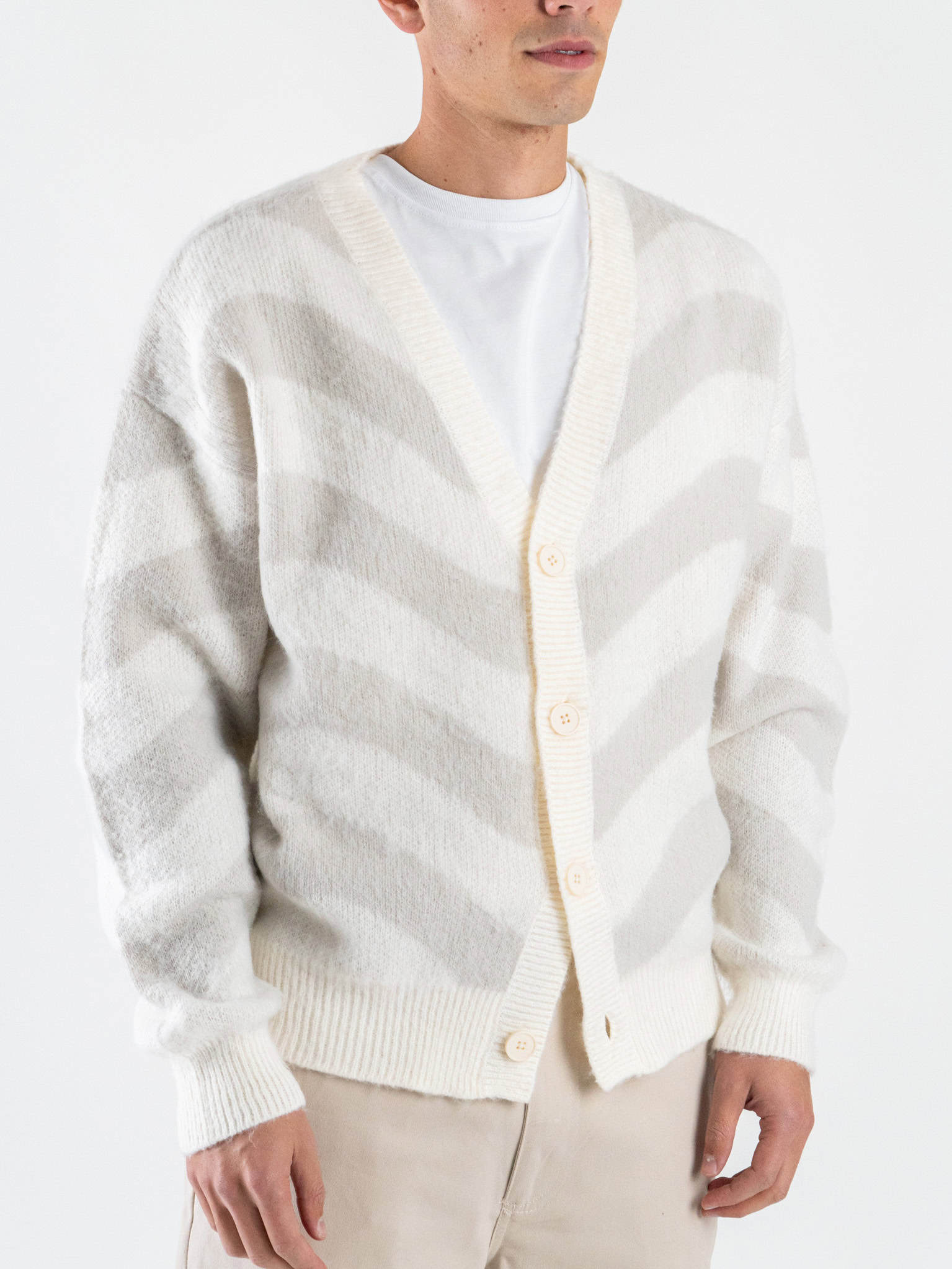 Cardigan over con bottoni e greche 638 White/Silver Grey