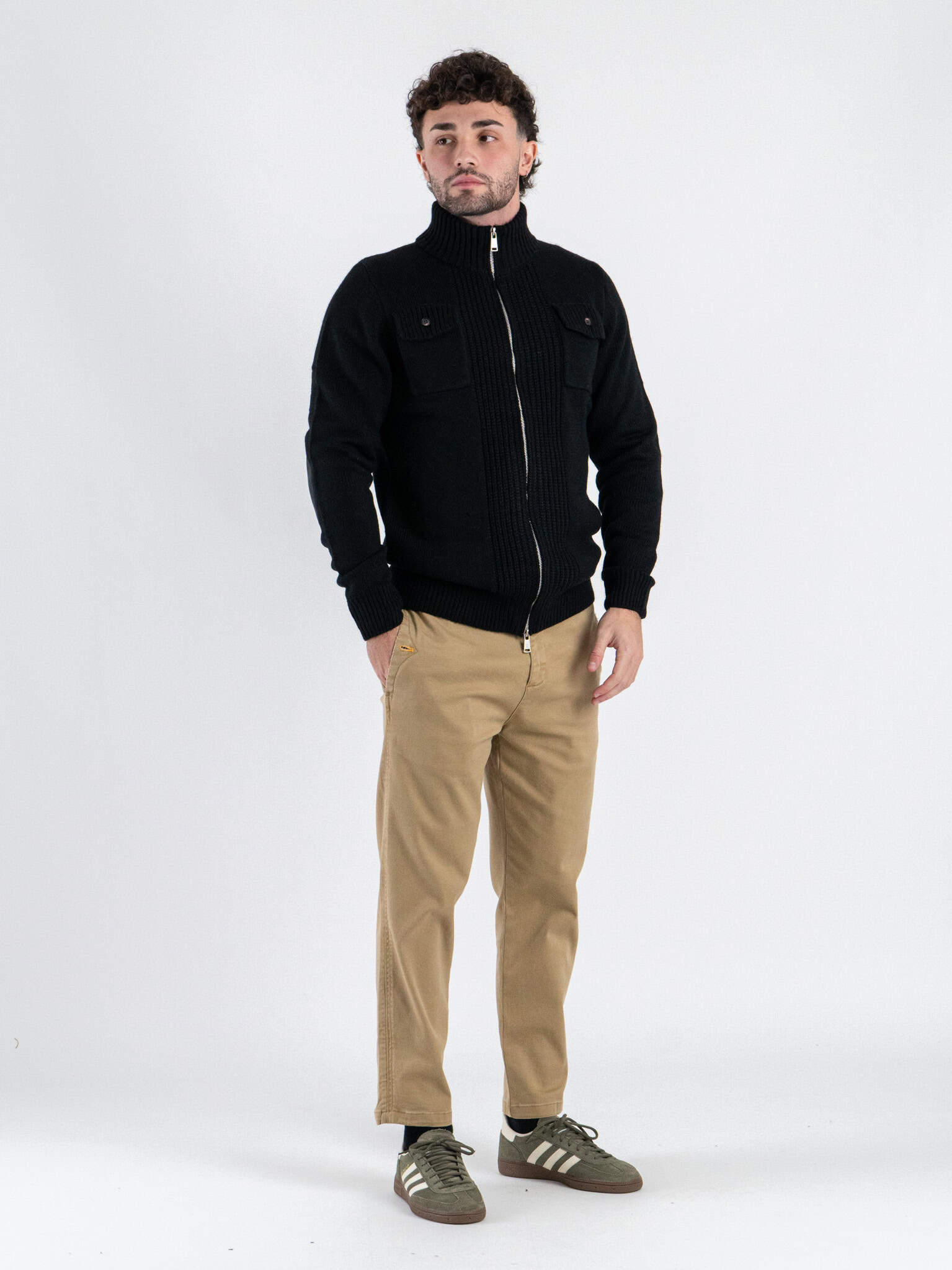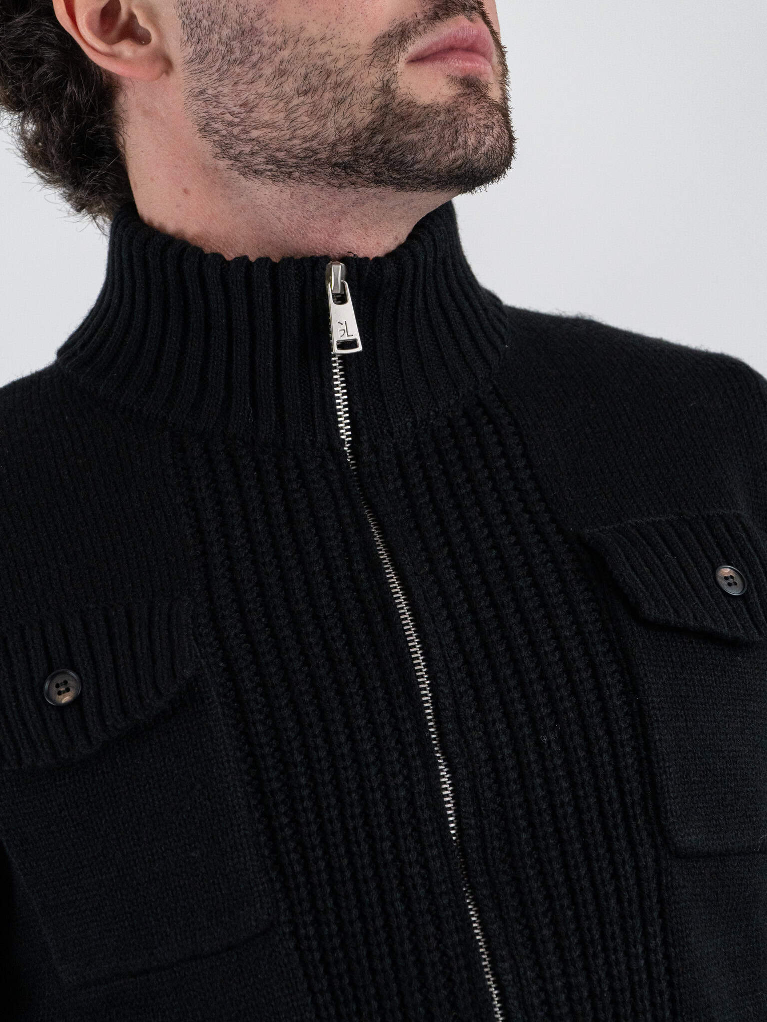 GIANNI LUPO Cardigan con tasche, zip e toppe sulle maniche GL35253 Black