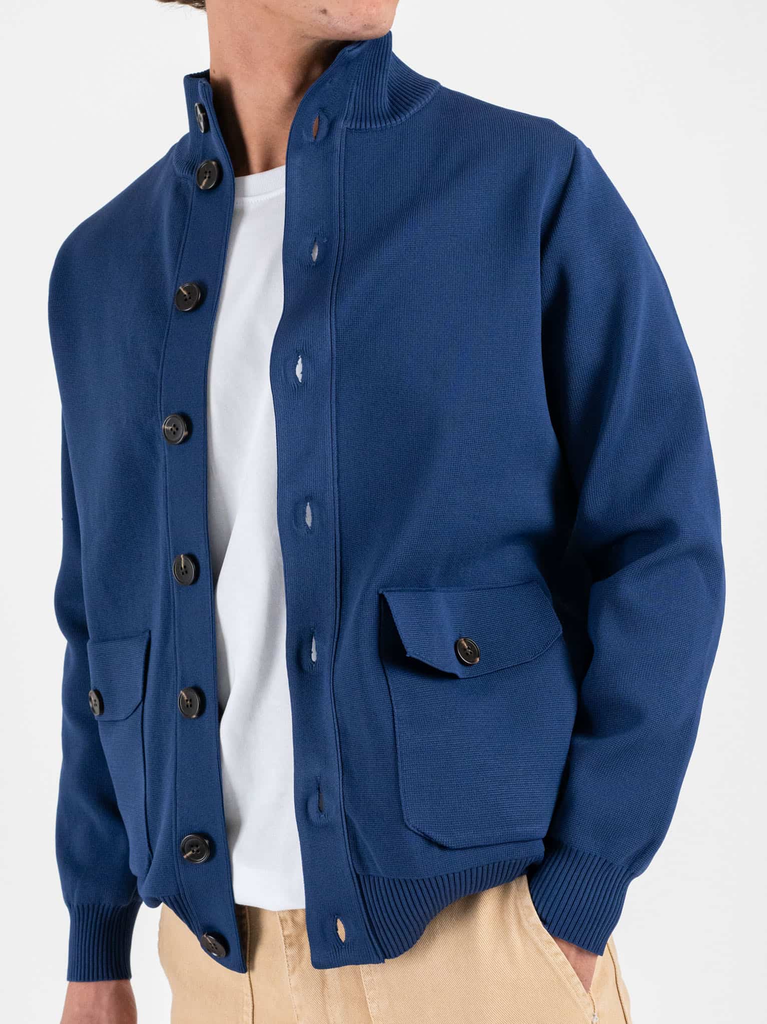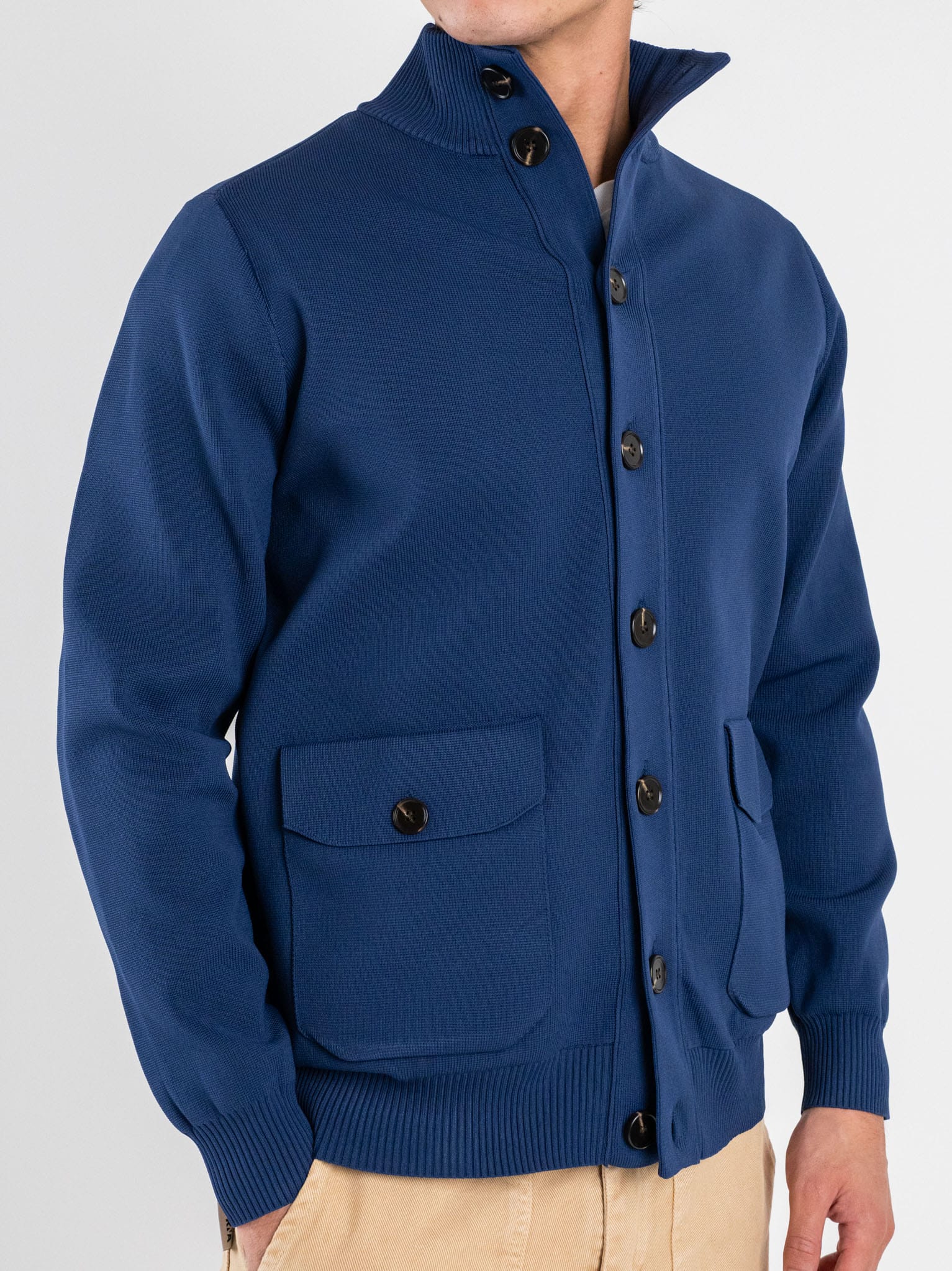 OVER-D Cardigan bottoni e collo alto con tasche a toppa OE1F2W5M91 Blu