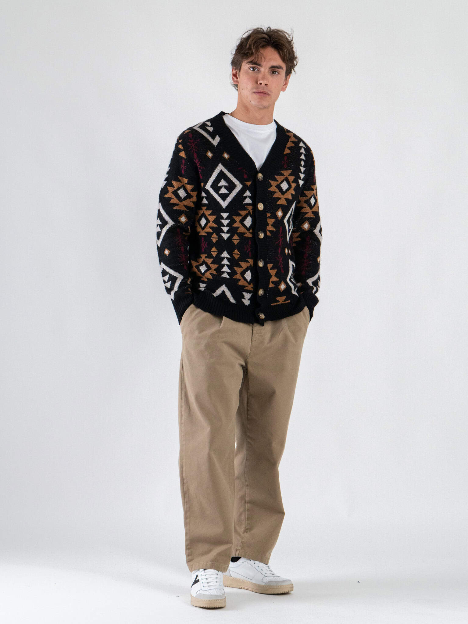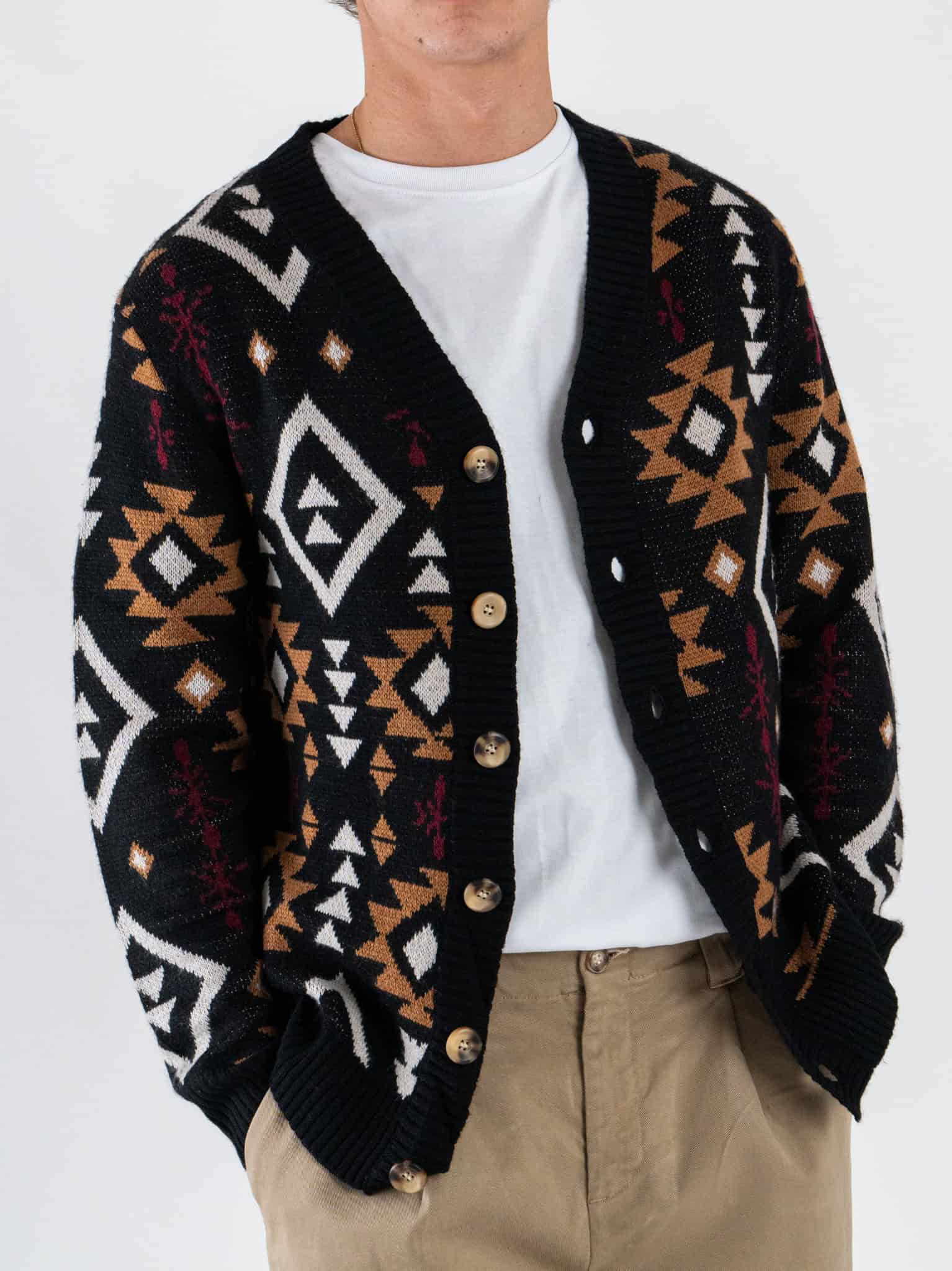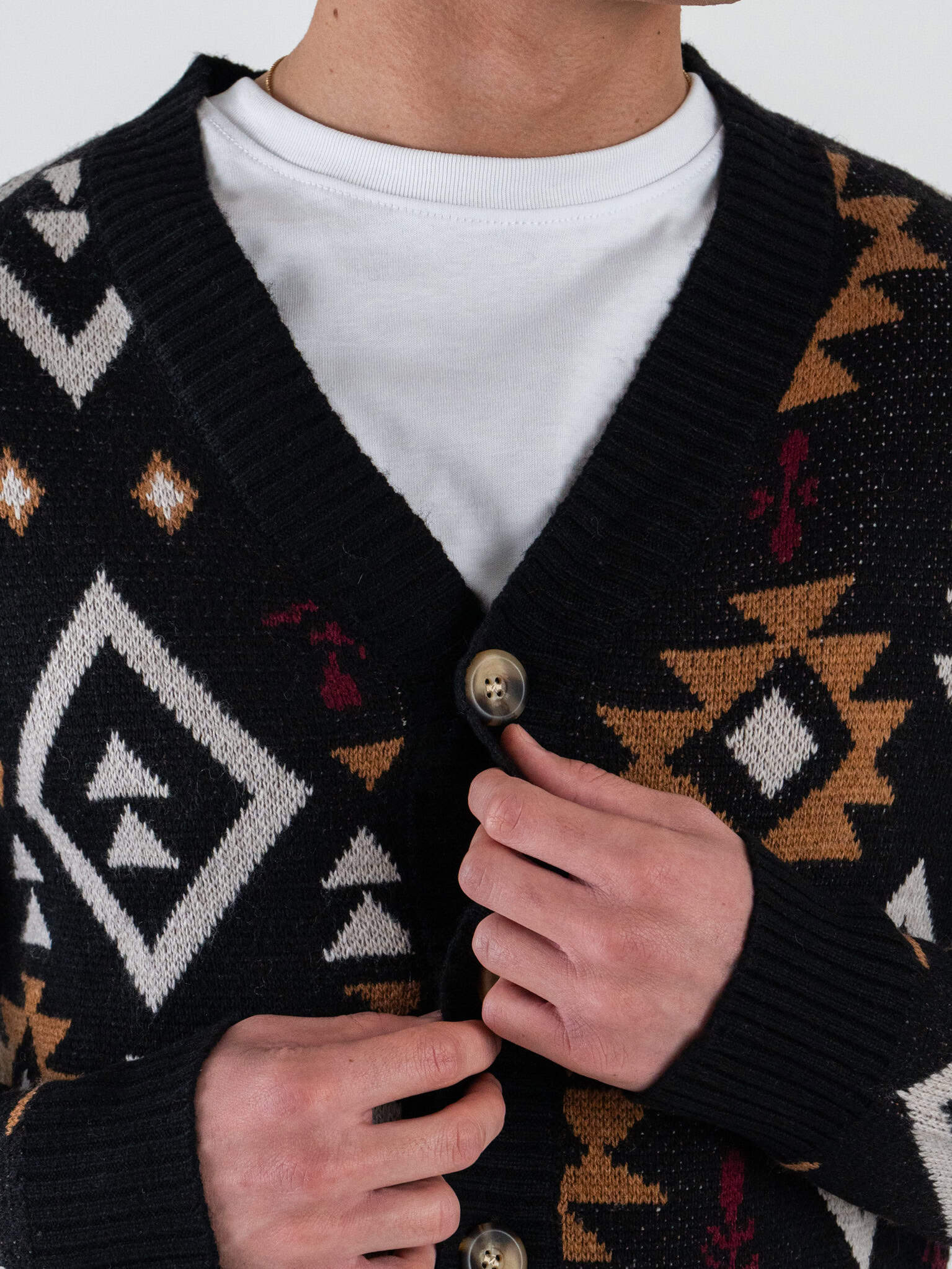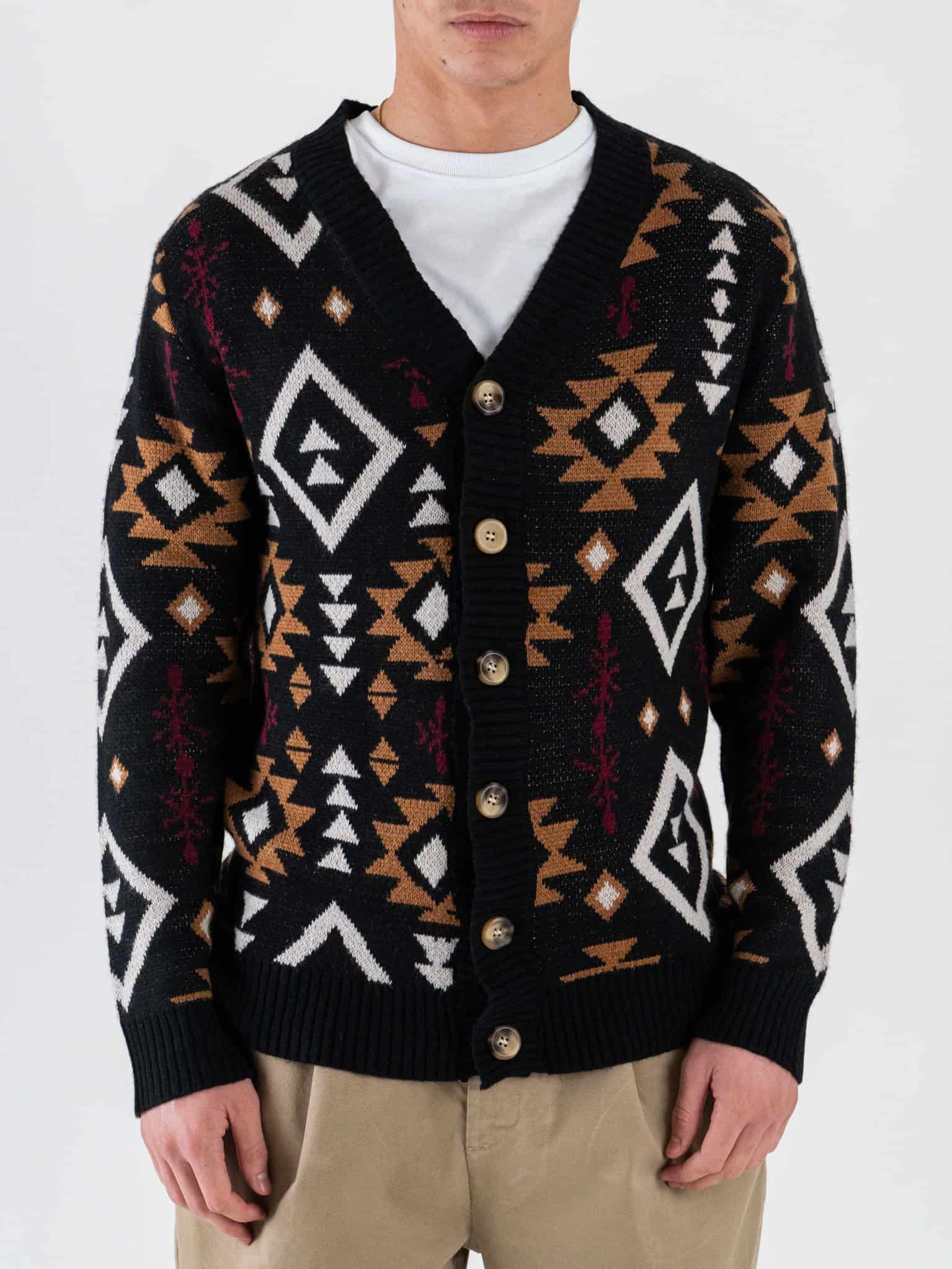TOOCO Cardigan in misto cachemire e lana con bottoni e stampa etnica UXMAL Black