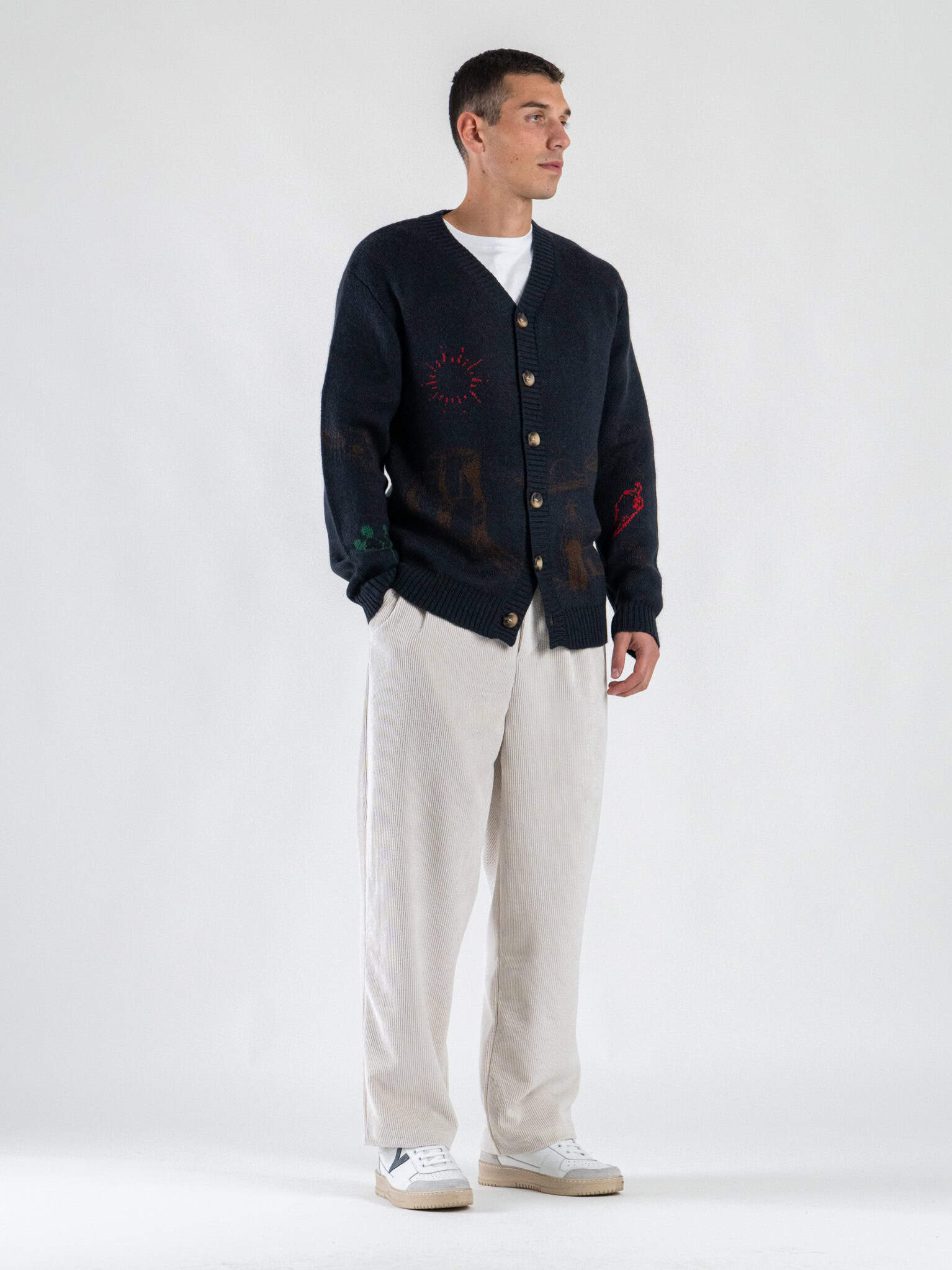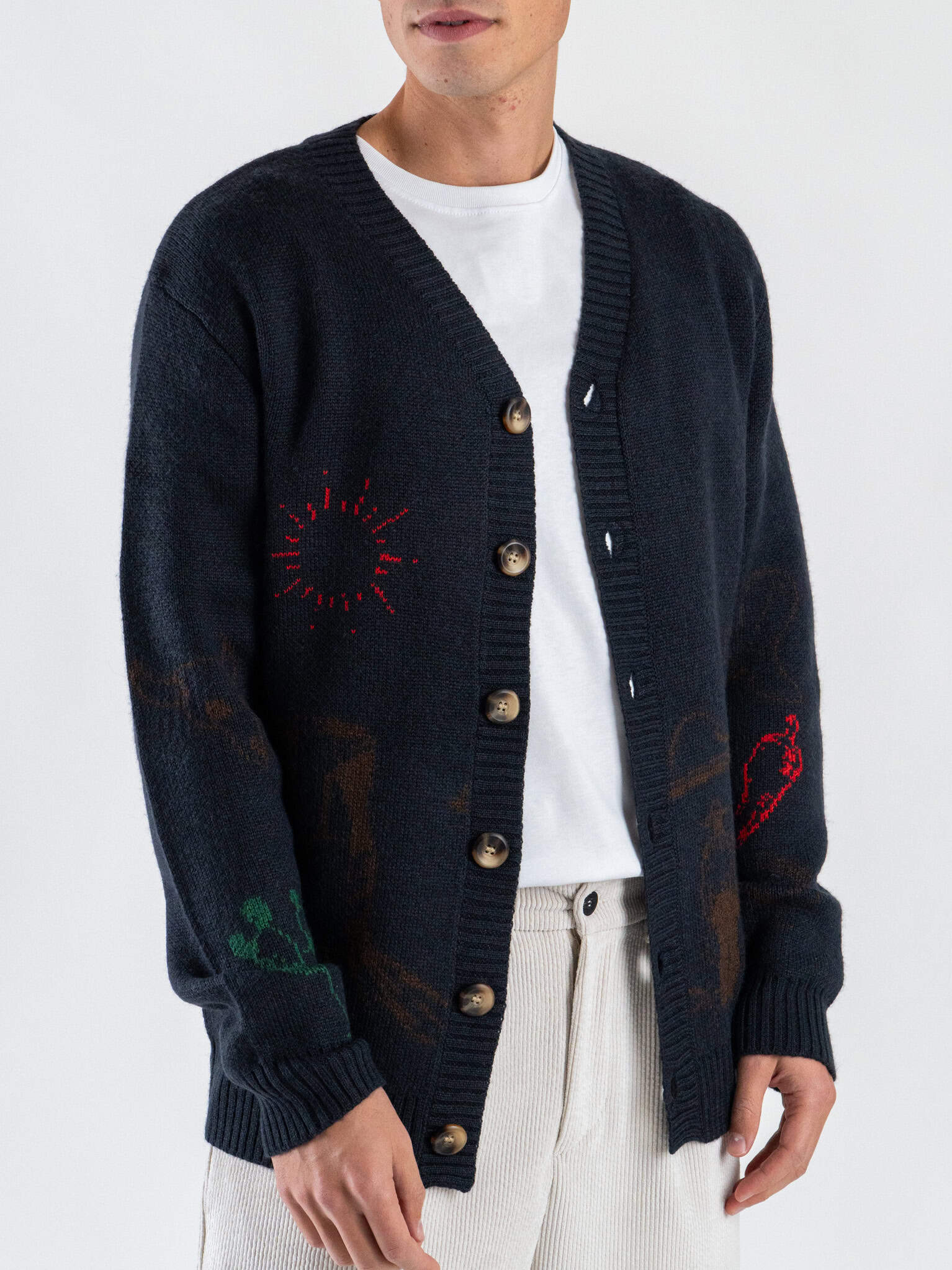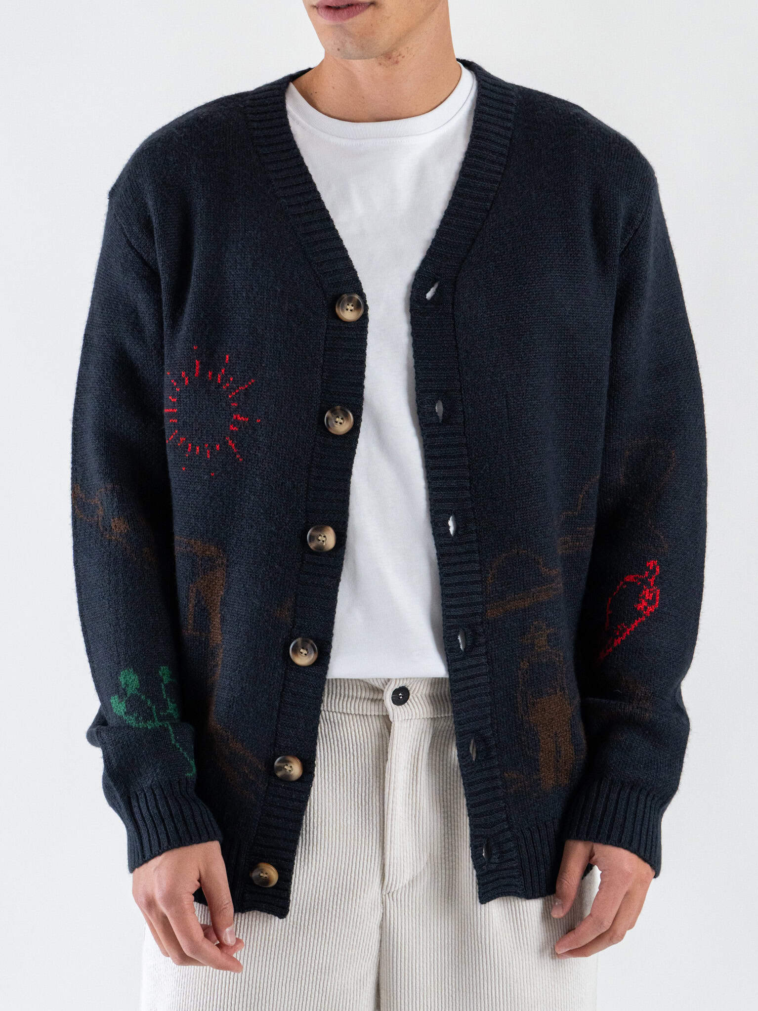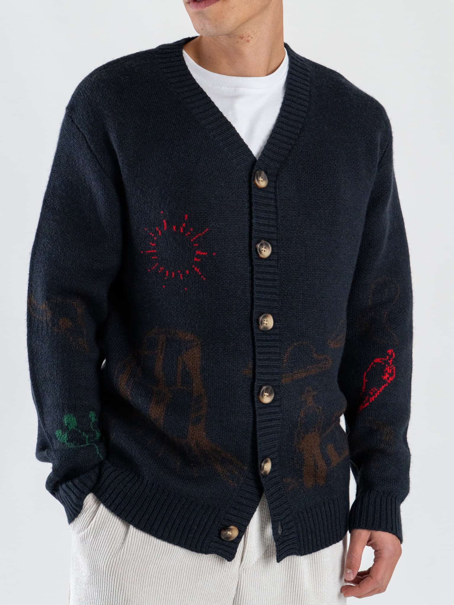 TOOCO Cardigan in misto lana con bottoni e stampa Cowboy Texas MVRS Navy