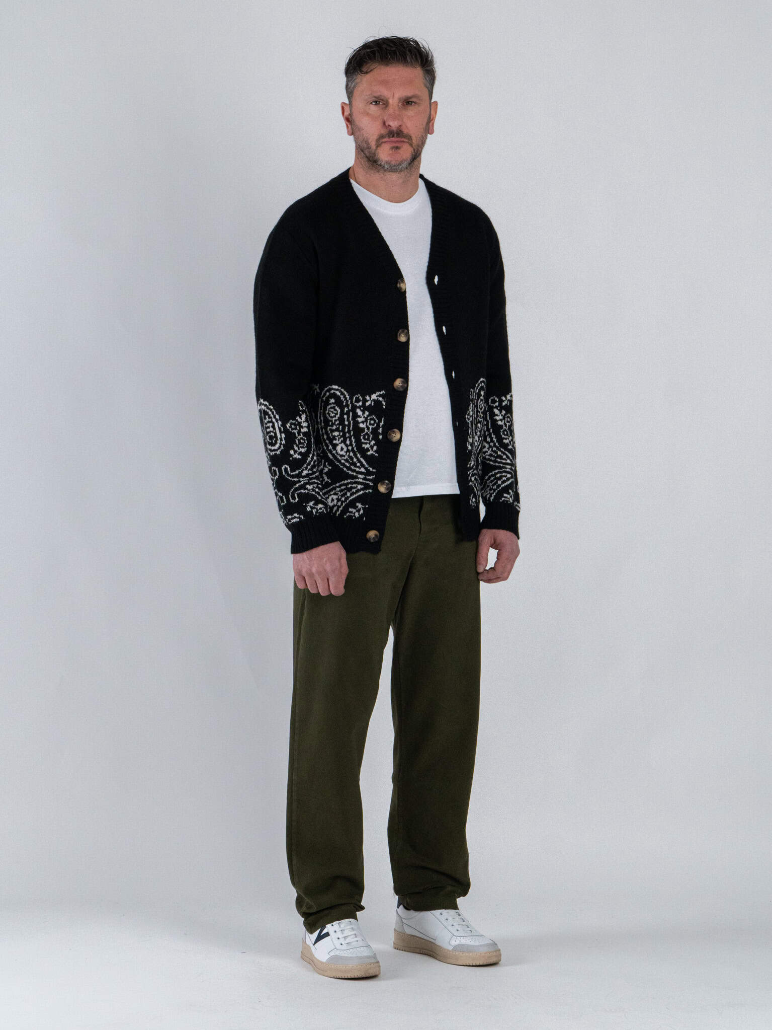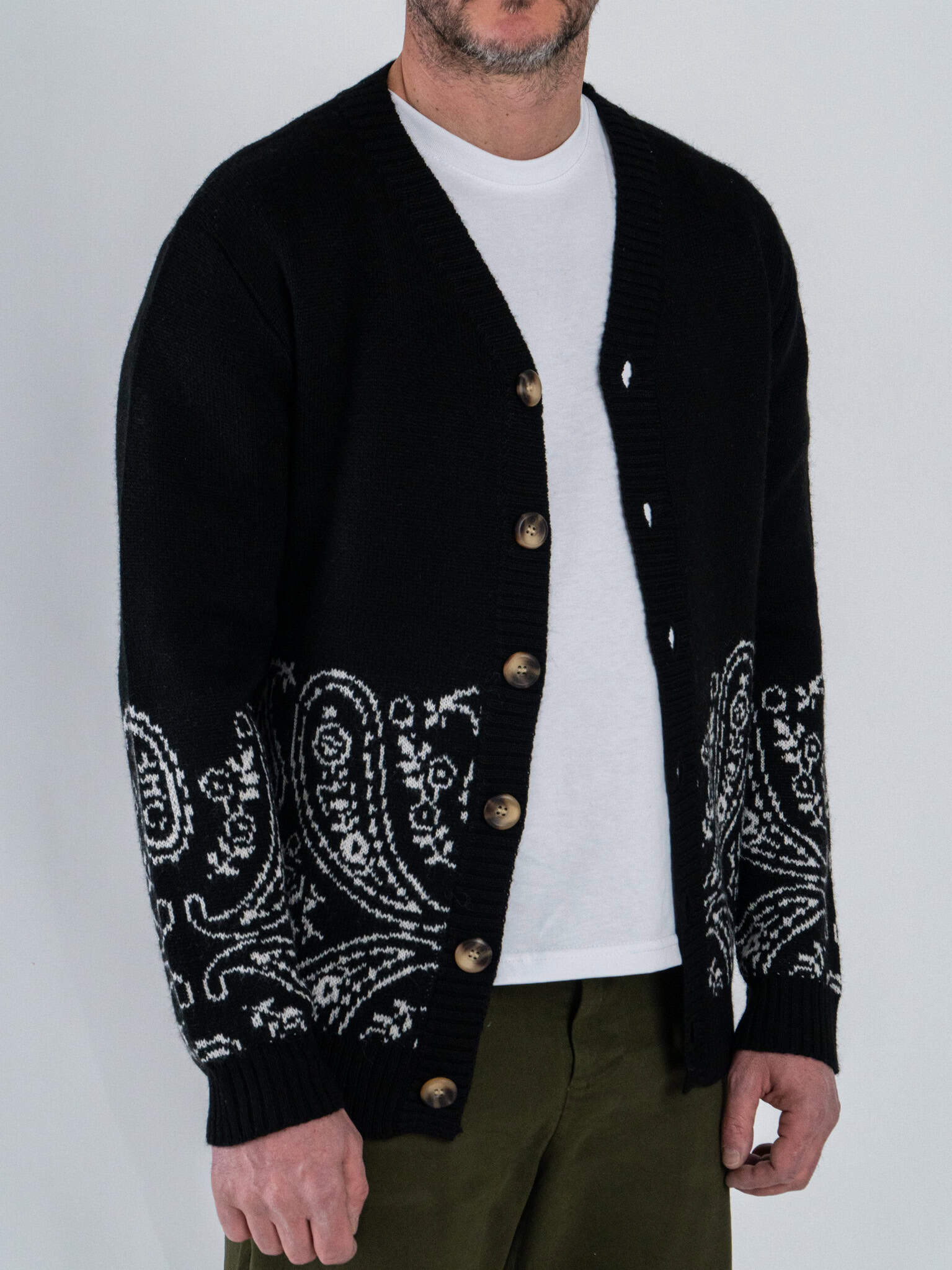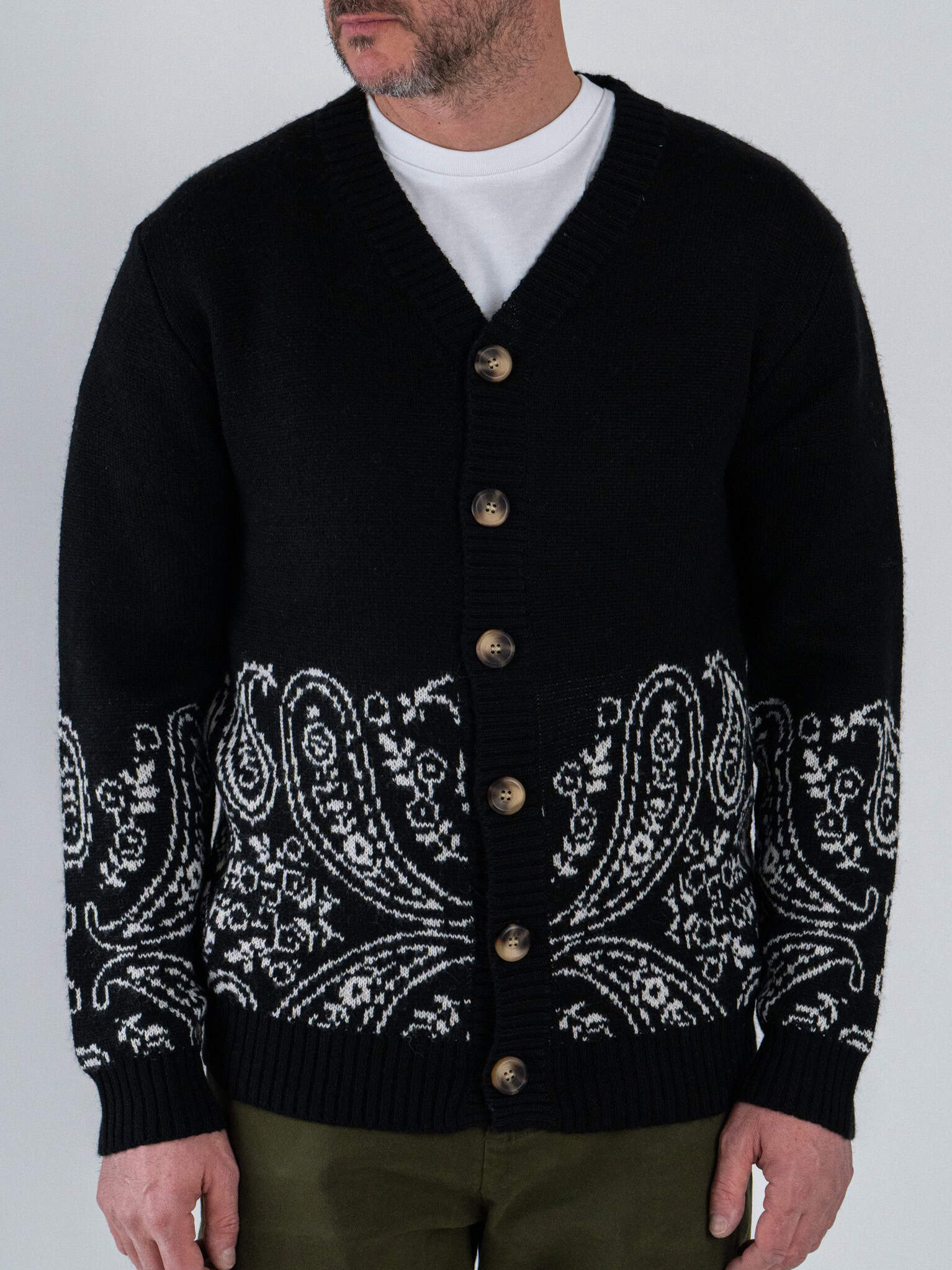 • TOOCO Cardigan regular misto lana con bottoni e stampa bandana MVRS HALFDANA Black