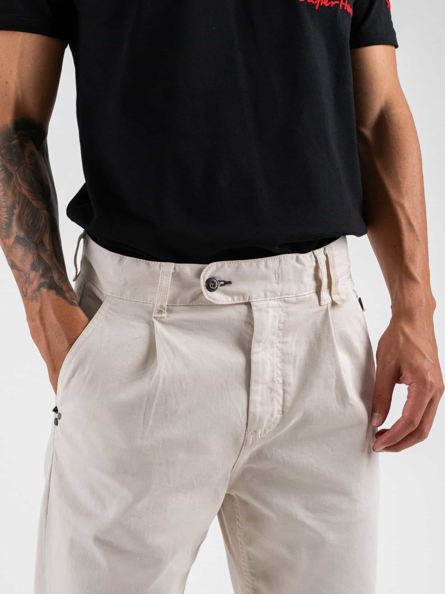 BERNA Pantalone chino cropped morbido con pinces 252103 Panna