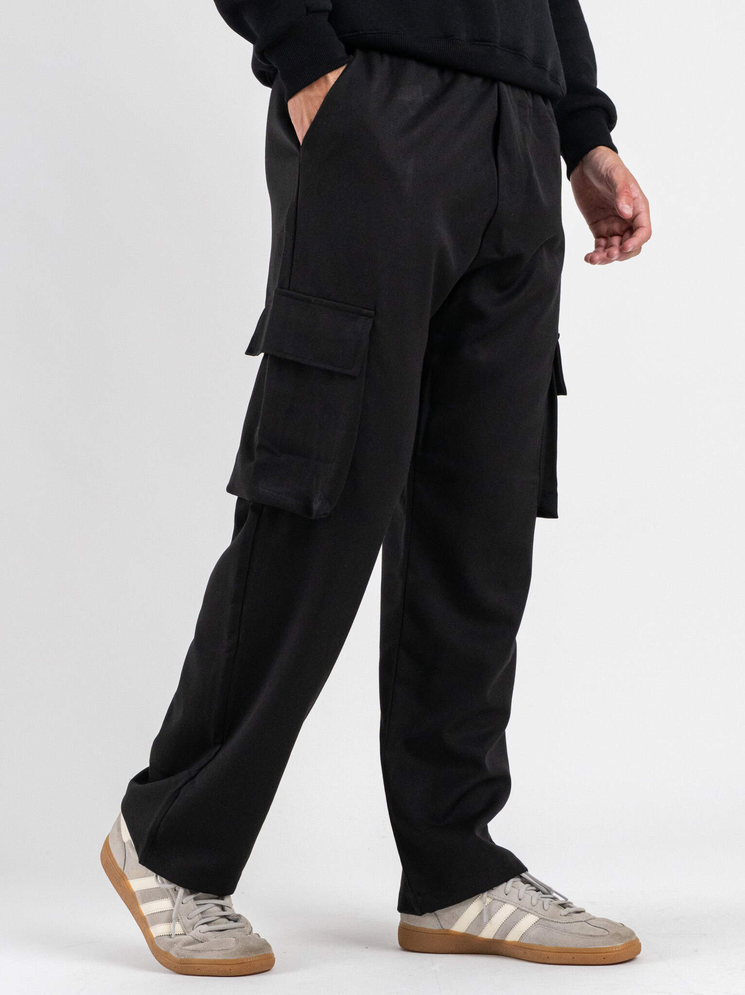 Pantalone a gamba morbida con coulisse in vita e tasconi laterali 3401 Nero