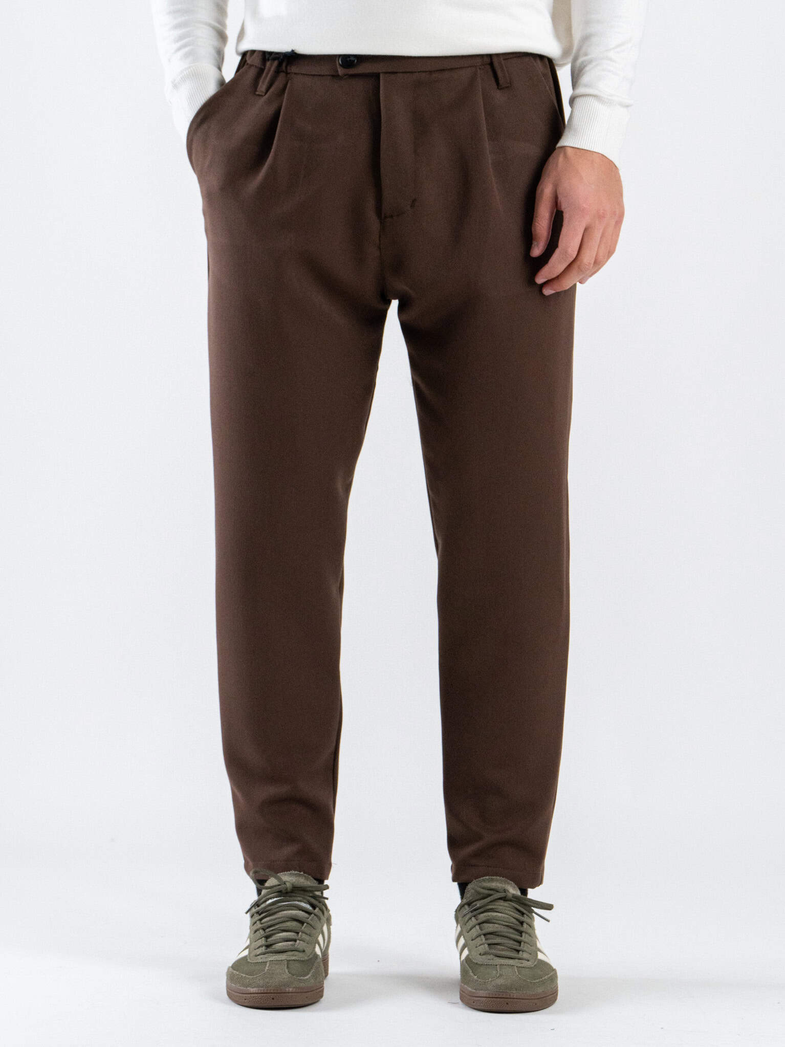 ESTASI Pantalone chinos regular in poliviscosa con coulisse e bottone in vita MBAPPE’ INV Cioccolato