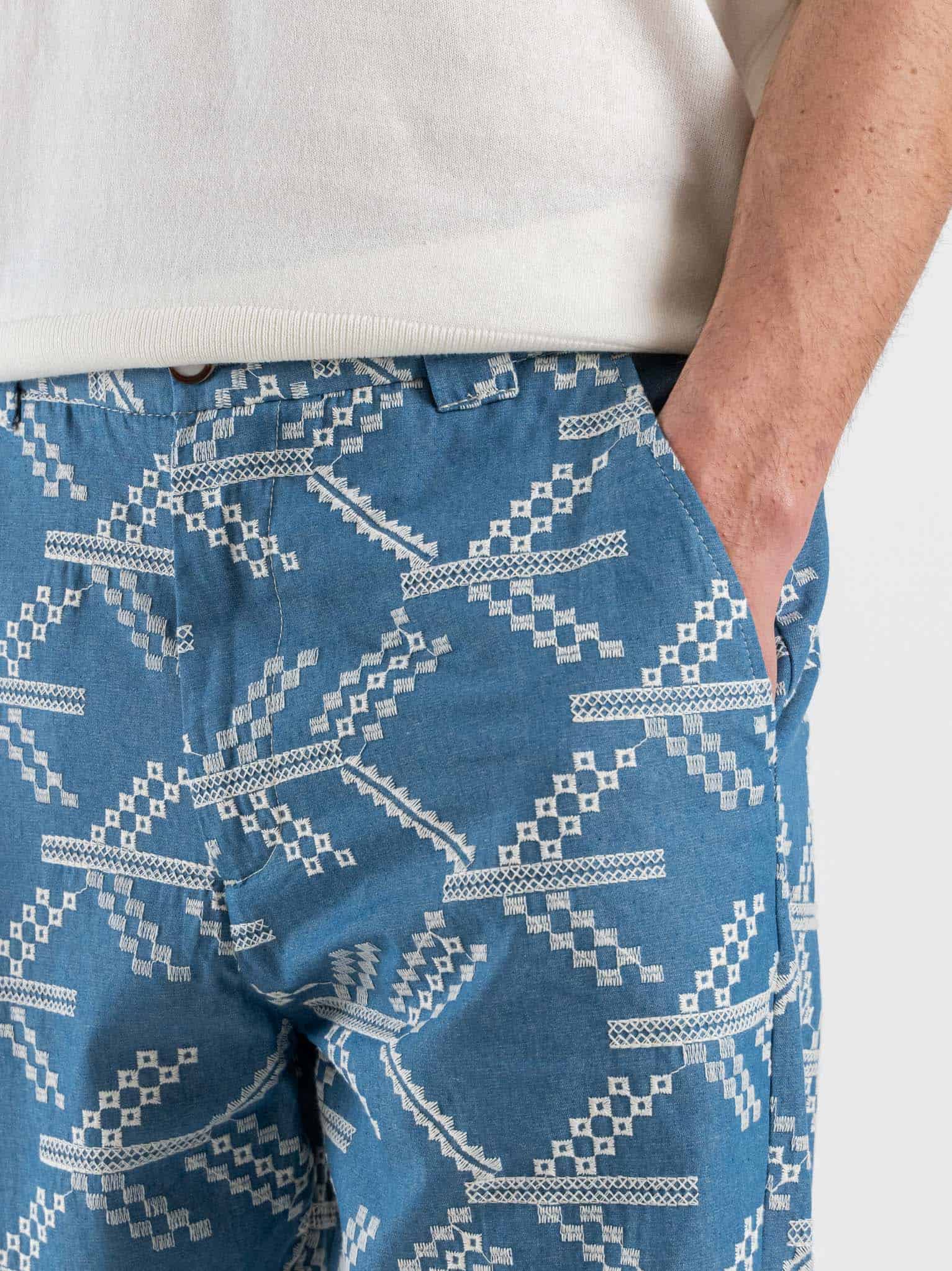 Perfetto per il tempo libero, per look urbani o outfit estivi, questo pantalone unisce comfort, stile e personalità. Indossarlo trasmette modernità, freschezza e un’eleganza casual contemporanea.