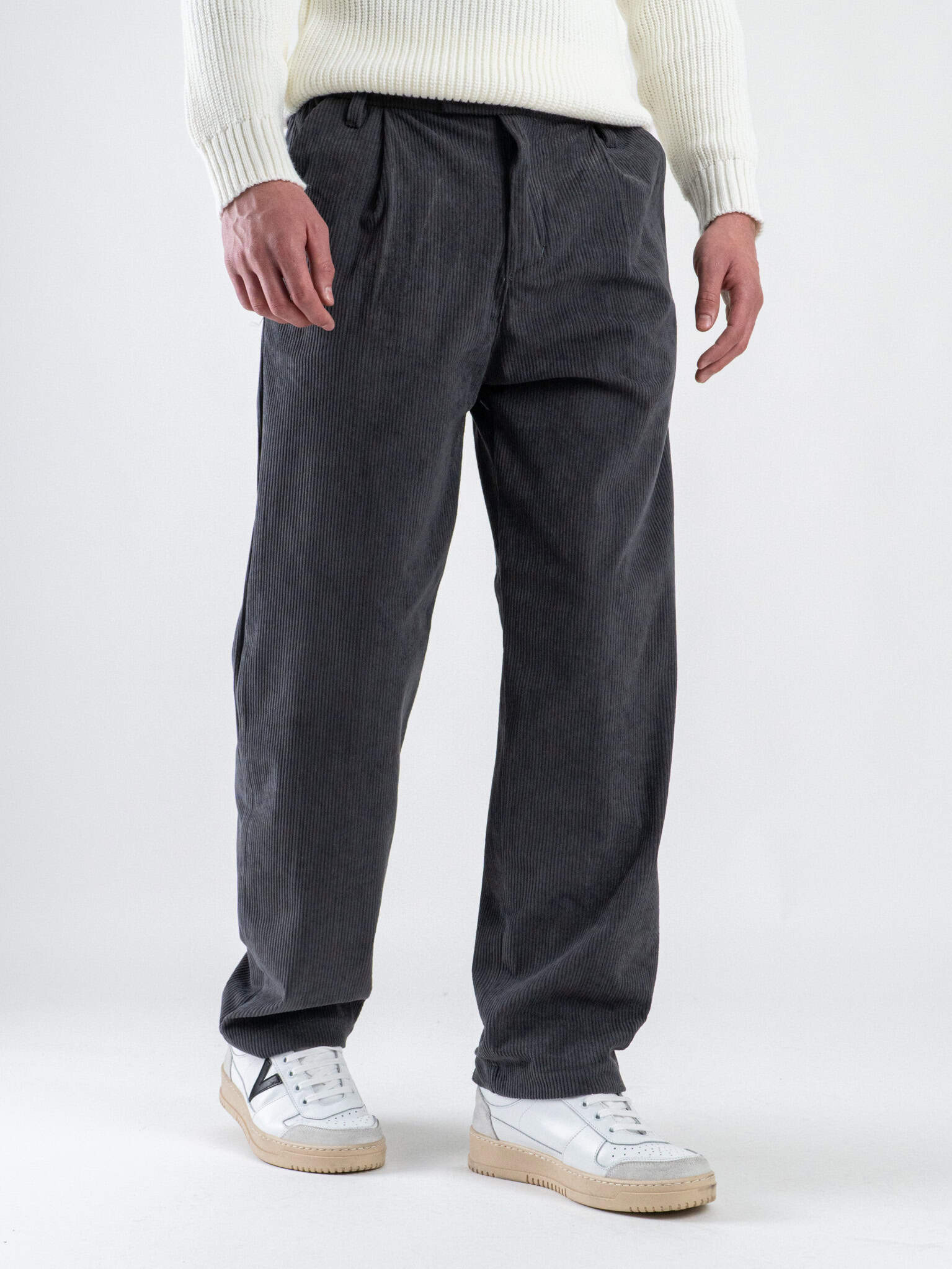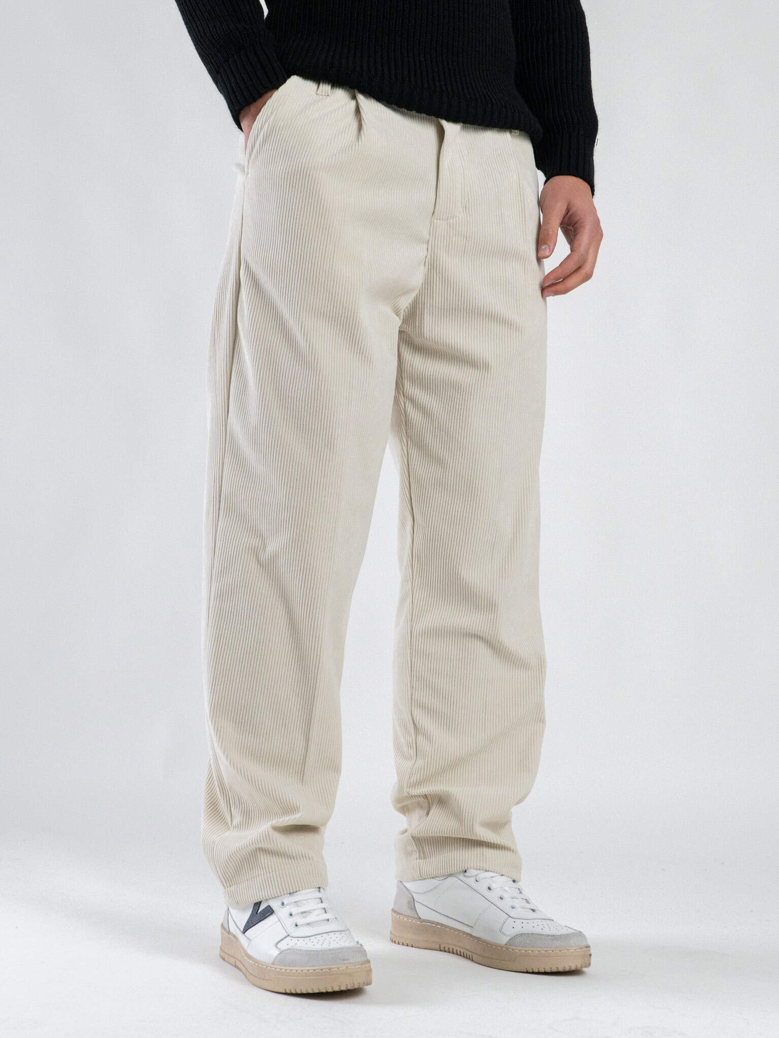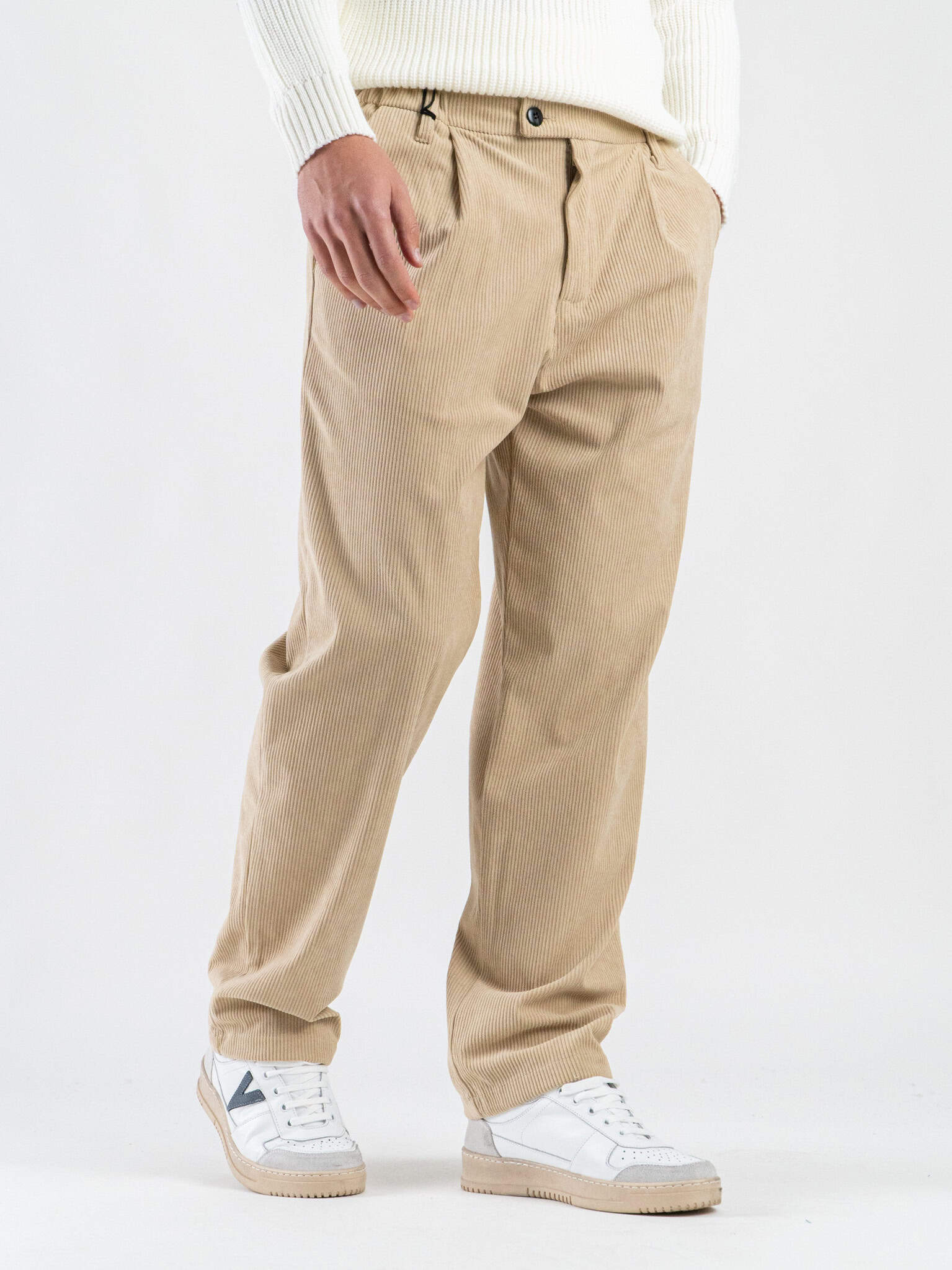 ESTASI Pantalone in velluto con gamba morbida ed elastico in vita SANE’ VEL Panna