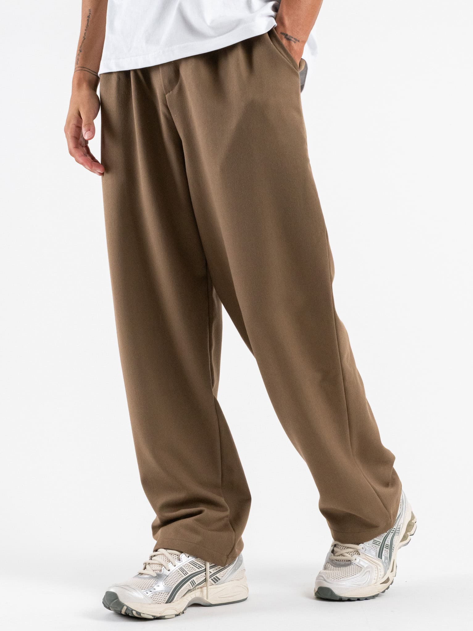 ESTASI Pantalone regular invernale in poliviscosa con gamba larga ed elastico in vita YAMAL INV Fango