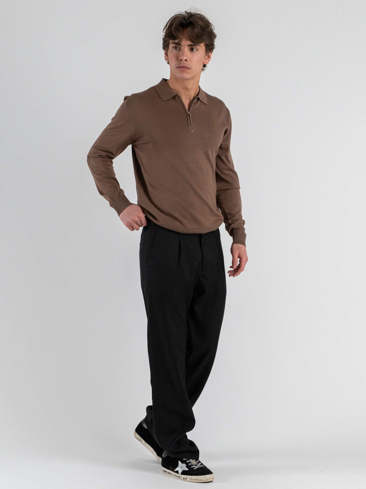 La polo Gianni Lupo regular fit è realizzata in tessuto morbido e piacevole al tatto, pensato per offrire comfort durante tutta la giornata. Il taglio regolare garantisce una vestibilità equilibrata e versatile. Il dettaglio della zip sul collo aggiunge un tocco moderno e distintivo al design classico. La tinta unita color tobacco conferisce eleganza e facilità di abbinamento. Perfetta per outfit casual raffinati, ufficio informale o tempo libero. Indossarla trasmette una sensazione di stile curato, praticità e comfort contemporaneo.