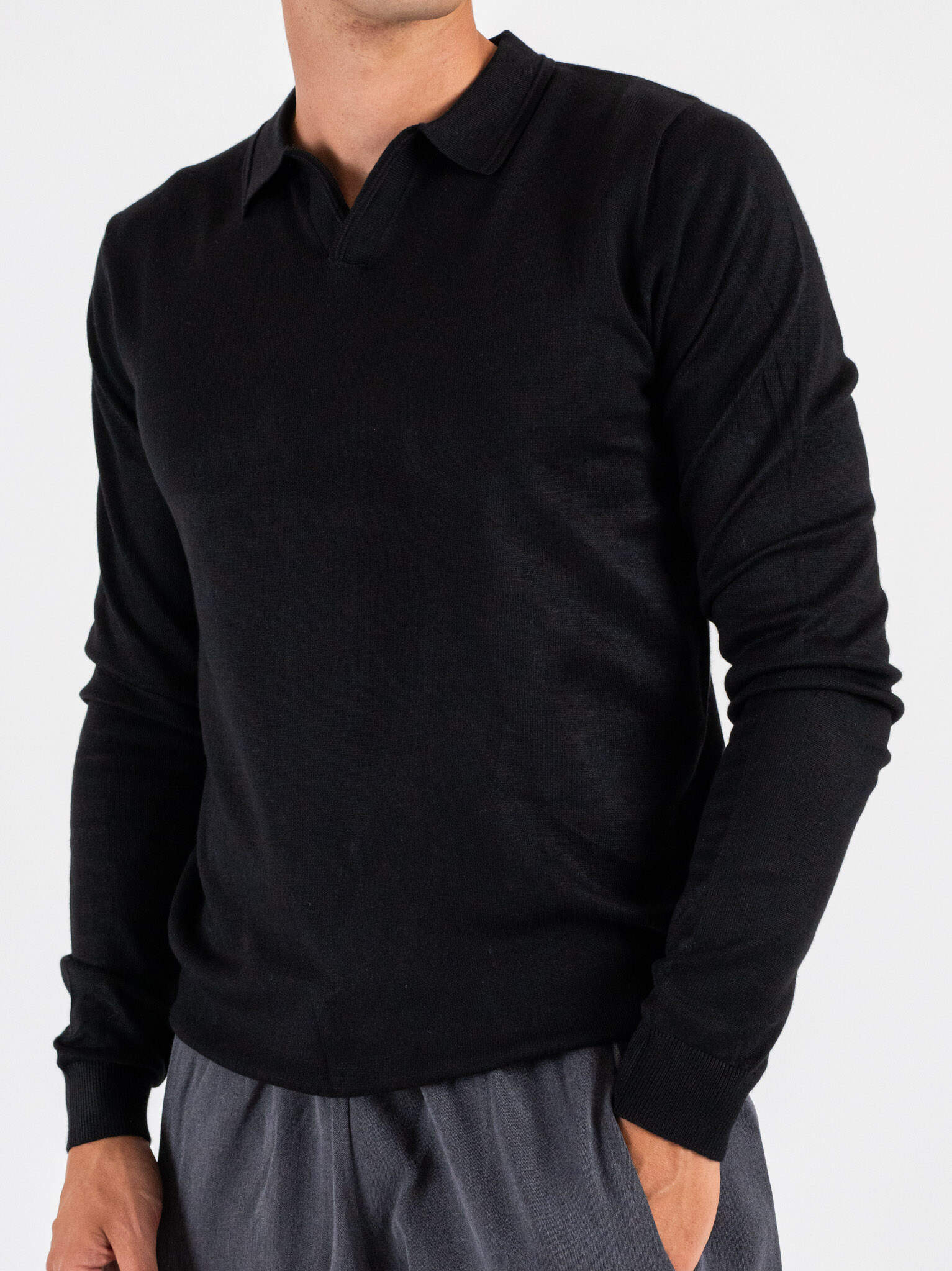 • Polo a manica lunga con scollo a V 031 Nero