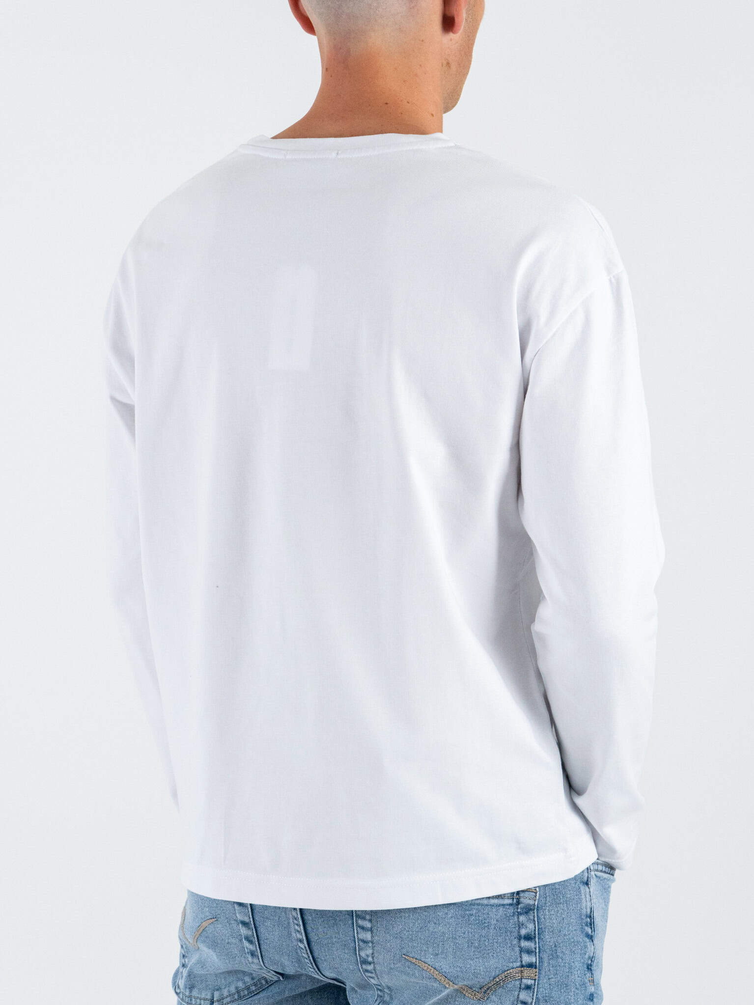 ESTASI T-shirt regular in cotone a manica lunga con spalla scesa GIOVE Bianco