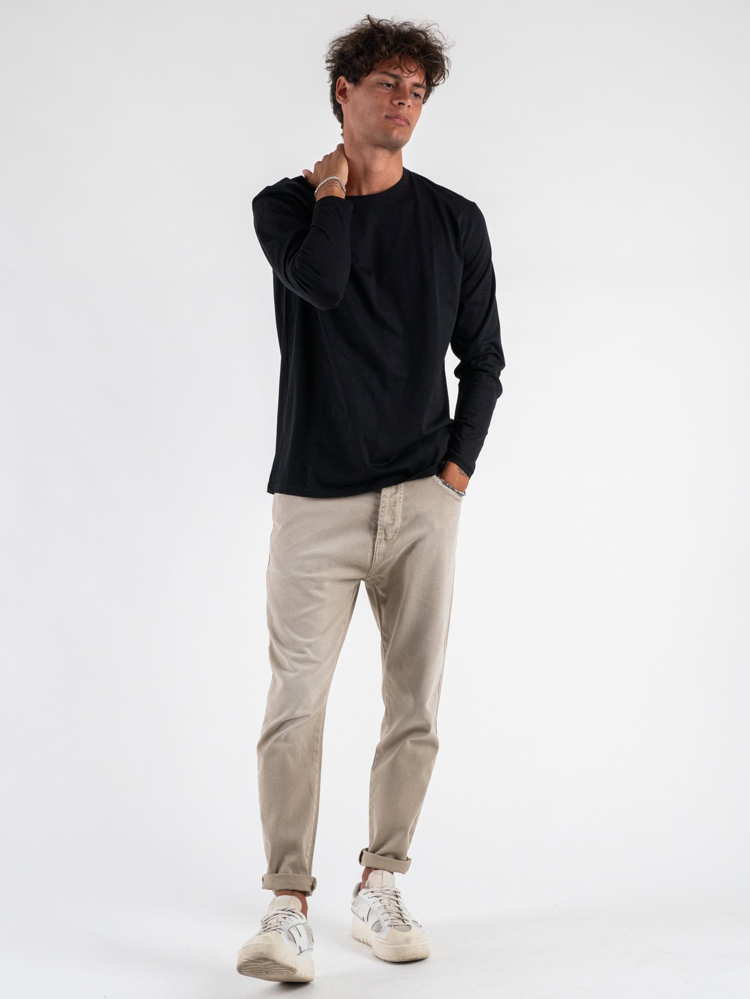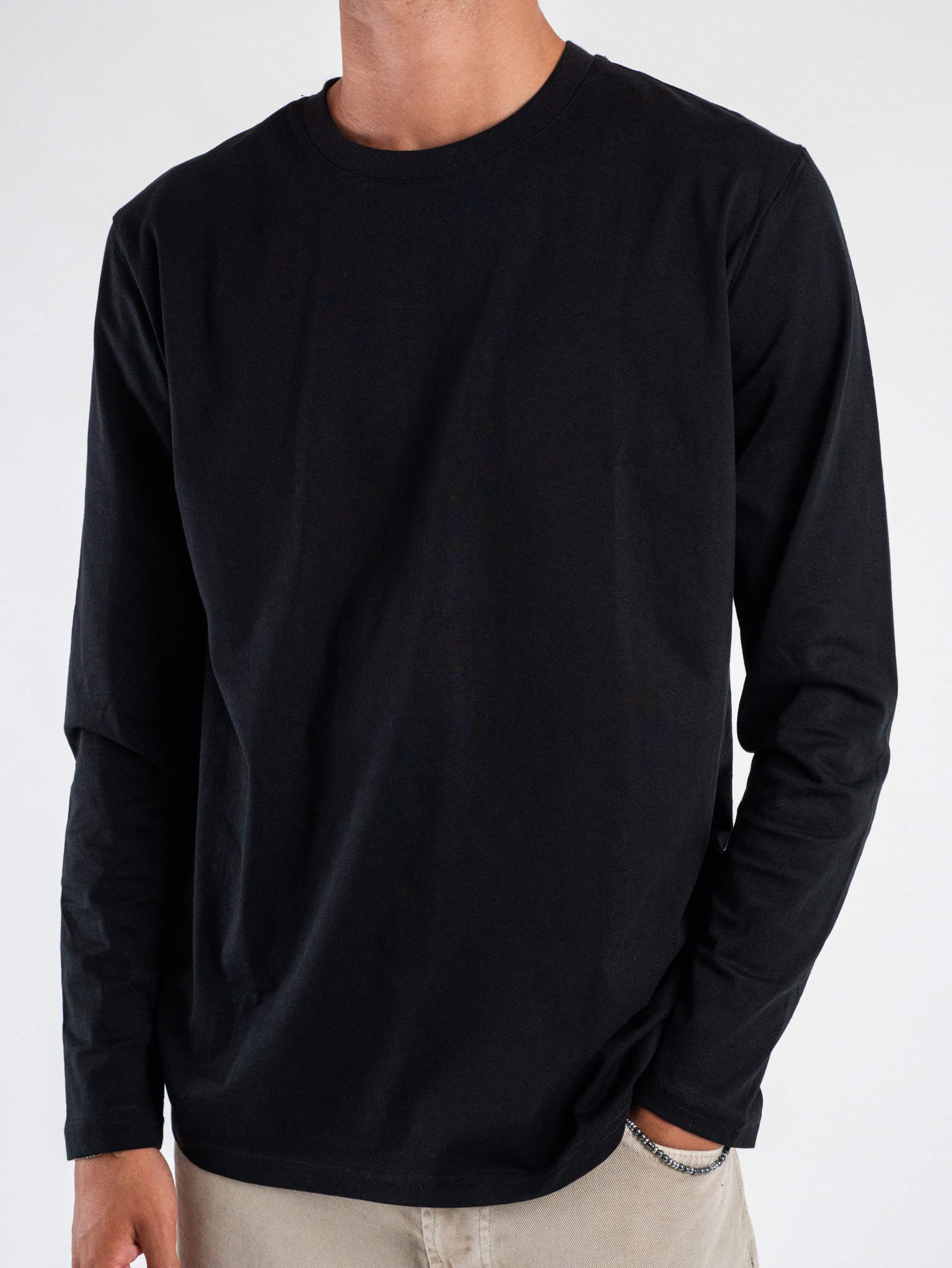 GIANNI LUPO T-shirt in cotone basica a manica lunga GL523L Black