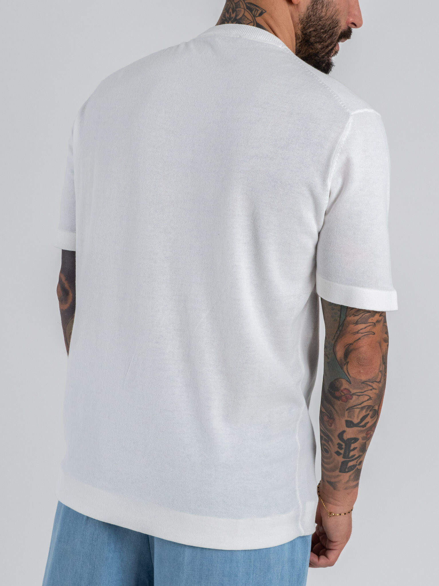 Il fit regular assicura una vestibilità equilibrata e comoda, adatta a diverse silhouette e ideale per l’uso quotidiano. Il colore bianco dona luminosità e massima versatilità, rendendo la T-shirt facile da abbinare a jeans, pantaloni chino o bermuda.