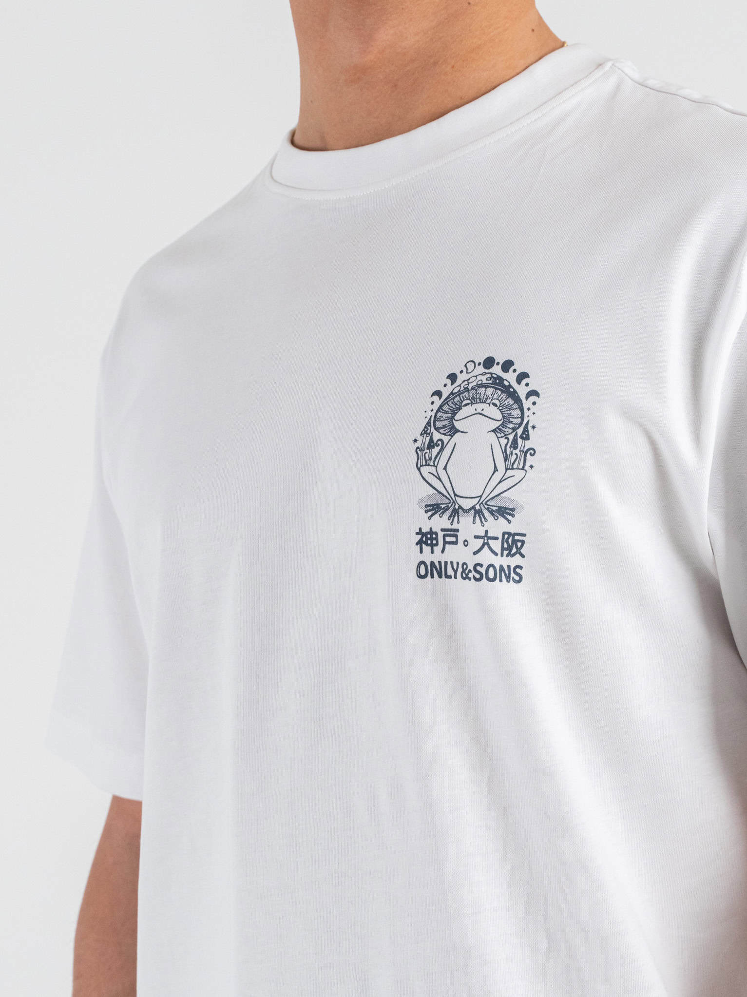 • ONLY&SONS T-shirt over in cotone con stampa rana fronte/retro FRED 22038836 Bright White