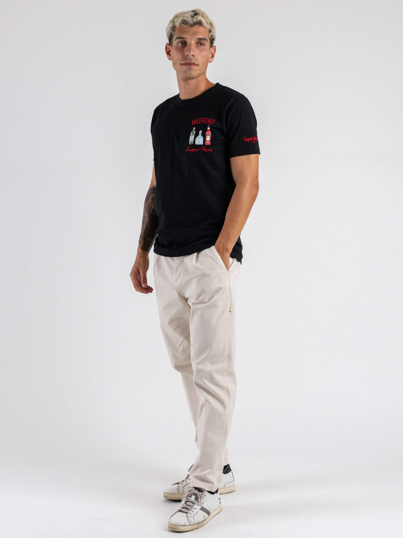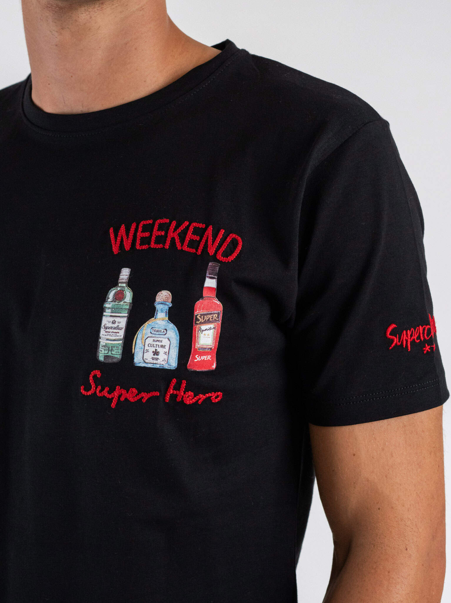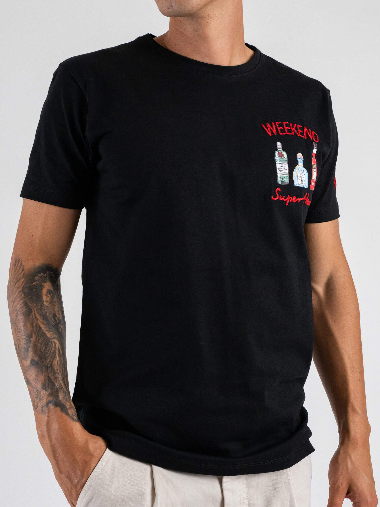 SUPERCULTURE T-shirt in cotone con stampa e ricamo lato cuore “WEEKEND” A1367 Nera
