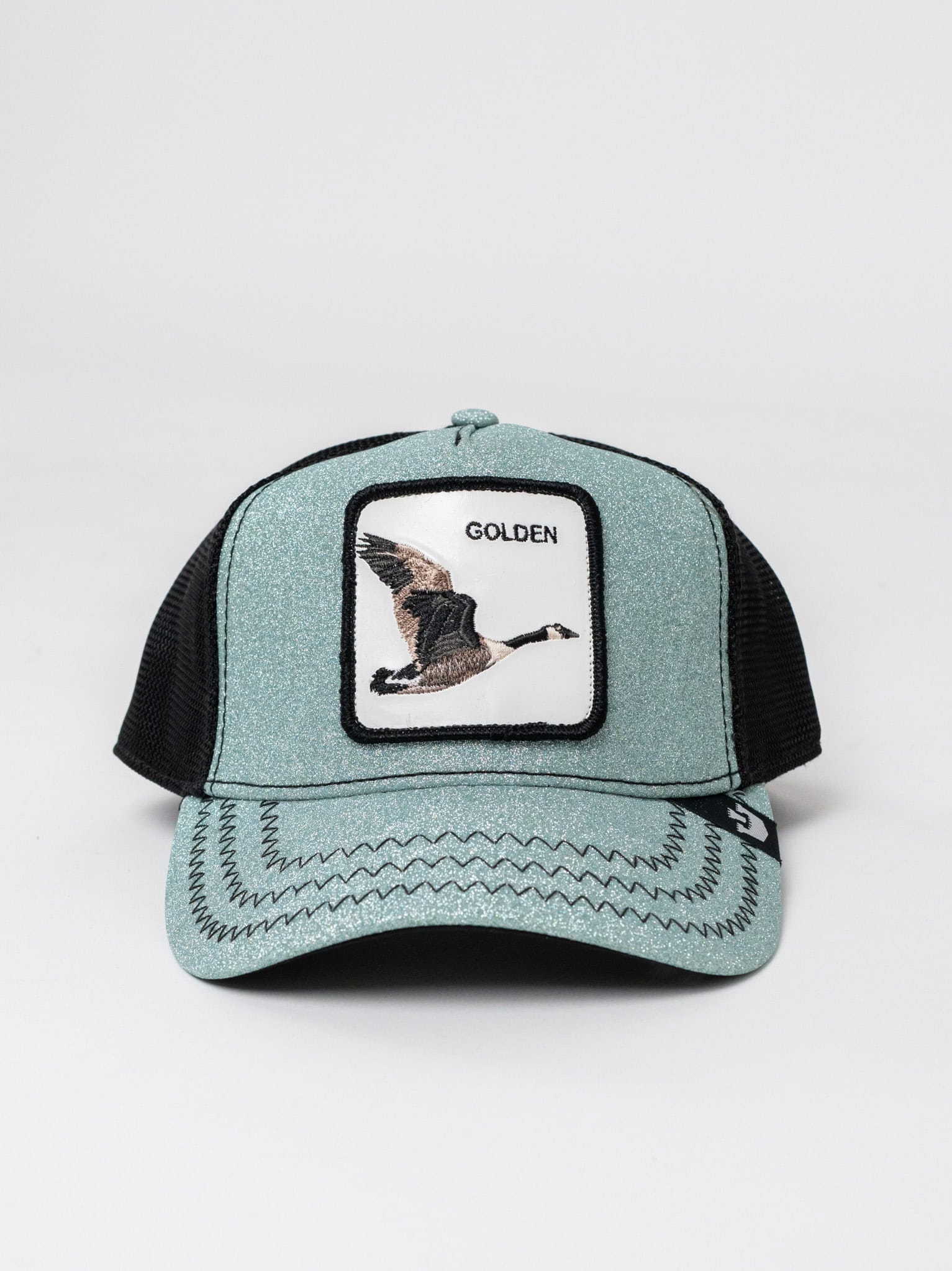 GOORIN BROS Cappellino glitterato con patch in pelle bianca stampa papera GOLDEN Azzurro
