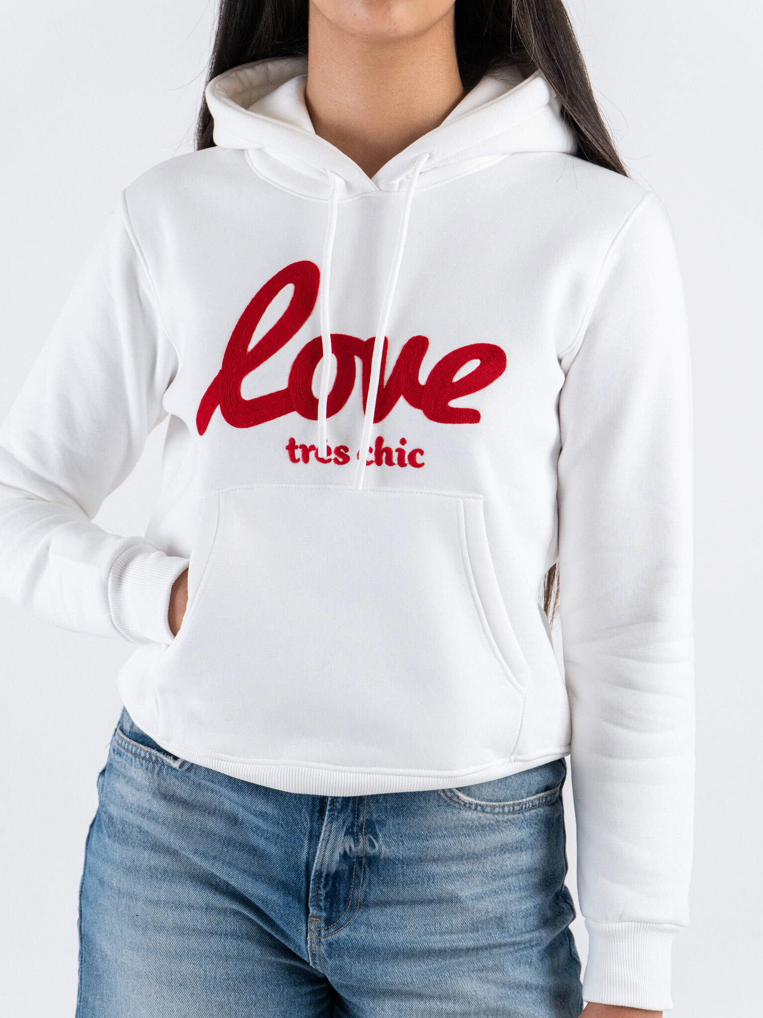 SUPERCULTURE Felpa da donna con cappuccio ricamo LOVE TRES CHIC AW1513 Bianco