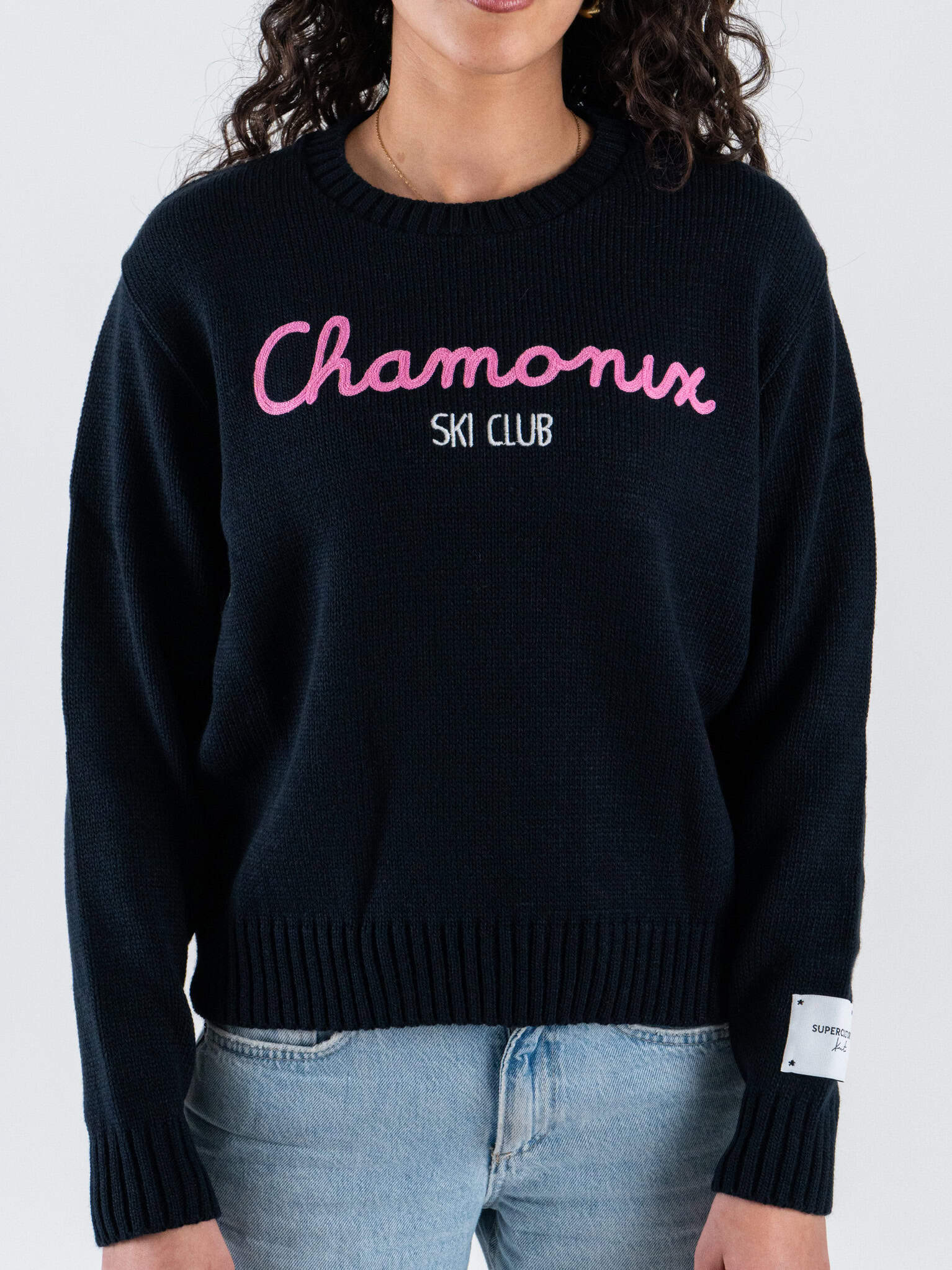 SUPERCULTURE Maglione regular da donna girocollo misto lana con ricamo CHAMONIX Sky club AK5113 Blu